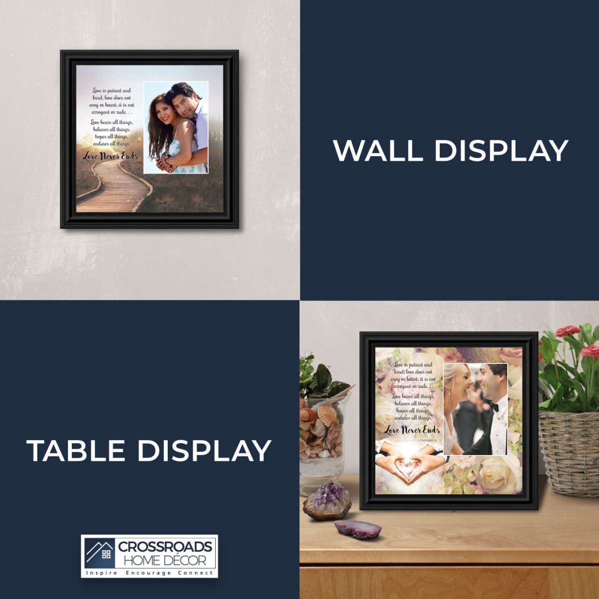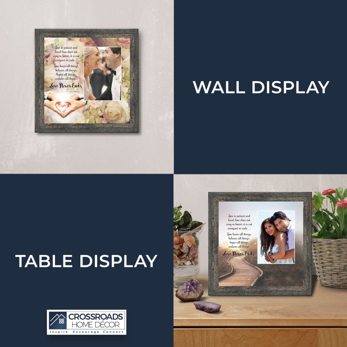 Love Wall Decor for Couples, Christian Wall Decor for Wedding Gifts, Love Never Fails Wall Decor, 1 Corinthians 13 Wall Art, Love is Patient Love is Kind Wall Art, Love Quotes Framed Wall, 6360