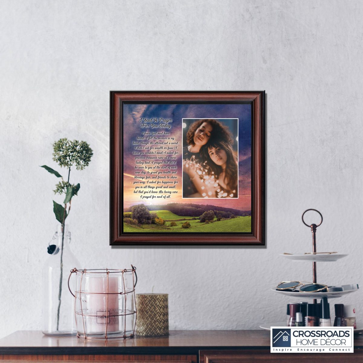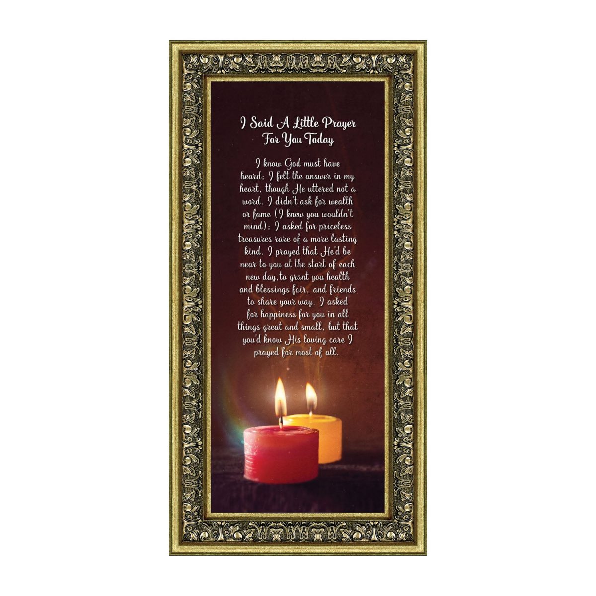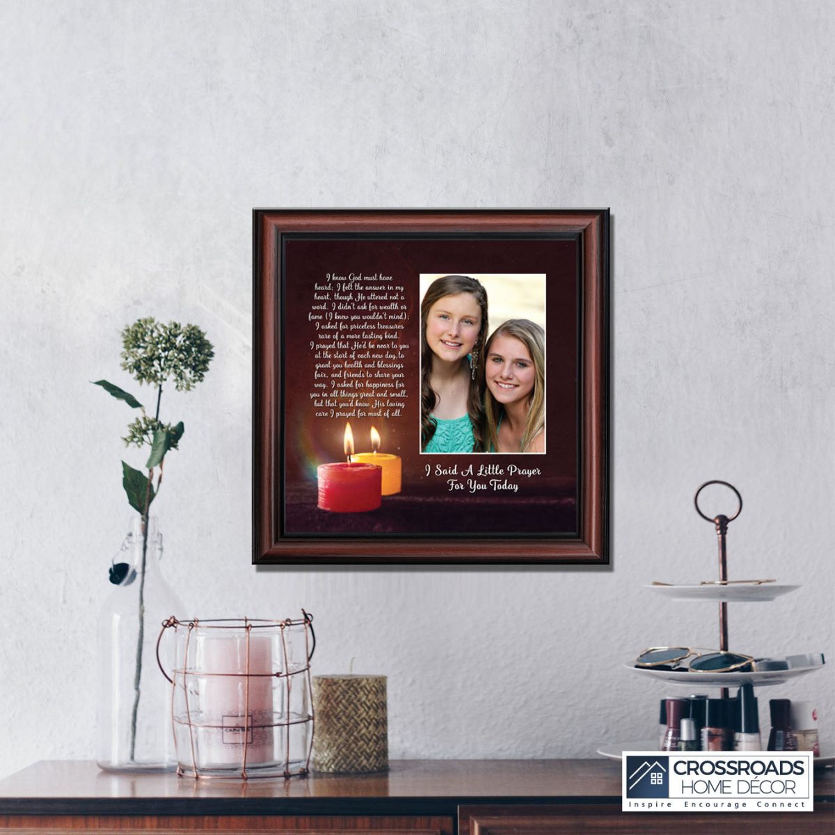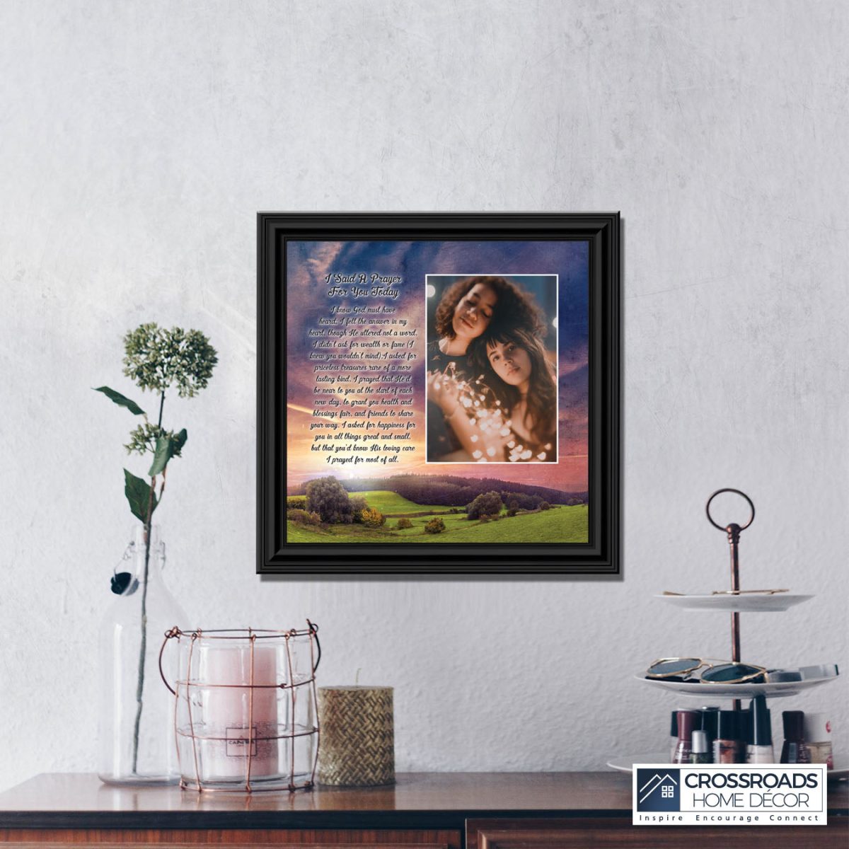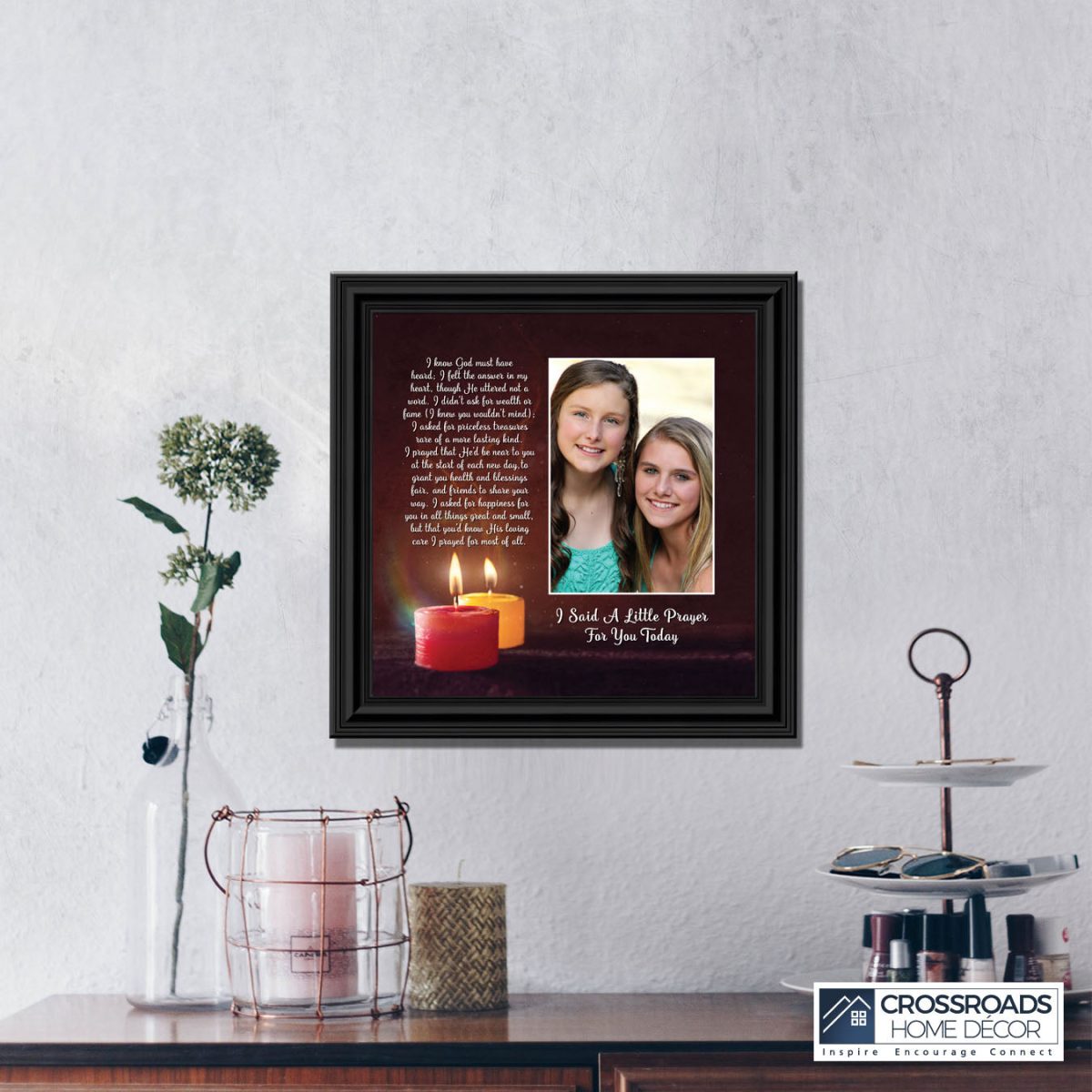 - Picture framed poem praying for a loved one’s happiness.