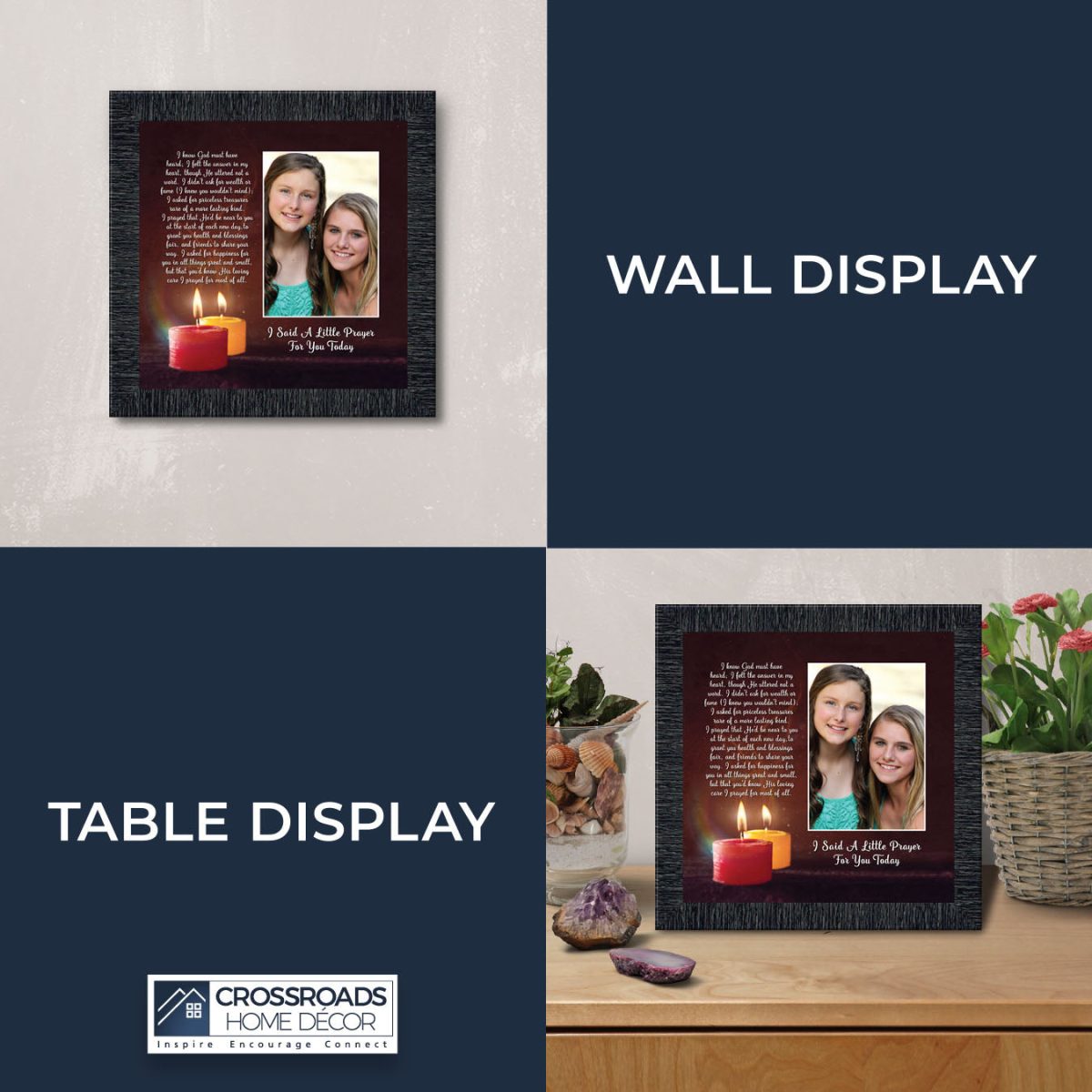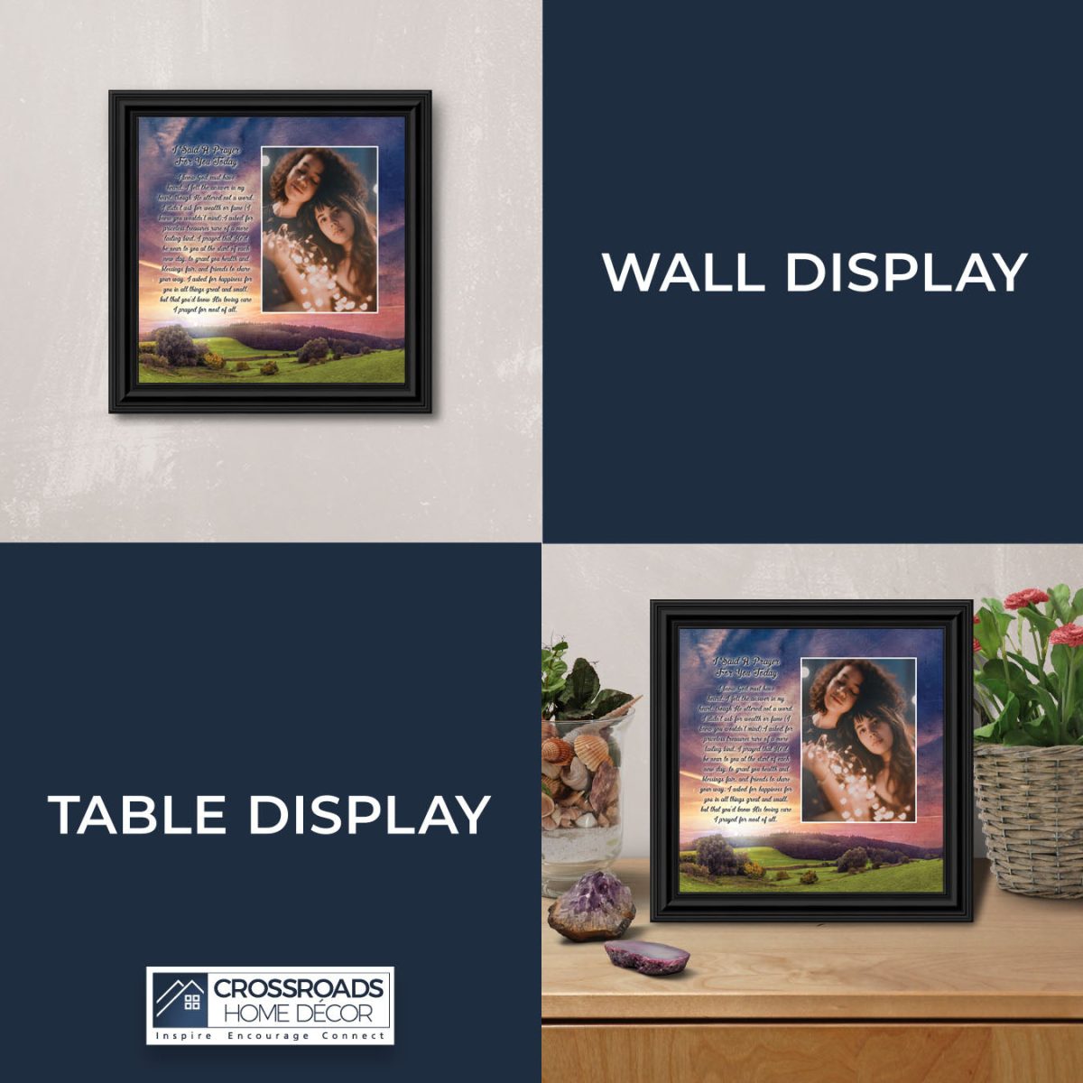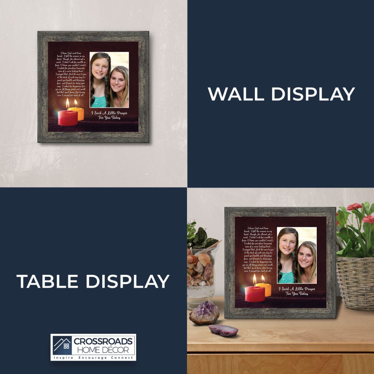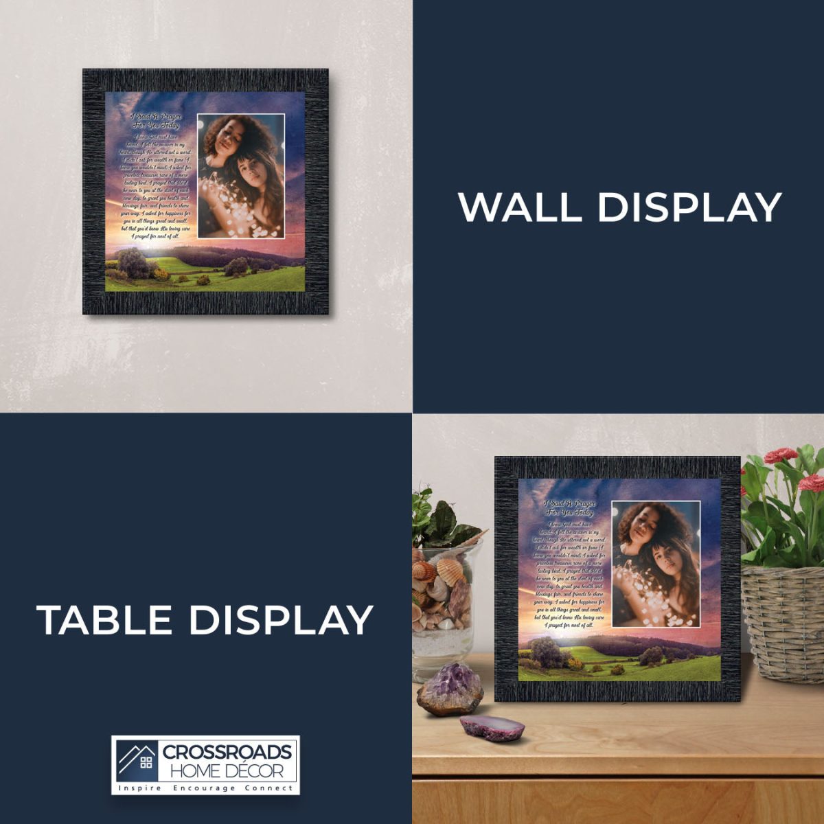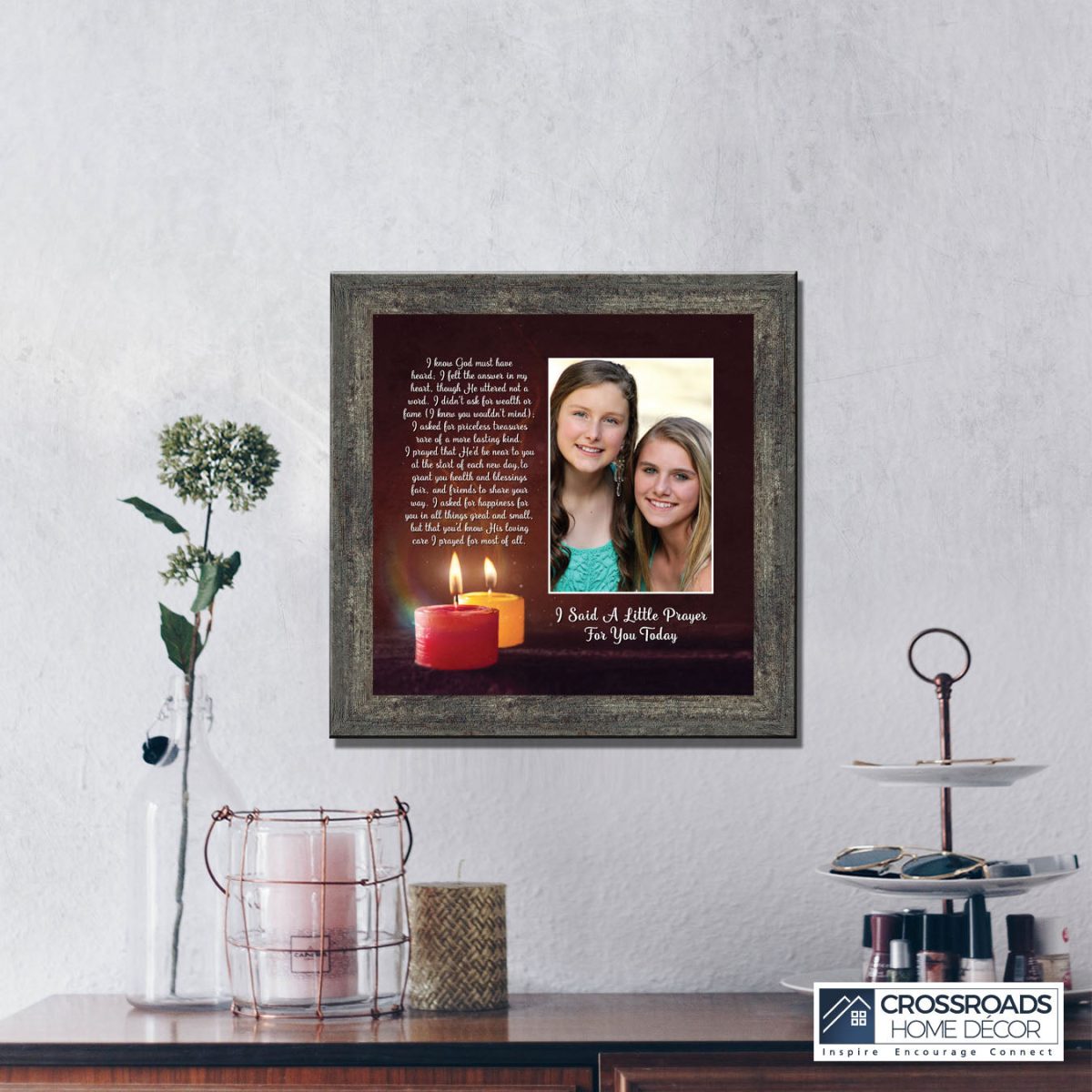 - Picture framed poem praying for a loved one’s happiness.