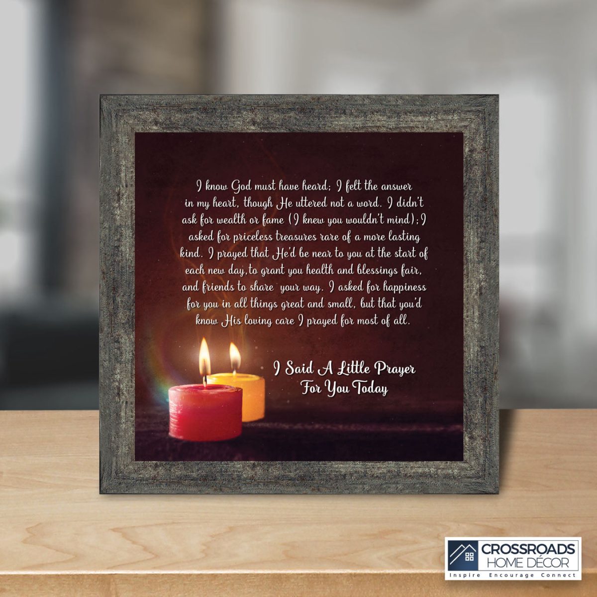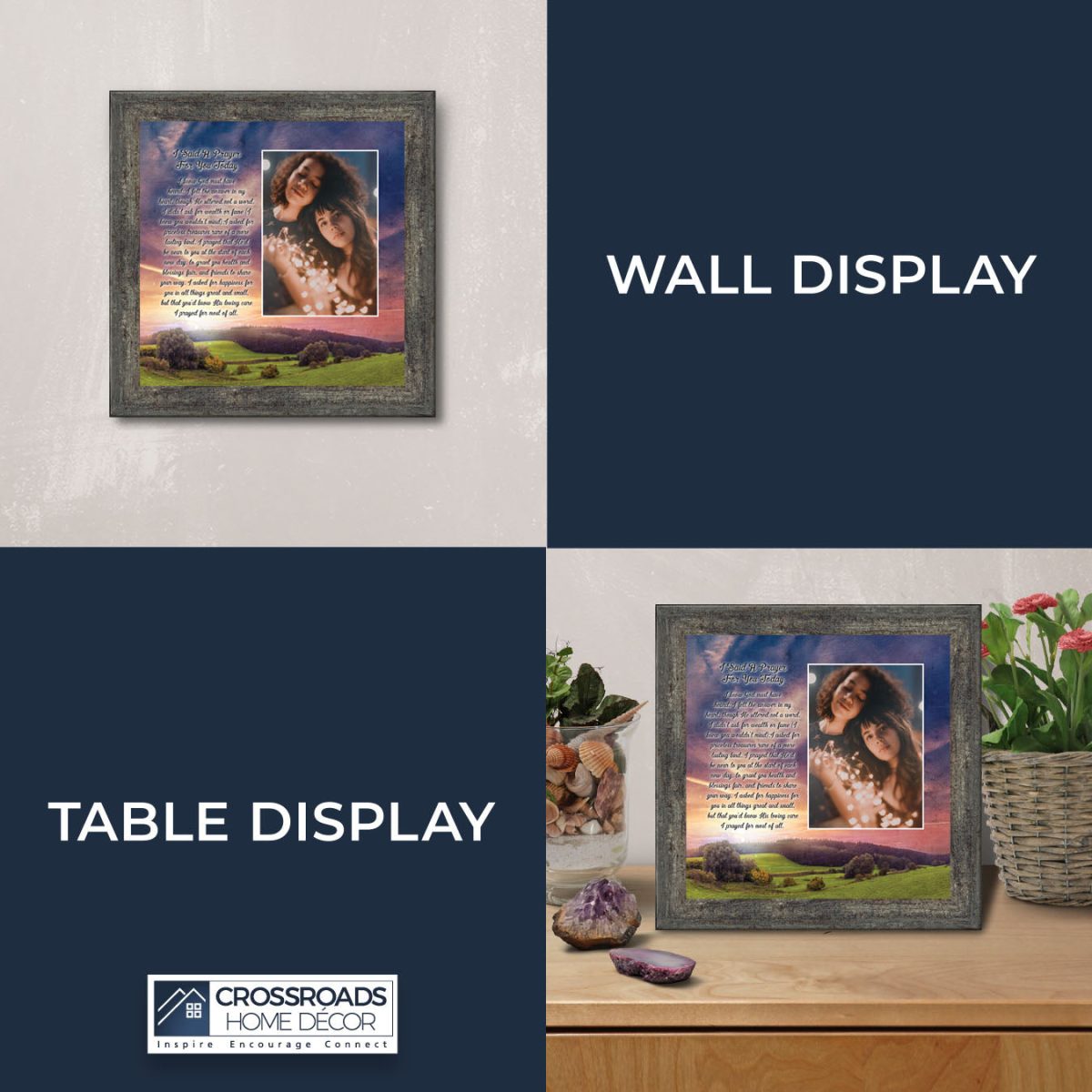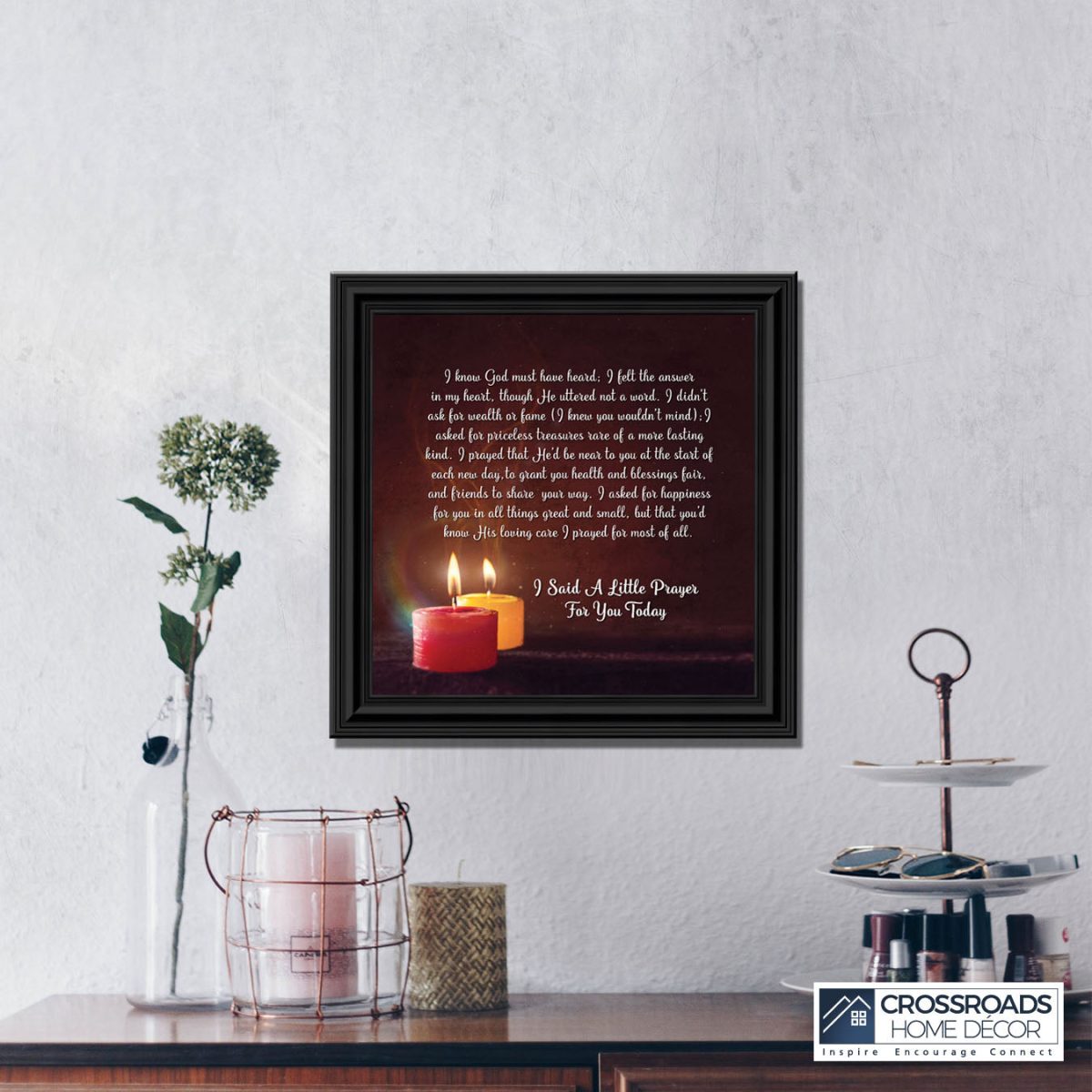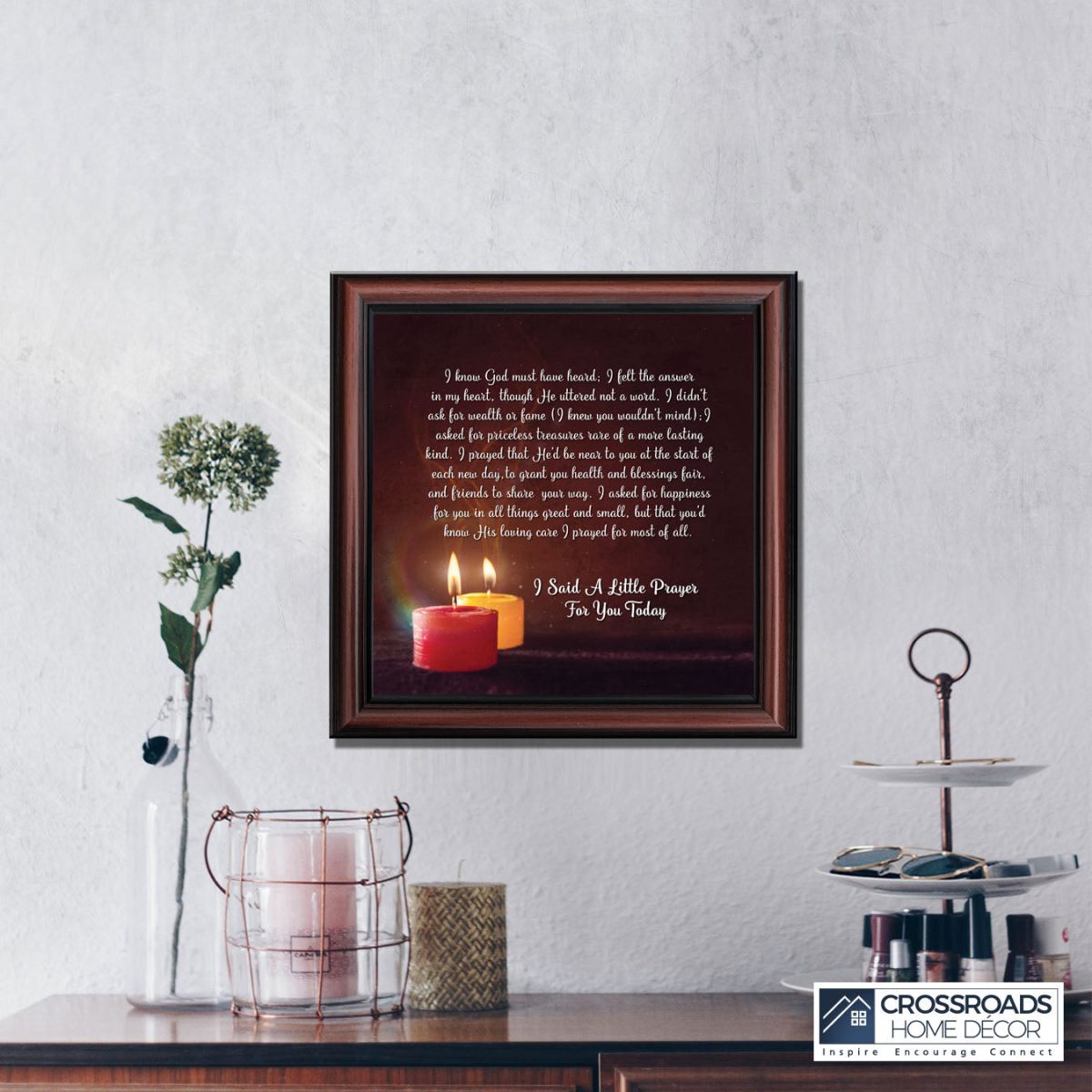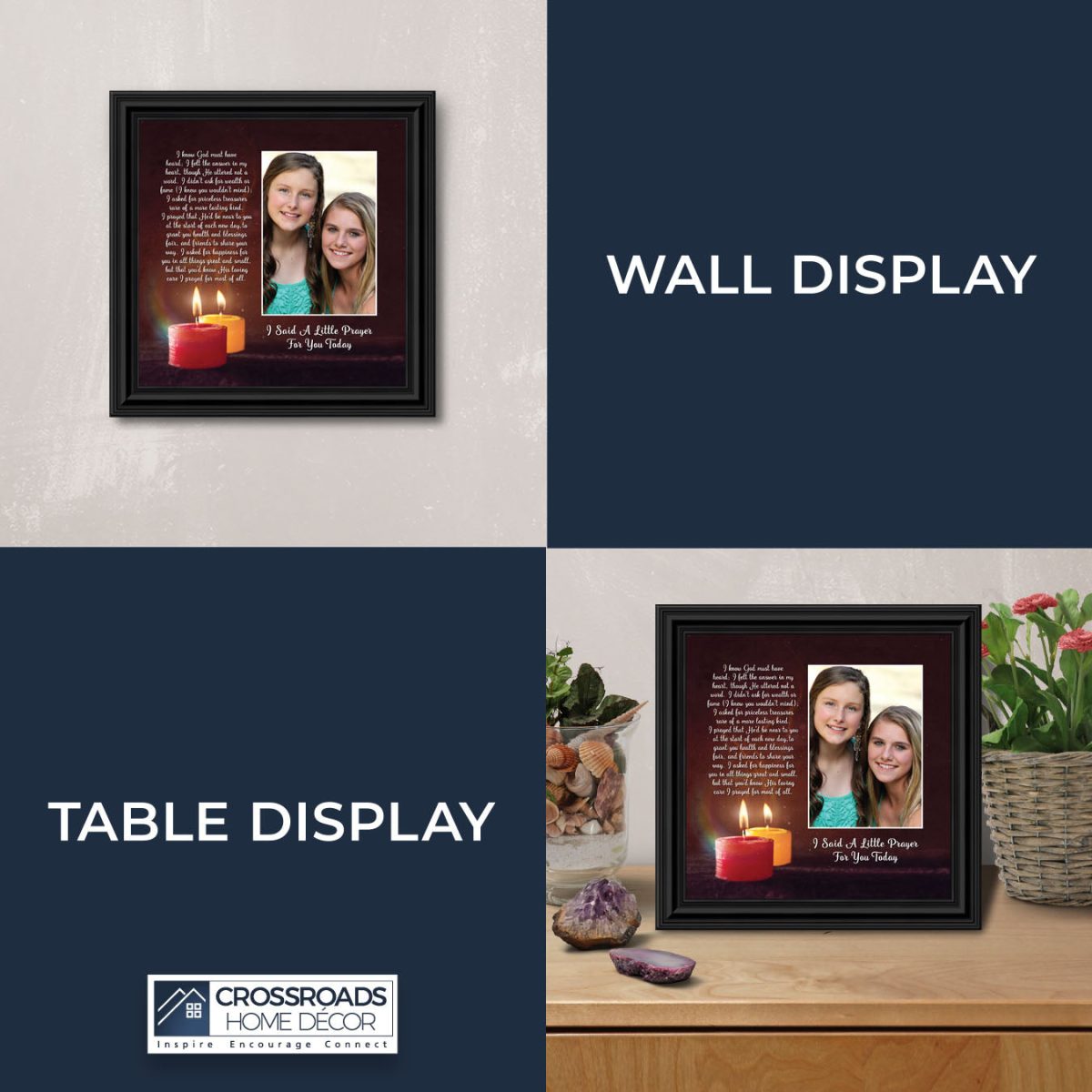 - Picture framed poem praying for a loved one’s happiness.