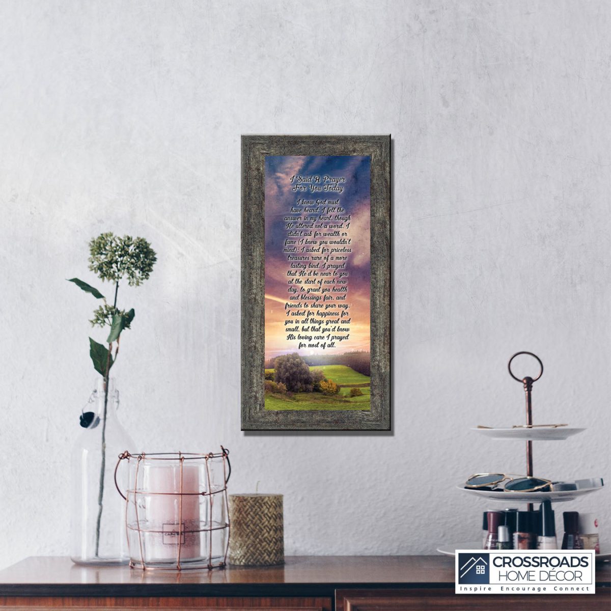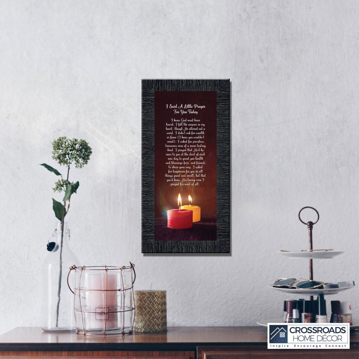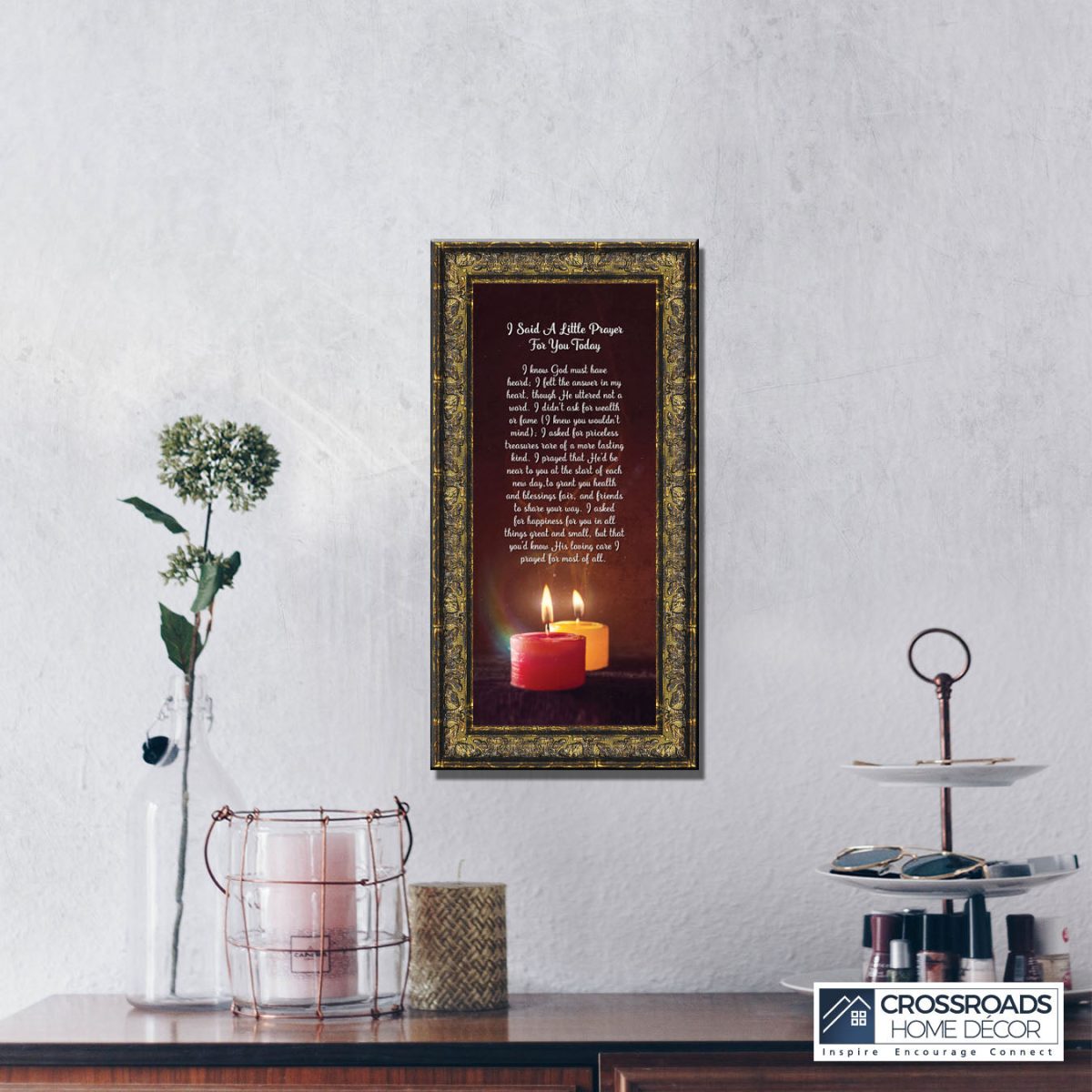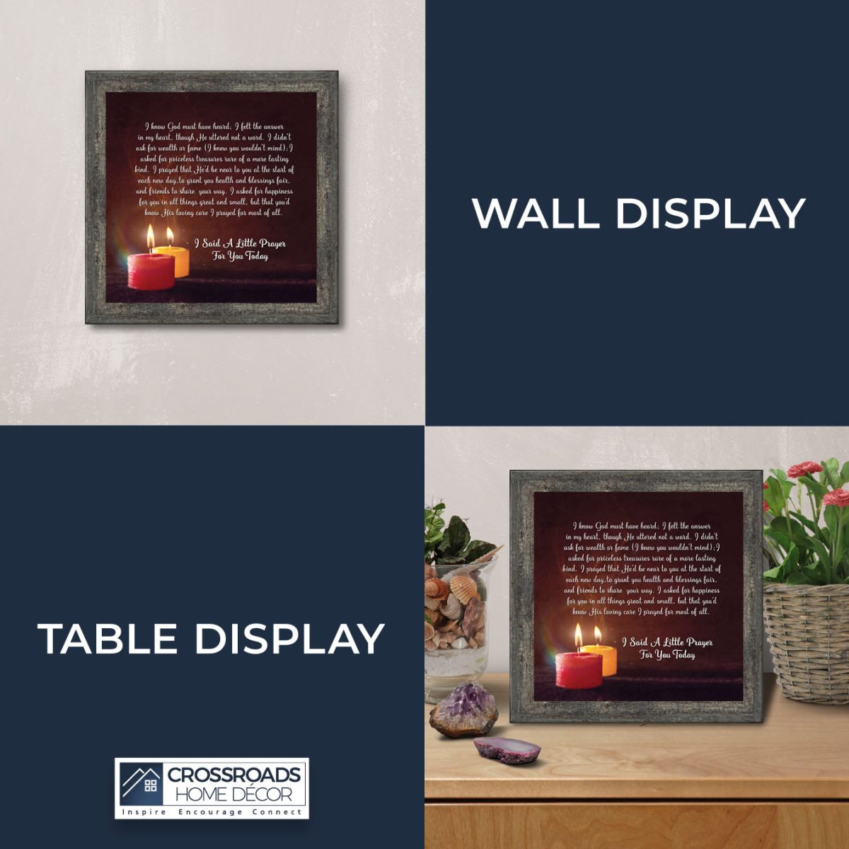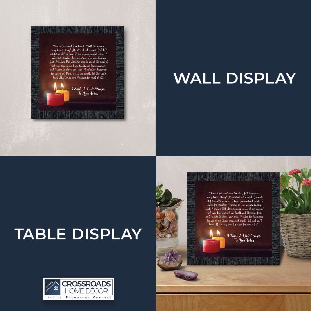 - Picture framed poem praying for a loved one’s happiness.