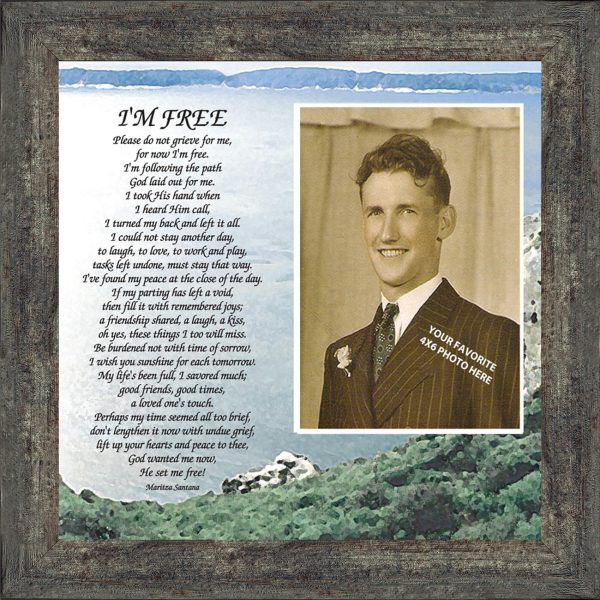Memorial Picture Frames for Sympathy Gift Baskets, Memorial Gifts for Loss of Mother, Bereavement Gifts, Condolence Card, Sympathy Gifts for Loss of Father, “I’m Free” Photo Frame, 6345