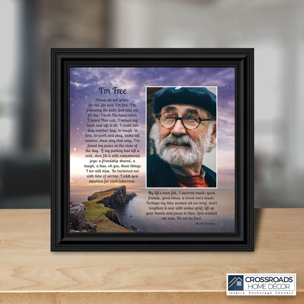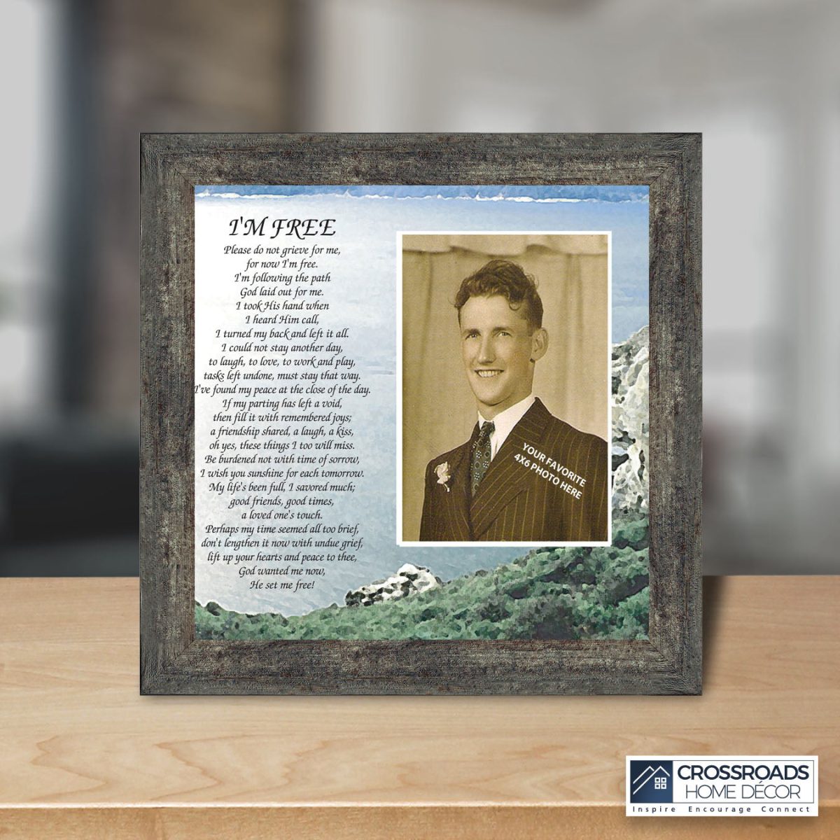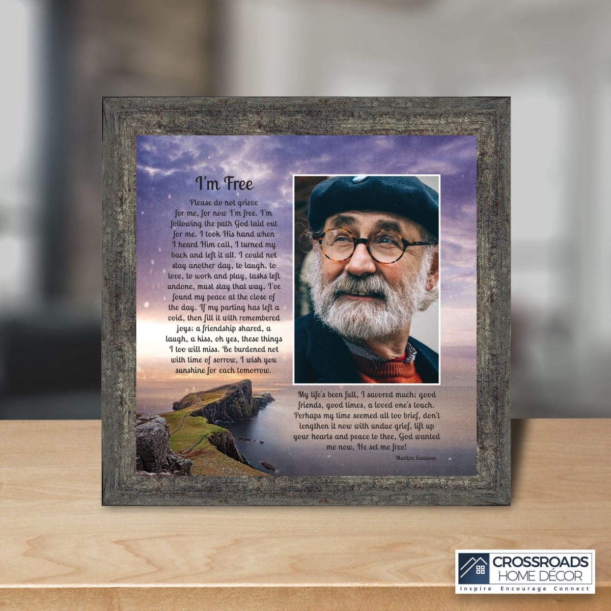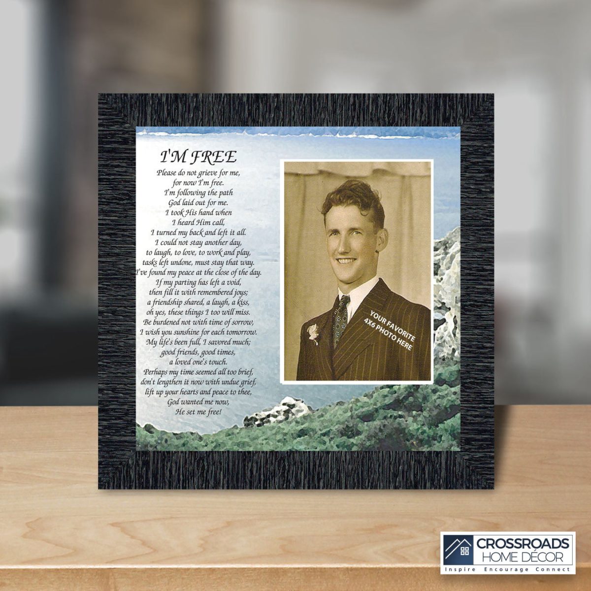 Crossroads Home Decor Memorial Picture Frames for Sympathy Gift Baskets, Memorial Gifts for Loss of Mother, Bereavement Gifts, Condolence Card in Memory of Loved One, Sympathy Gifts for Loss of Father, “I’m Free” Photo Frame