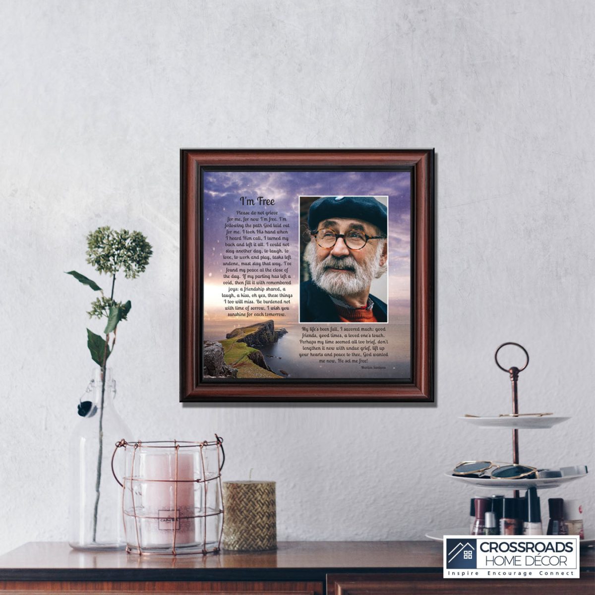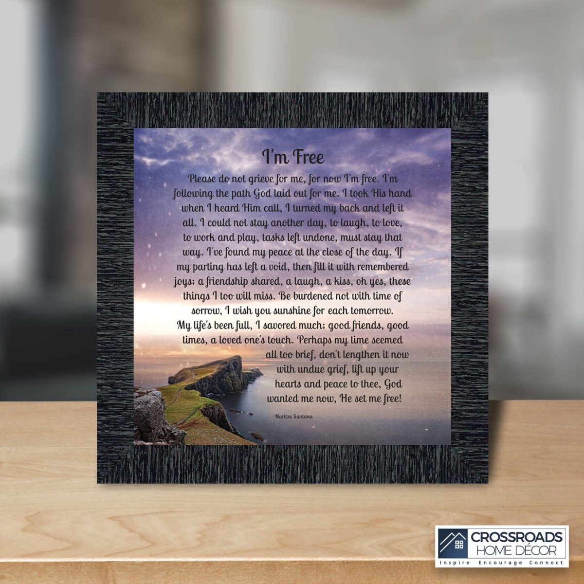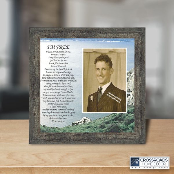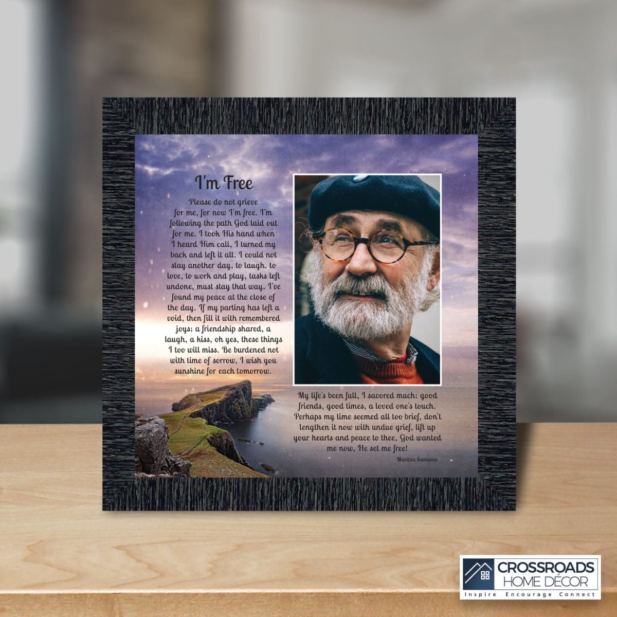 Crossroads Home Decor Memorial Picture Frames for Sympathy Gift Baskets, Memorial Gifts for Loss of Mother, Bereavement Gifts, Condolence Card in Memory of Loved One, Sympathy Gifts for Loss of Father, “I’m Free” Photo Frame