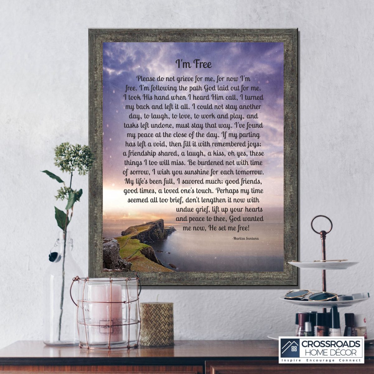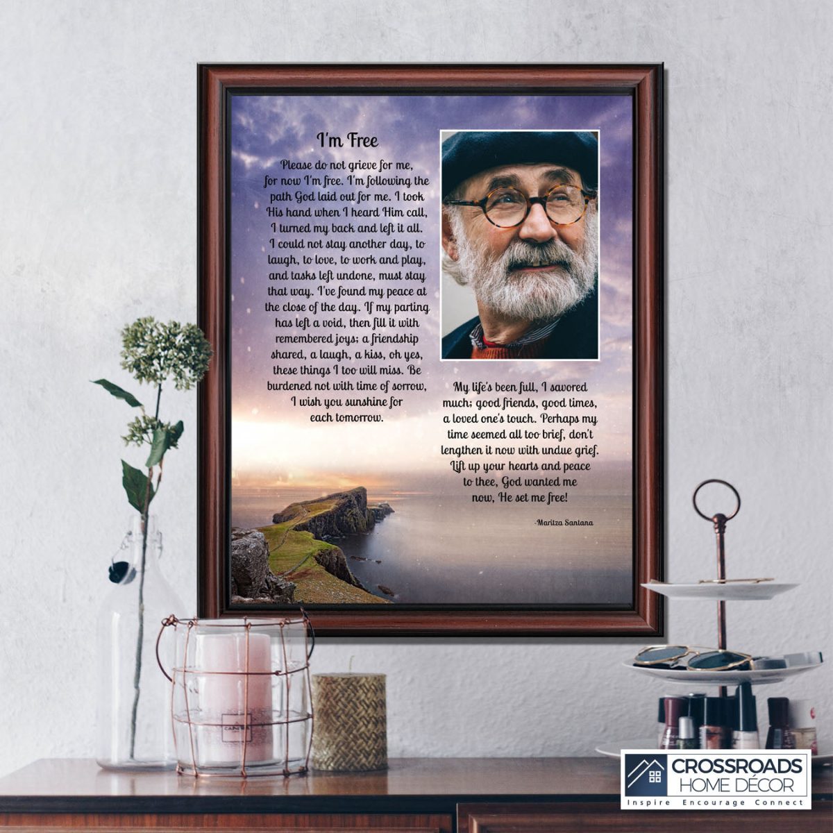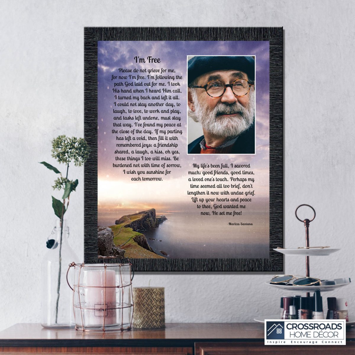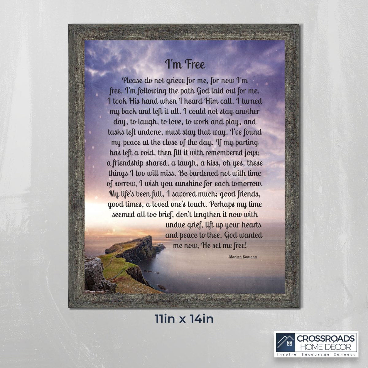Crossroads Home Decor Memorial Picture Frames for Sympathy Gift Baskets, Memorial Gifts for Loss of Mother, Bereavement Gifts, Condolence Card in Memory of Loved One, Sympathy Gifts for Loss of Father, “I’m Free” Photo Frame