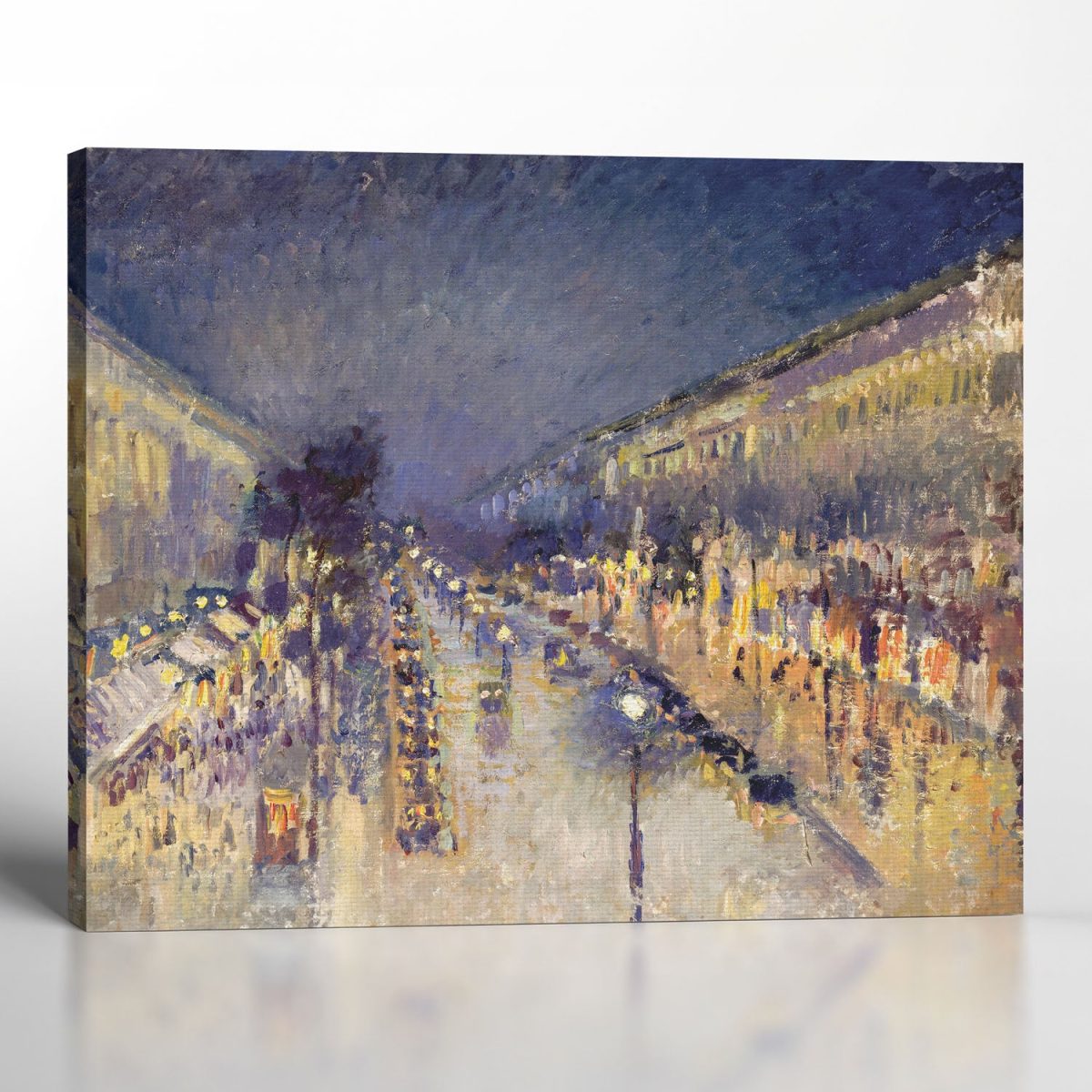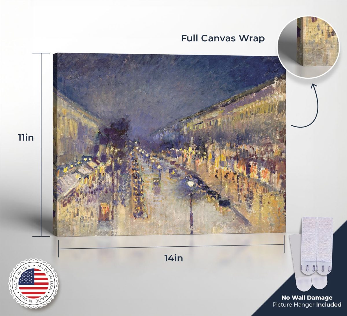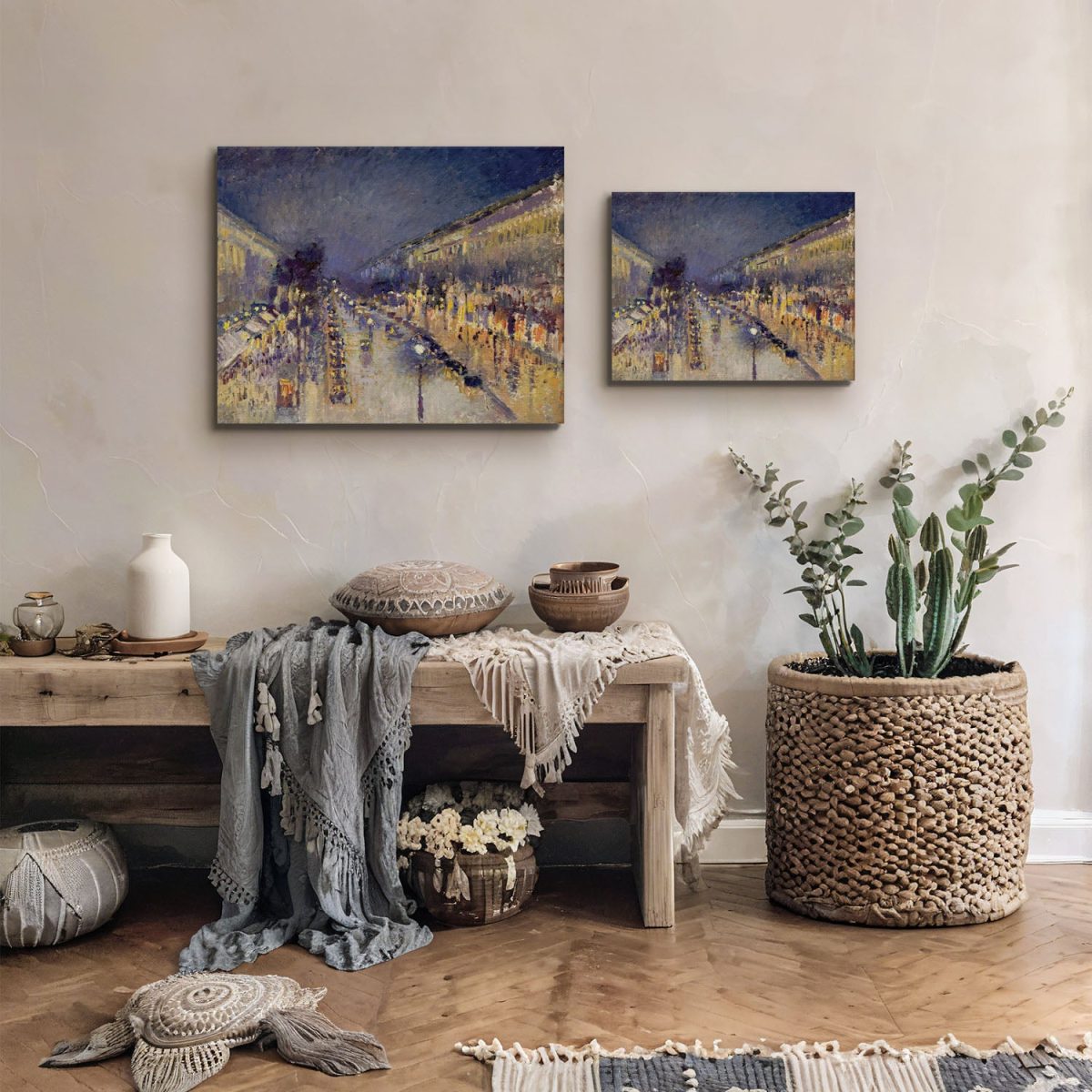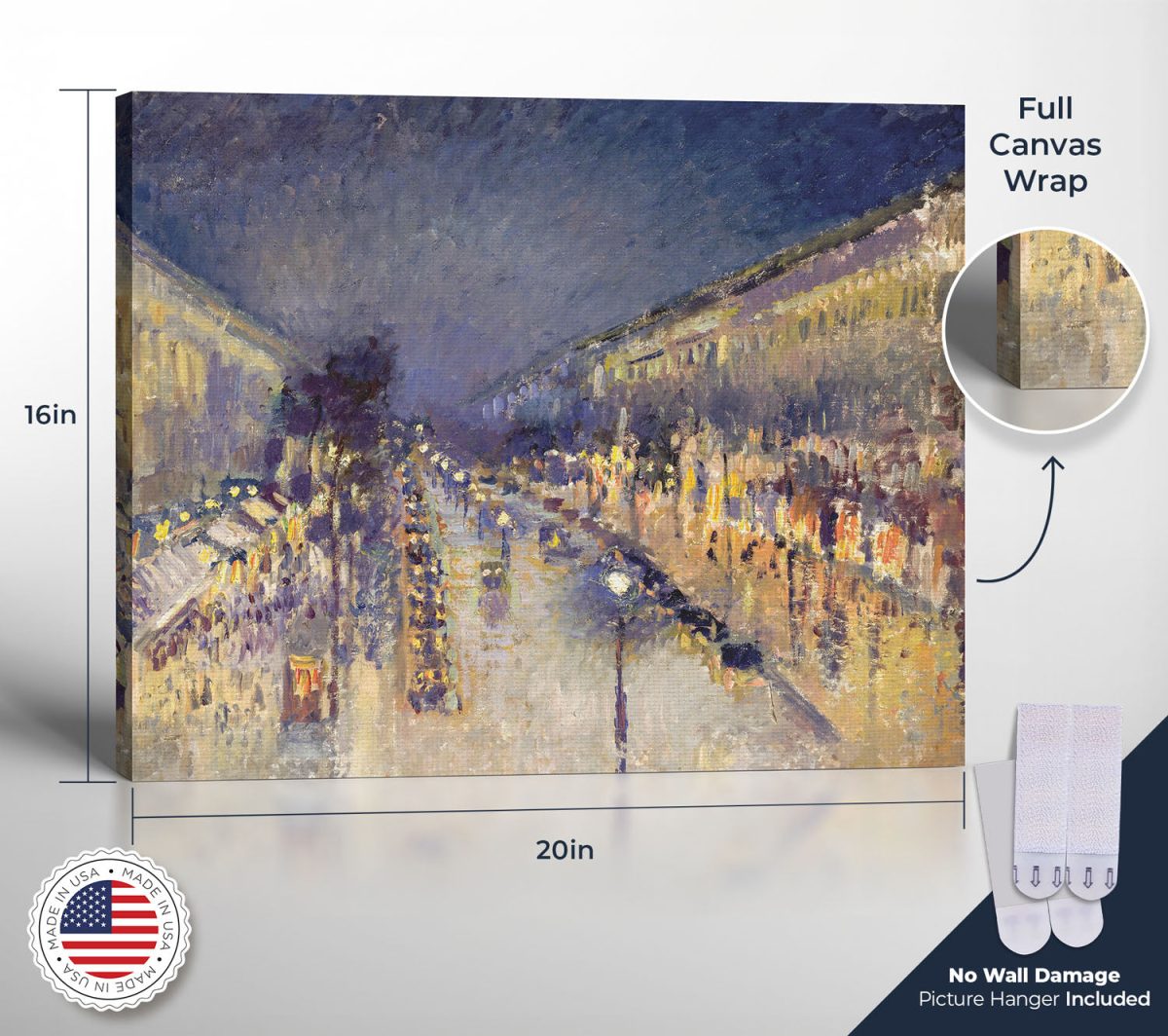 Impressionist Wall Art, Boulevard Poster, Fine Art Prints, The Boulevard Montmartre at Night by Camille Pissaro, Ready To Hang for Living Room Home Wall Decor, C2408