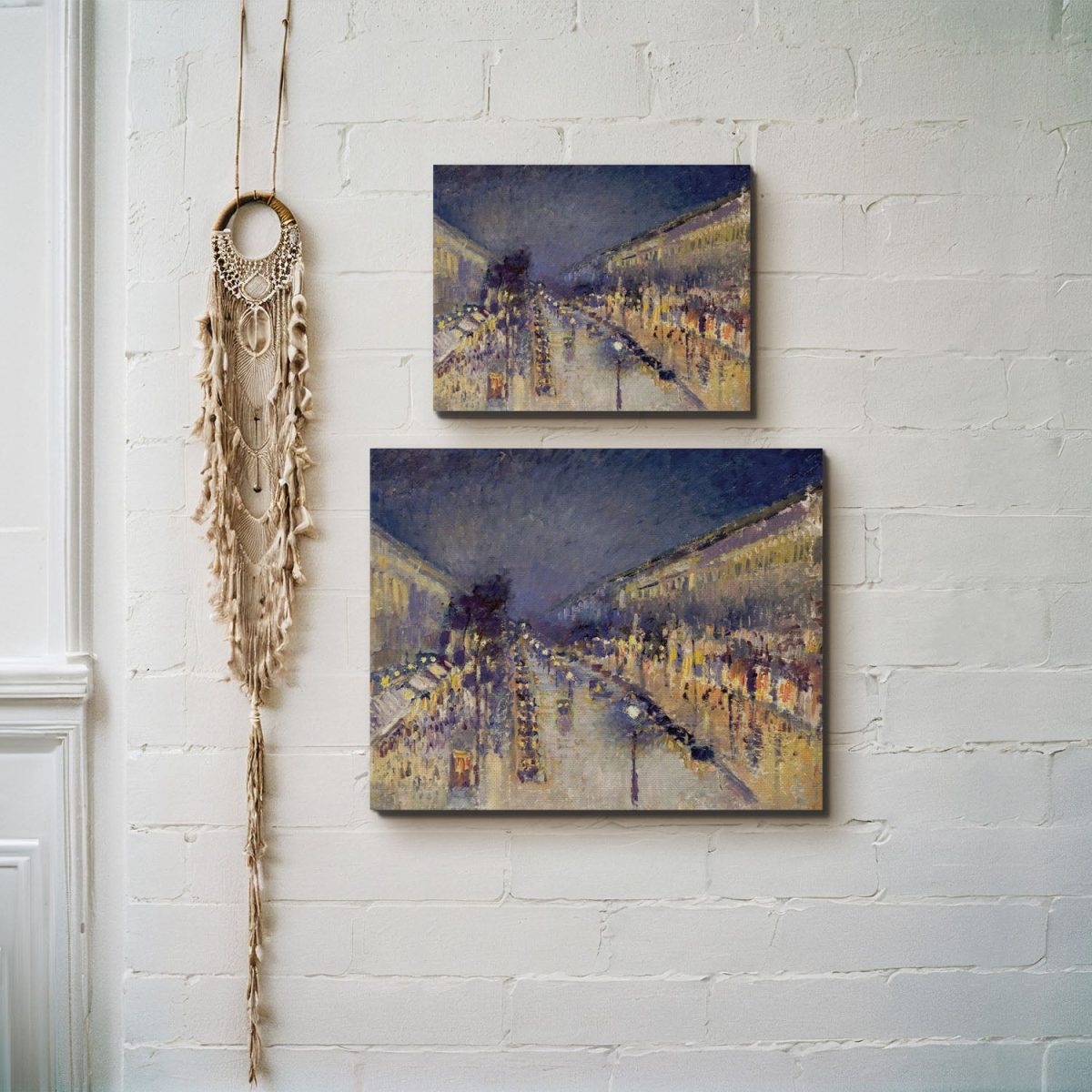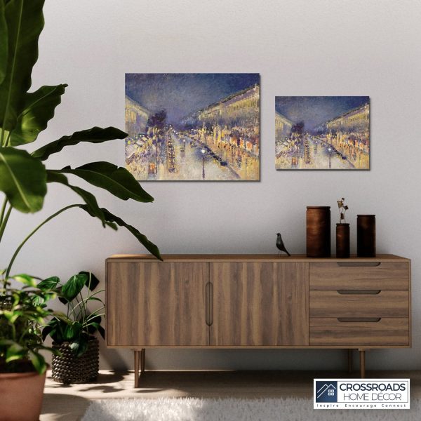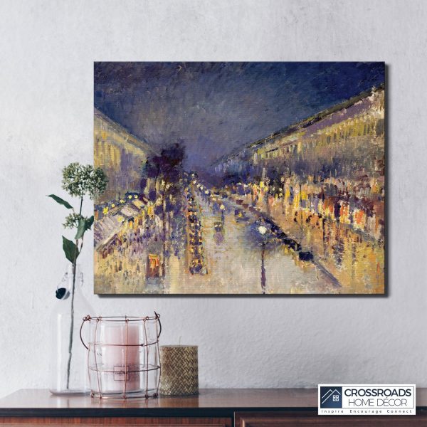 Crossroads Home Decor Impressionist Wall Art, Boulevard Poster, Fine Art Prints, The Boulevard Montmartre at Night by Camille Pissaro, Ready To Hang for Living Room Home Wall Decor