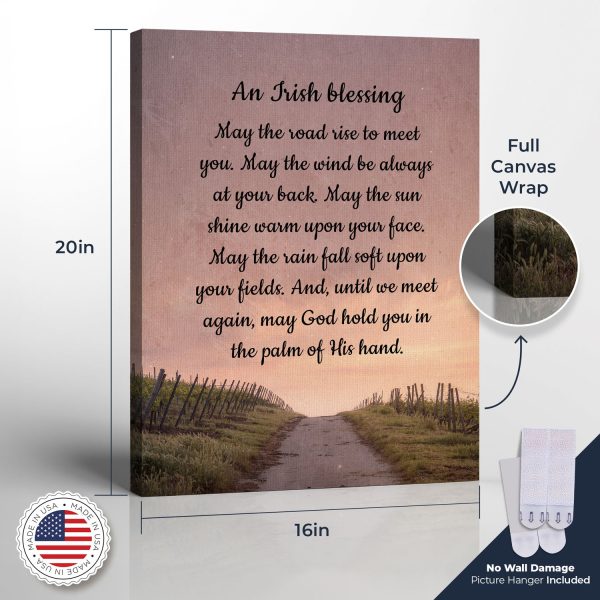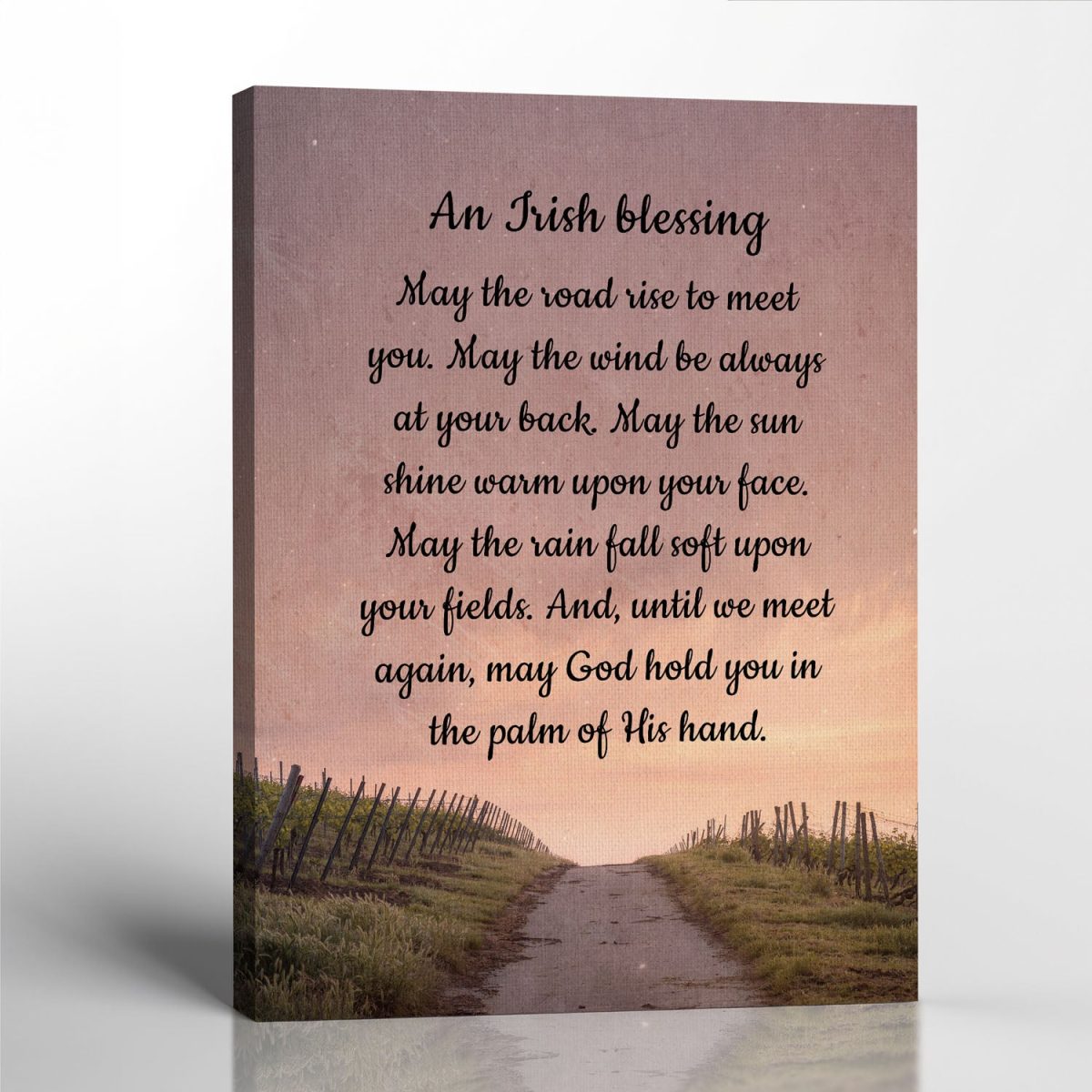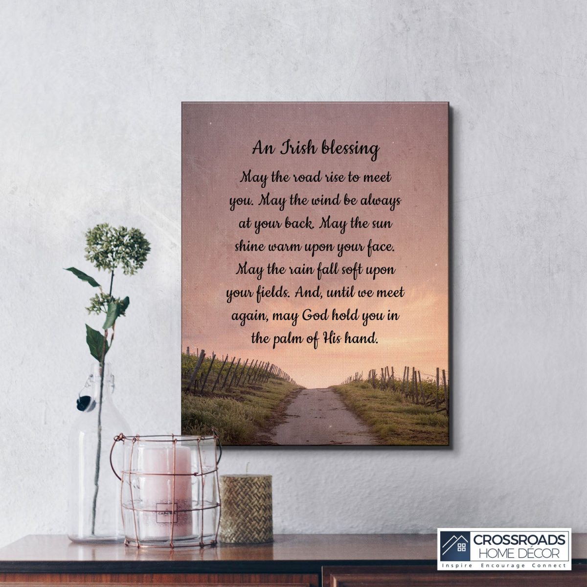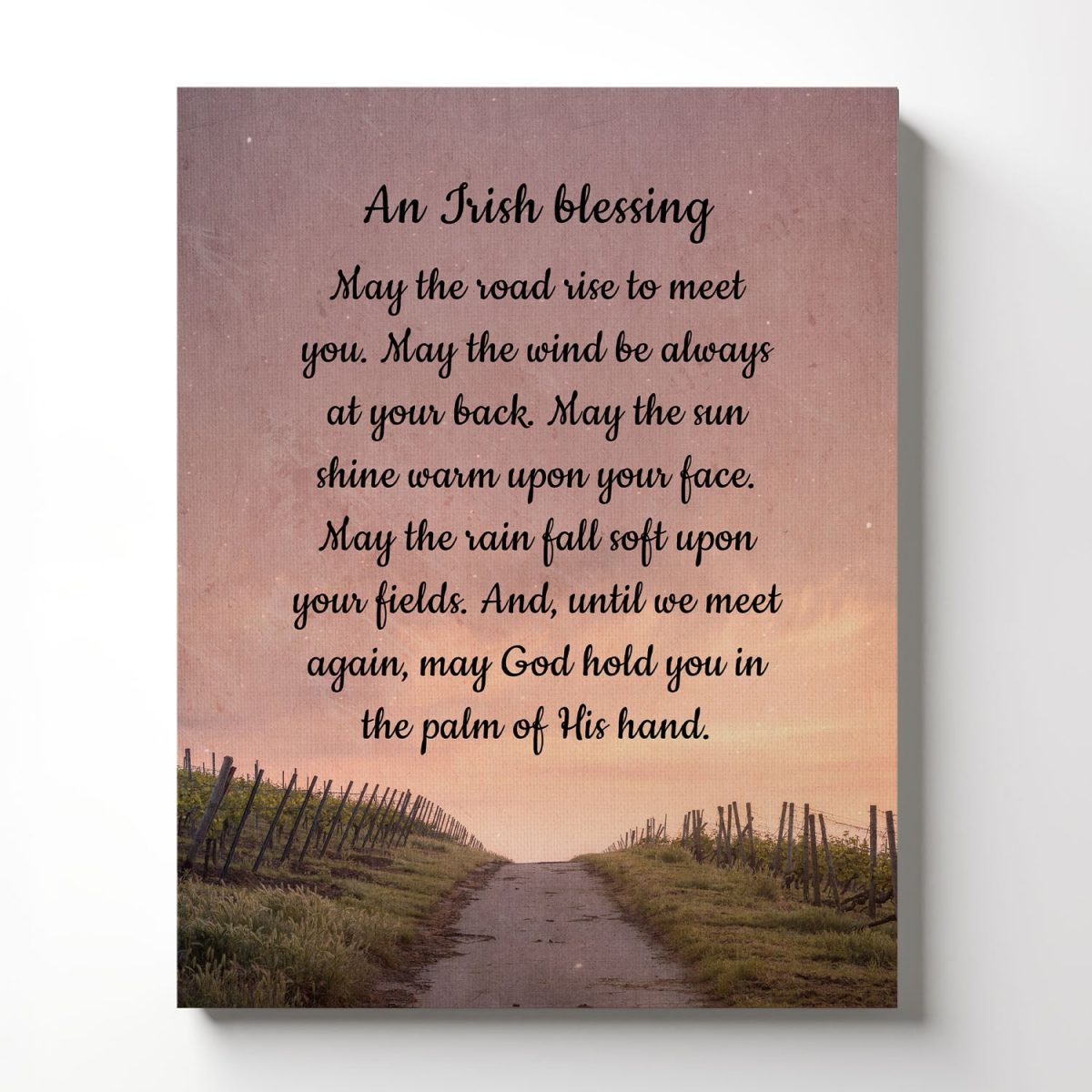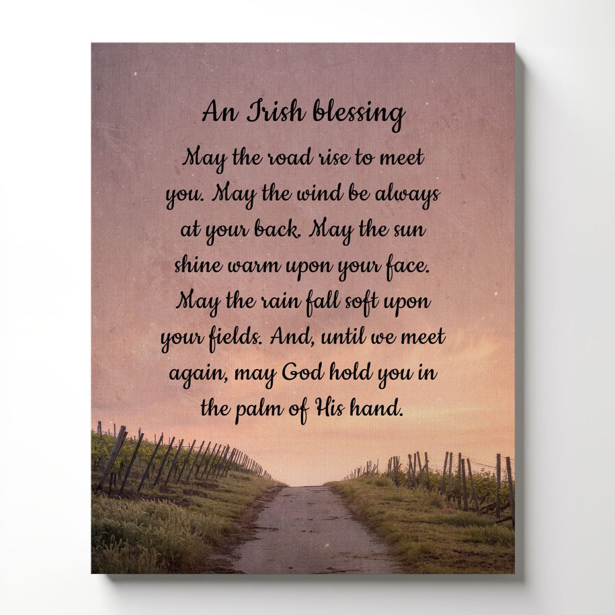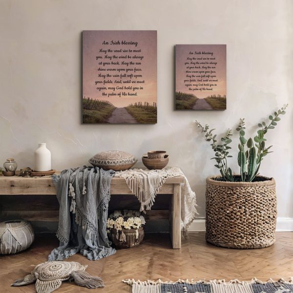 Decorate your home with the serene beauty of Irish blessing wall decor. Our canvas print, a beautiful representation of Irish decorations for home, is infused with the heartfelt Irish prayer, making it a meaningful piece of Irish wall art for any room.