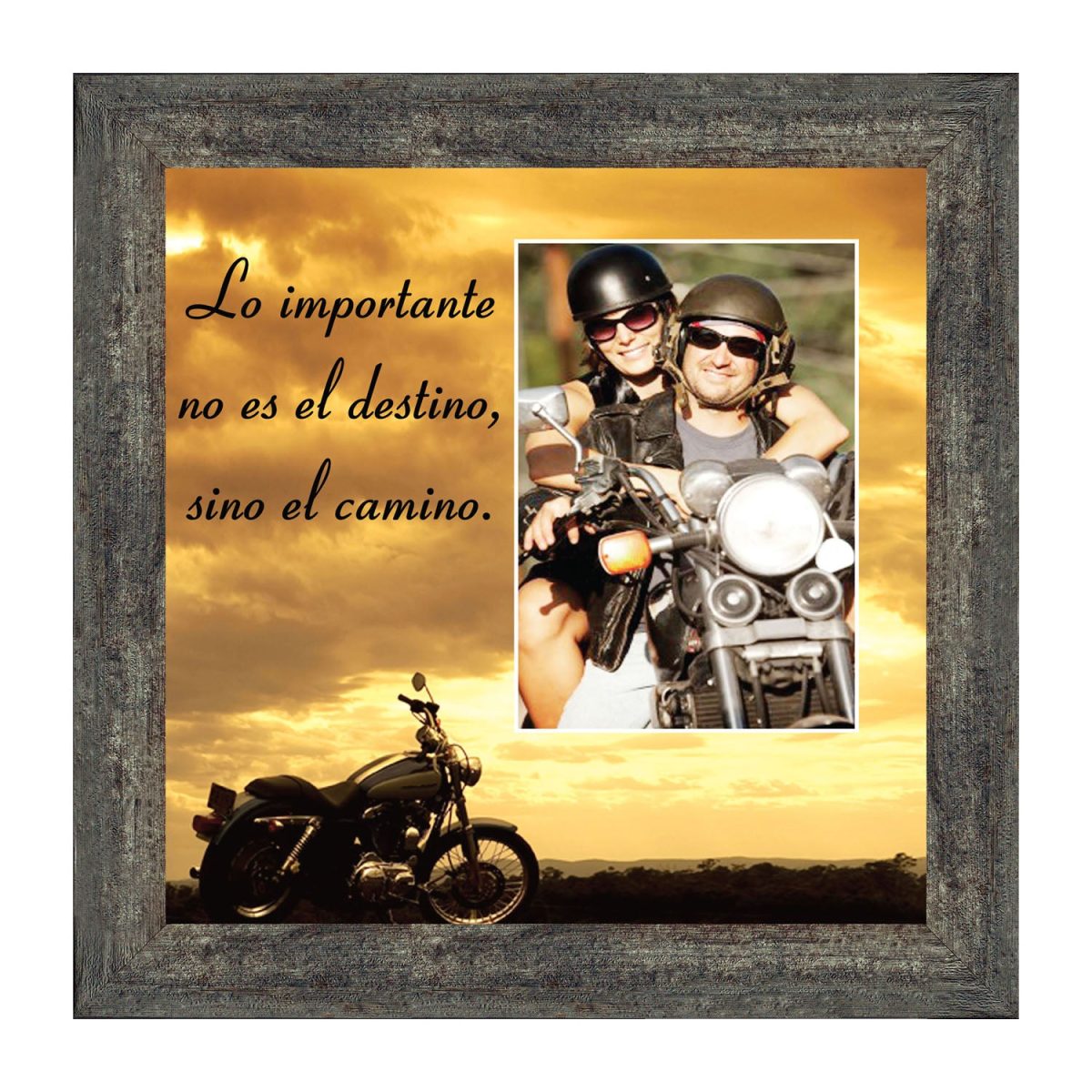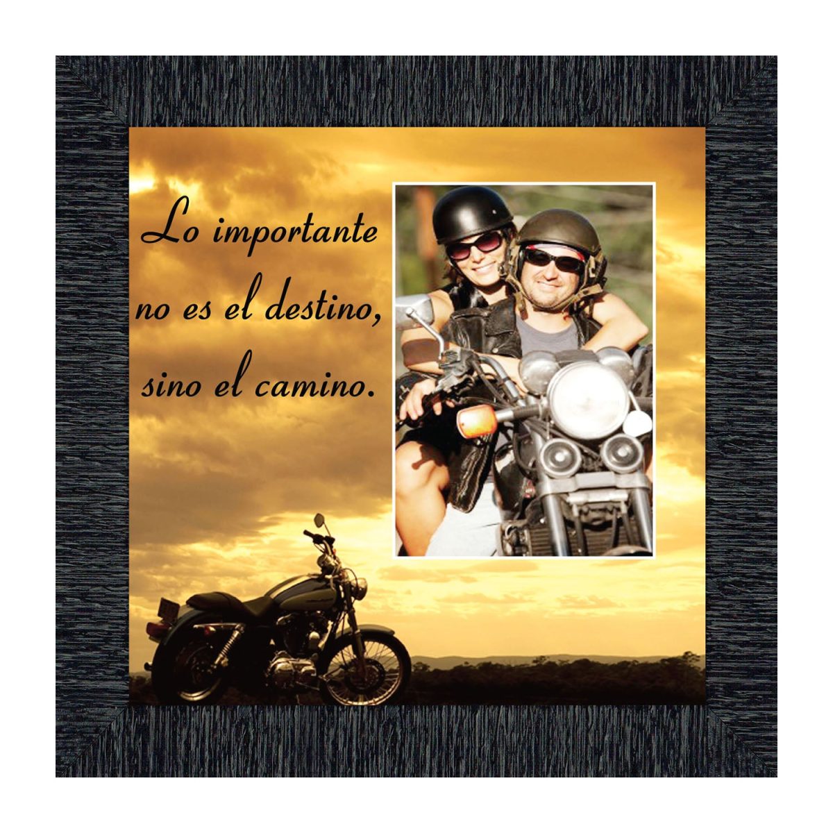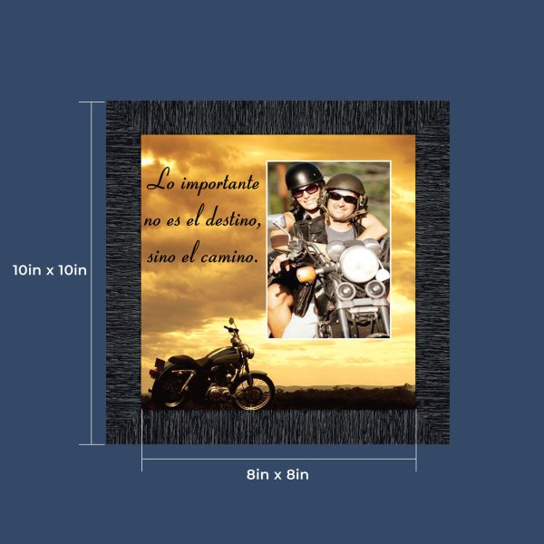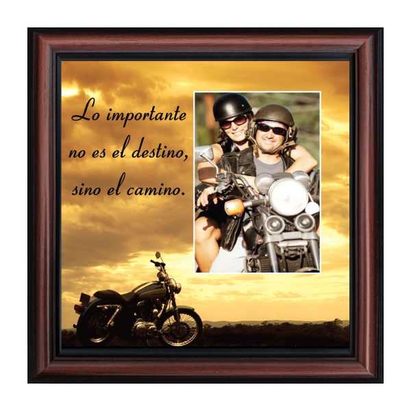 - Picture framed motorcycle with the saying Life’s a Journey.