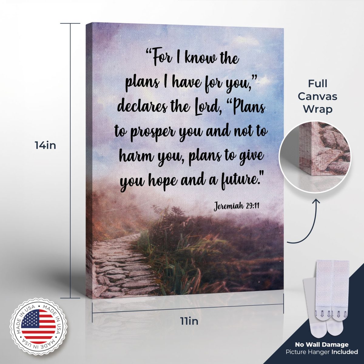 Jeremiah 29 11 Canvas Print, Jermiah 29 11 Wall Art, For I know the Plans Wall Decor, Ready To Hang for Living Room Home Decor, C2130-11×14