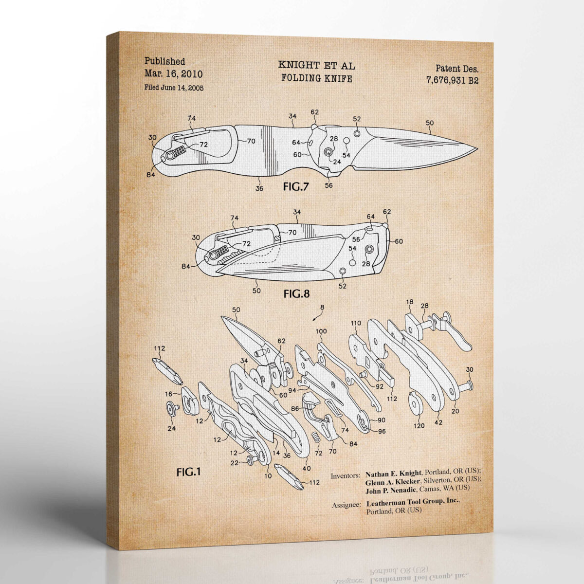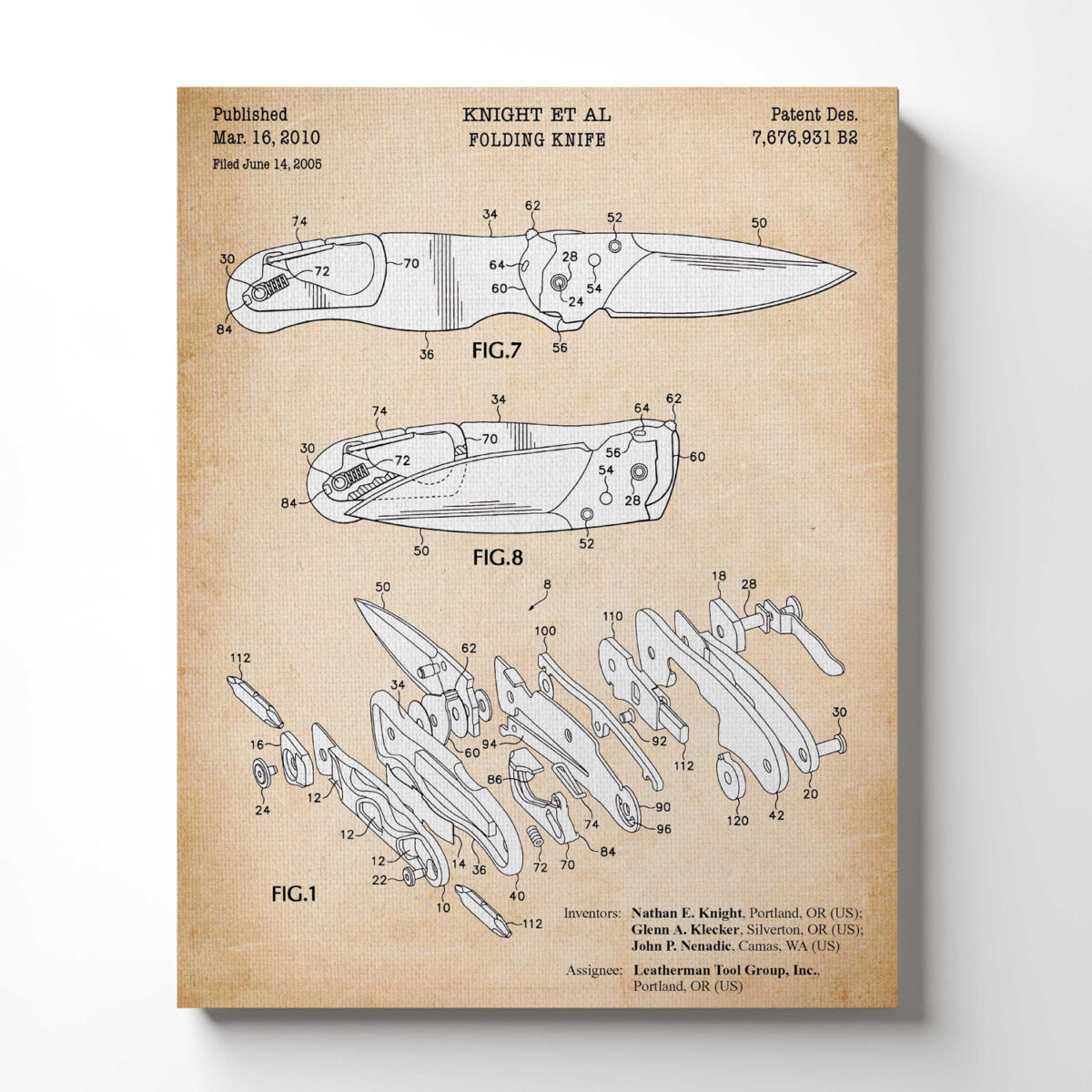 Knife Collector Gifts, Patent Pocket Knife Canvas Print , Ready To Hang for Living Room Home Wall Decor, C2323