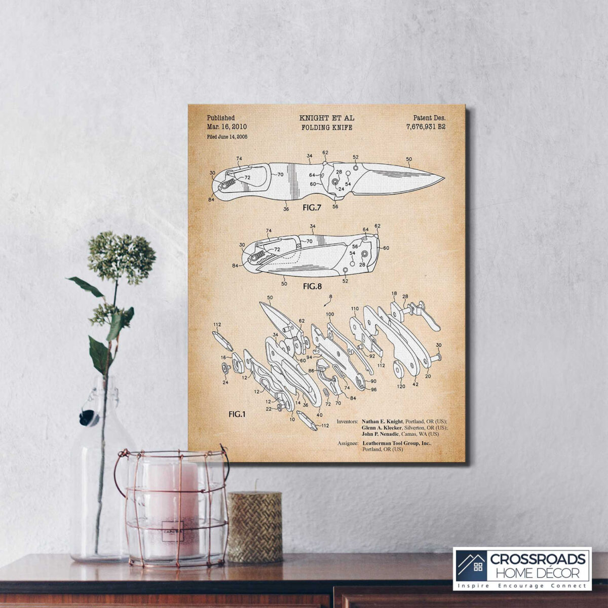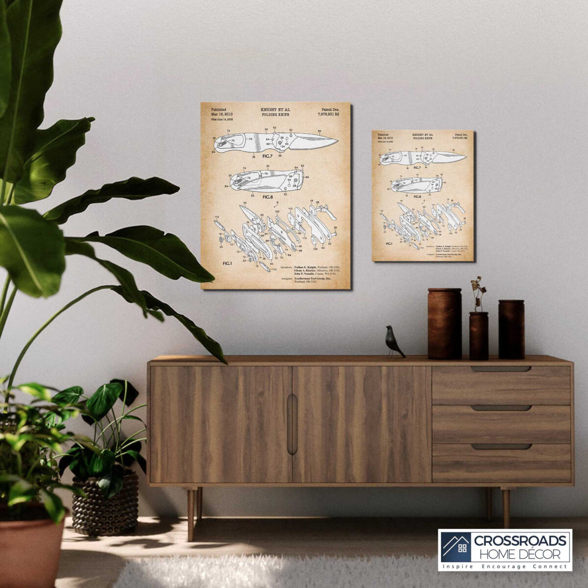 Crossroads Home Knife Collector Gifts, Patent Pocket Knife Canvas Print , Ready To Hang for Living Room Home Wall Decor