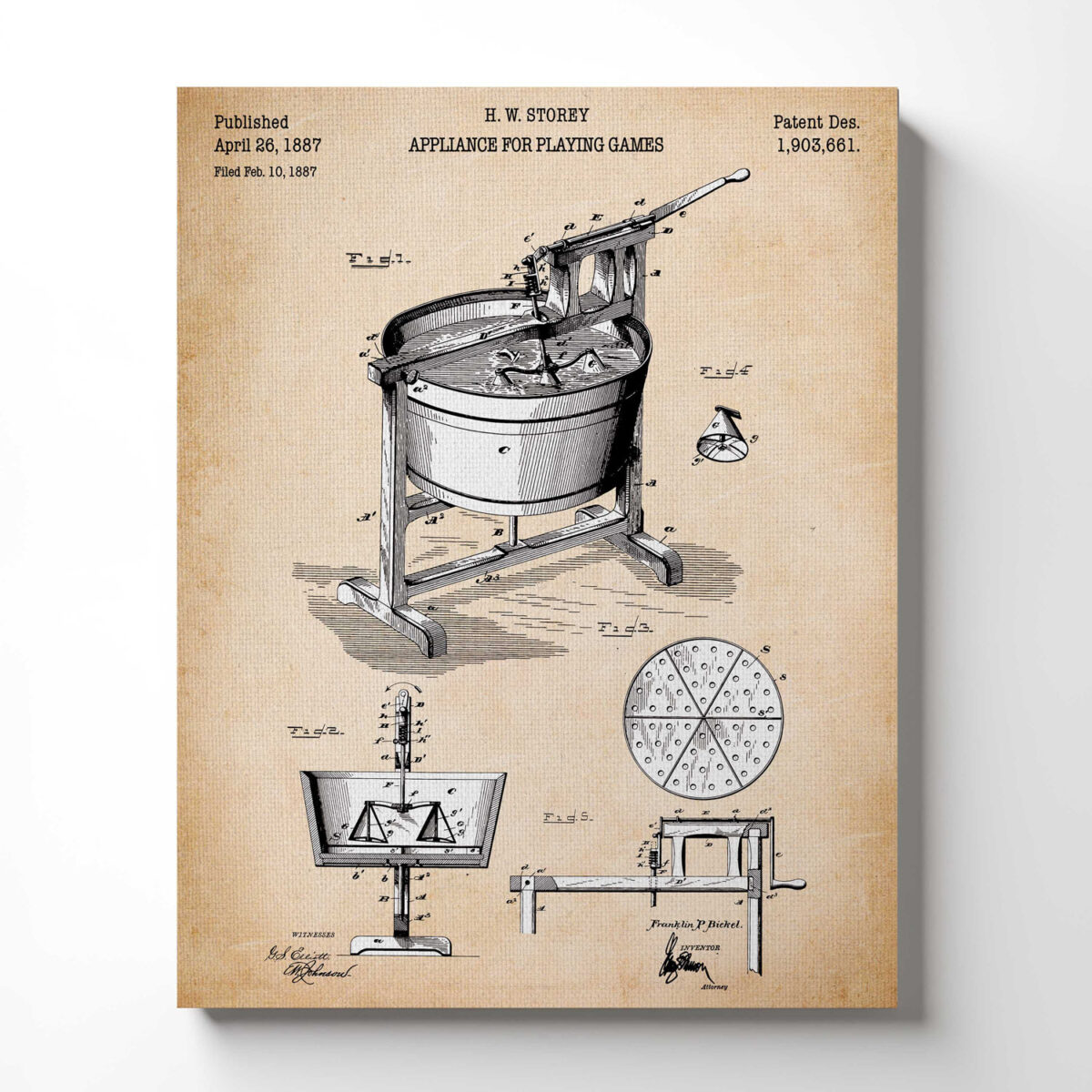 Laundry Room Artwork, Country Decor Laundry Room. Patent Washing Machine Canvas Print, Ready To Hang for Living Room Home Wall Decor, C2575a