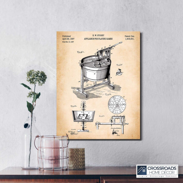Crossroads Home Décor, Laundry Room Artwork, Country Decor Laundry Room. Patent Washing Machine Canvis Print, Ready To Hang for Living Room Home Wall Decor