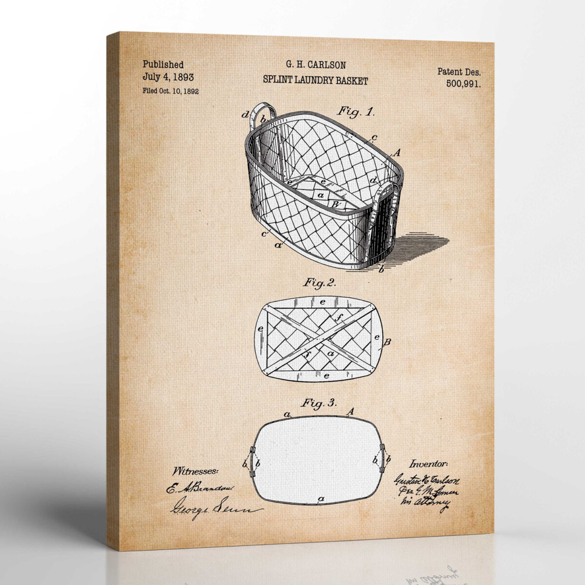 Laundry Room Décor, Patent Laundry Basket Canvas Print, Ready To Hang for Living Room Home Wall Decor, C2575b