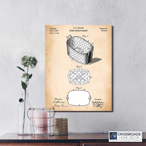 Crossroads Home Décor, Laundry Room Décor, Patent Laundry Basket Canvas Print, Ready To Hang for Living Room Home Wall Decor