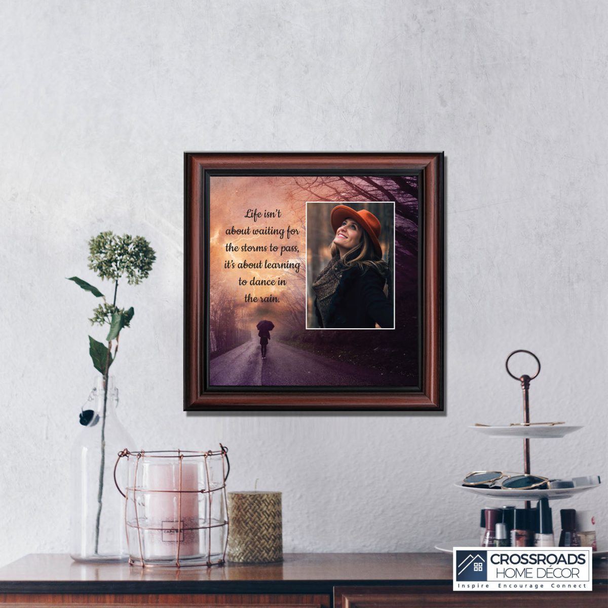 “Life Isn’t About Waiting for the Storm to Pass, It’s About Learning to Dance in the Rain”, Gift of Motivational Wall Art, Inspirational Desk Decor, 8×8, 6426