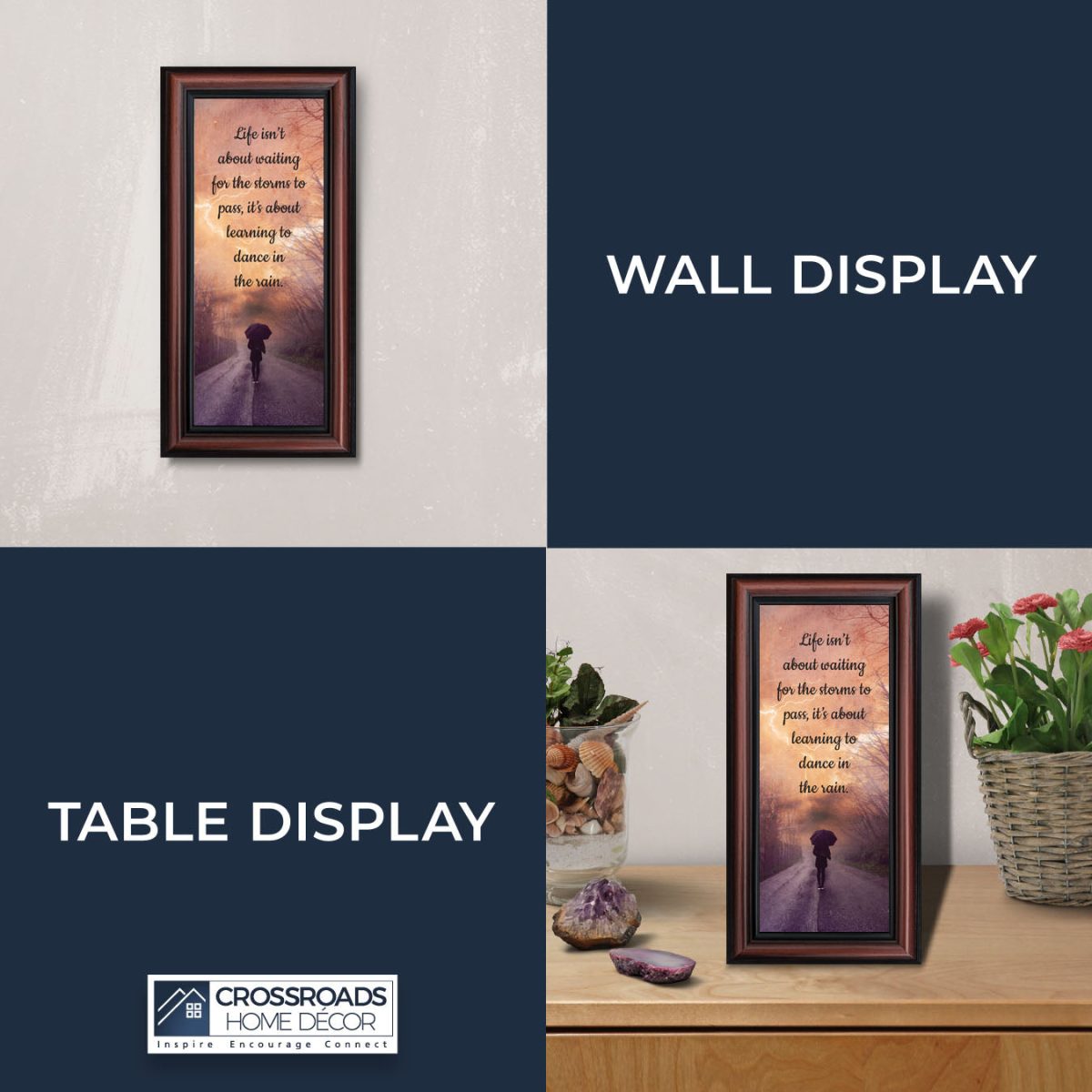 INSPIRE, ENCOURAGE and CONNECT with people to show you care. This inspirational work of art will give everyone who sees it an encouraging word for the day. Each frame is carefully packed and shipped to you or whomever you choose to ship it to. Every frame has an easel back that make for a quick easy display or a wall hanger for a more permanent decor solution. The front is real glass and will protect the print inside from fingerprints and dust. This beautiful, encouraging work of art will be cherished by your loved one for a lifetime.