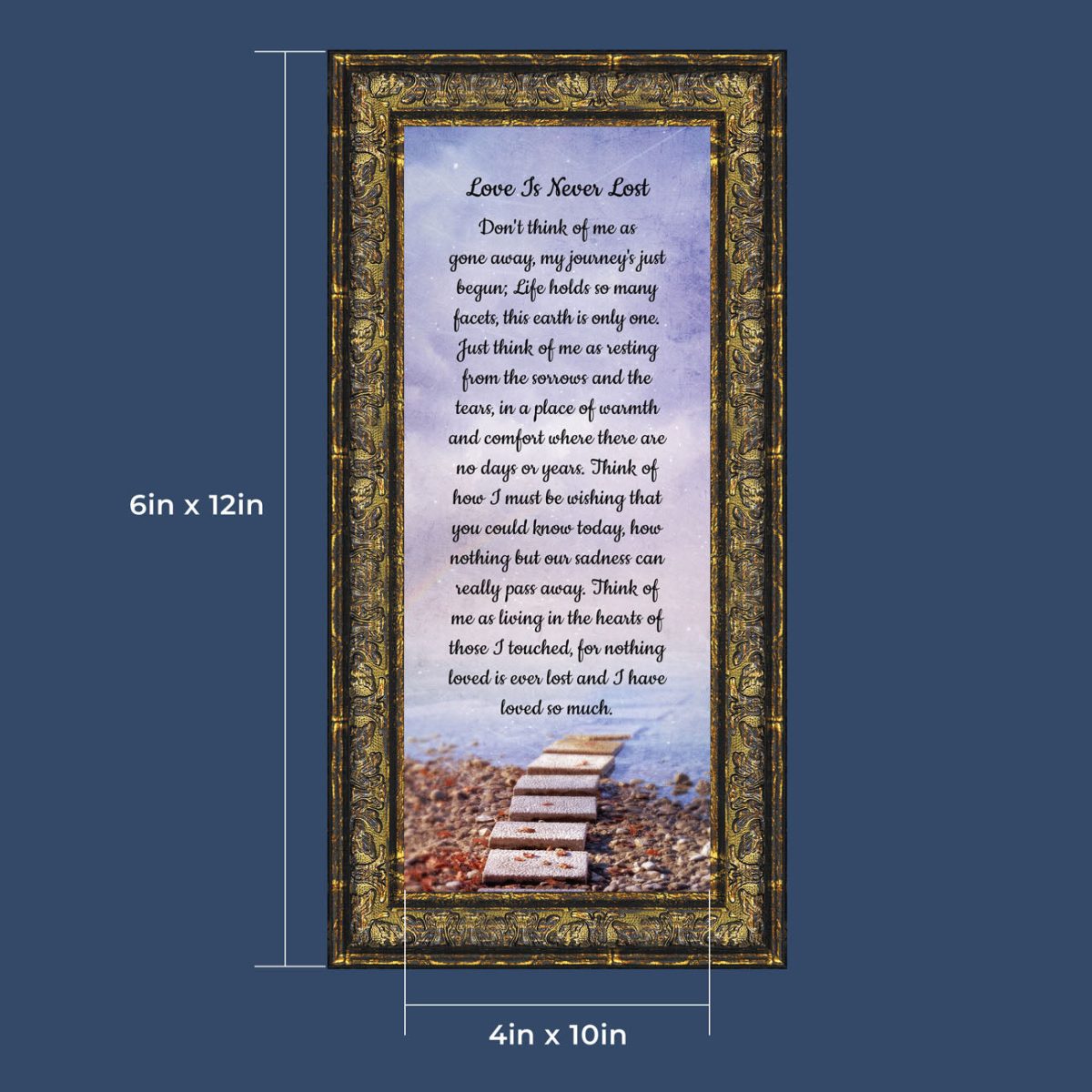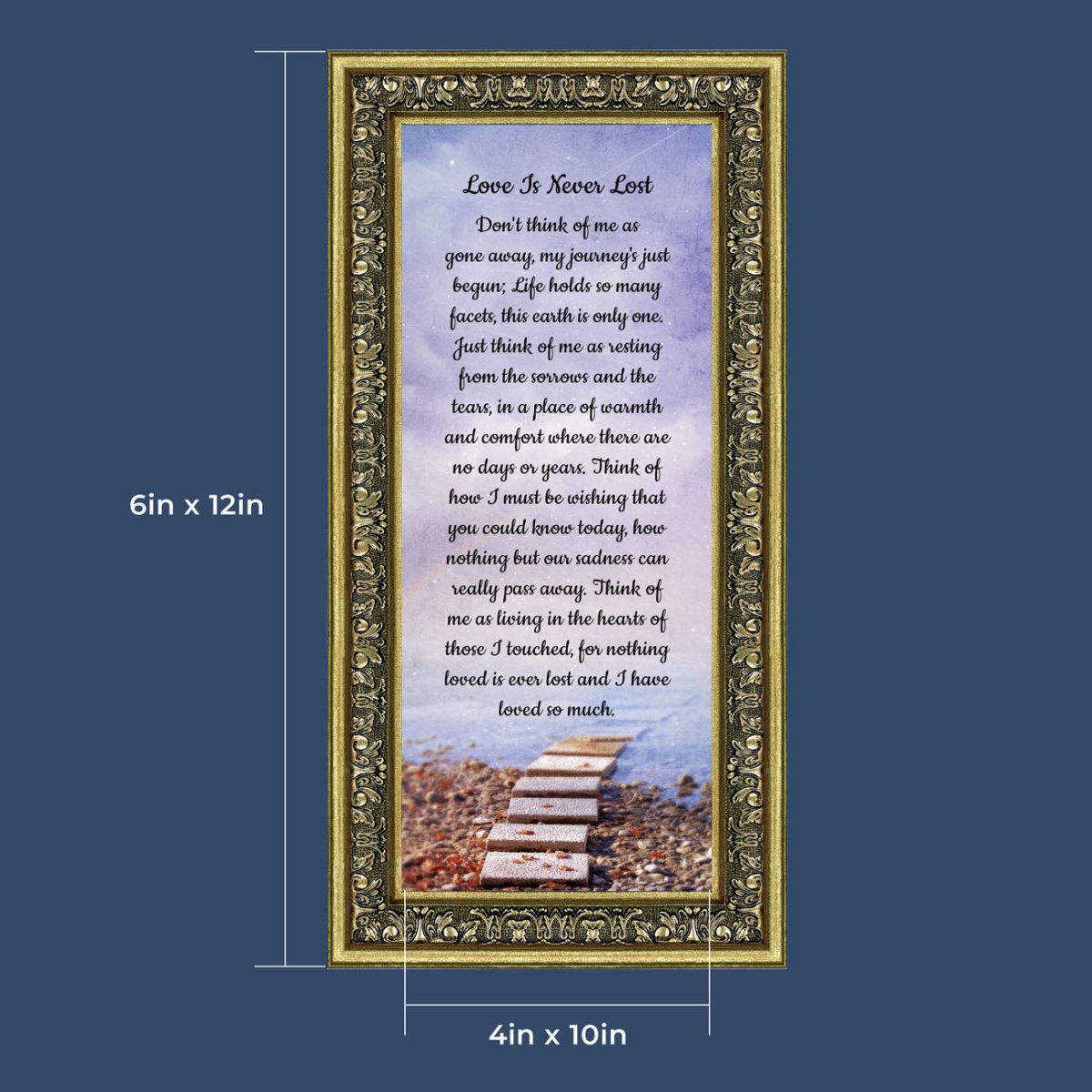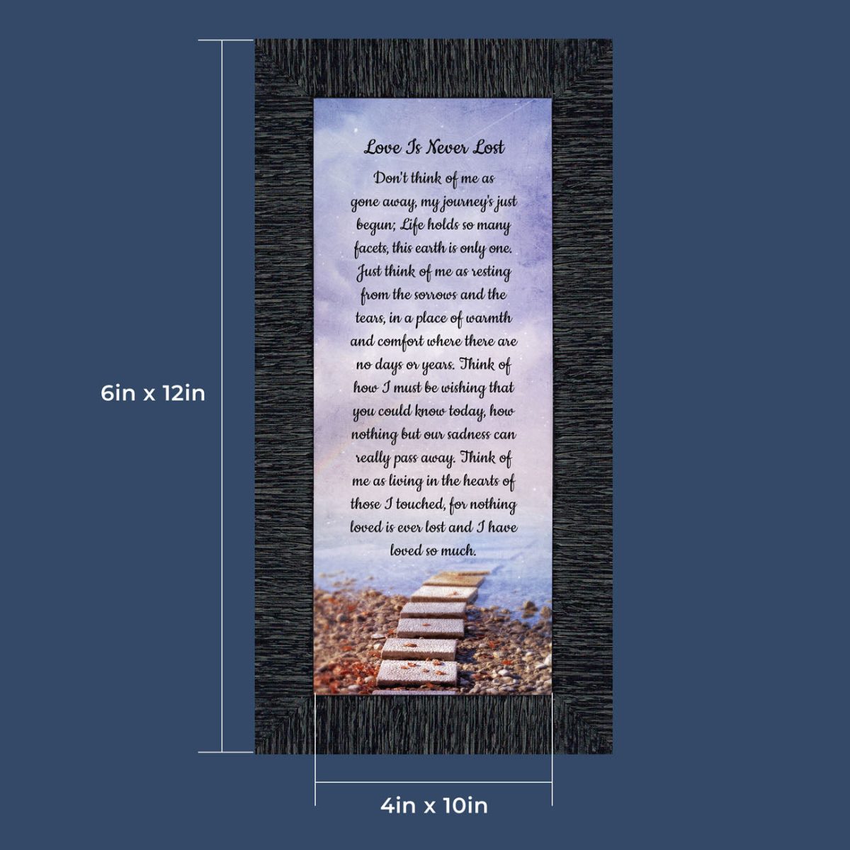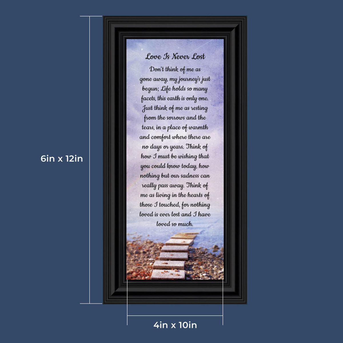 BEAUTIFUL MEMORIAL GIFTS for loss of mother or sentimental memorial gifts for loss of father. A very special sympathy gift for anyone who has lost someone they love. The words in the “Love is Never Lost” poem are a powerful daily reminder of a loved one who has passed away. The healing words will bring comfort and peace to those who are grieving. Add the frame to your sympathy gift baskets or sympathy card for a truly meaningful “thinking of you” gift.