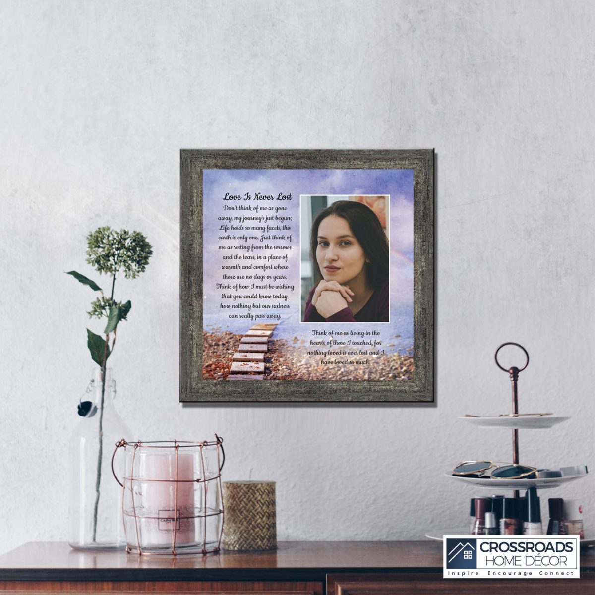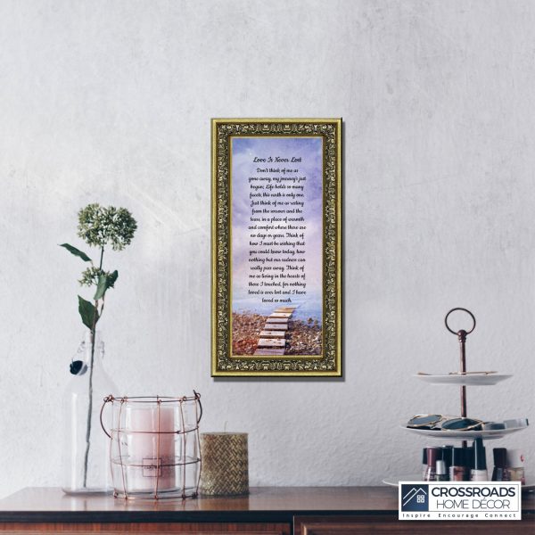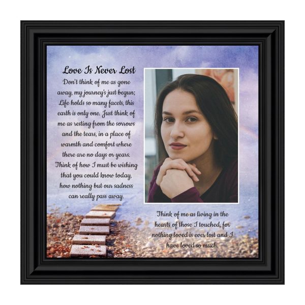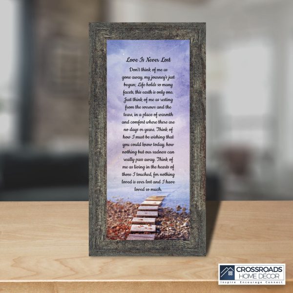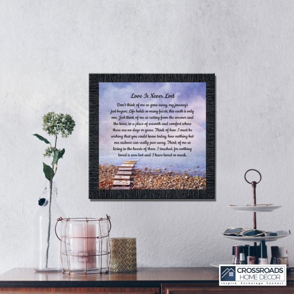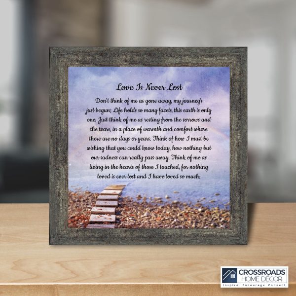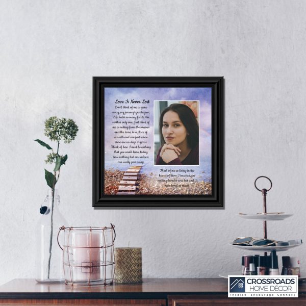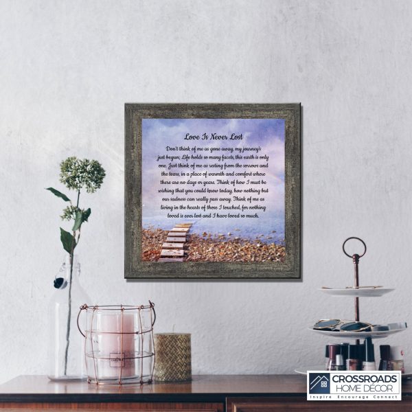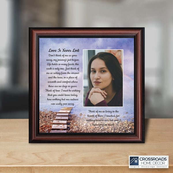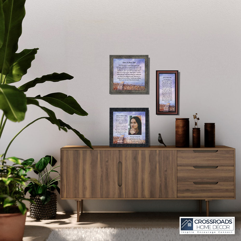 Crossroads Home Decor Memorial Picture Frames Sympathy Gift, Condolence Card, Photo Frames for Sympathy Gift Baskets, Bereavement Gifts In Memory of Loved One, Memories Wall Decor, Love is Never Lost Framed Poem