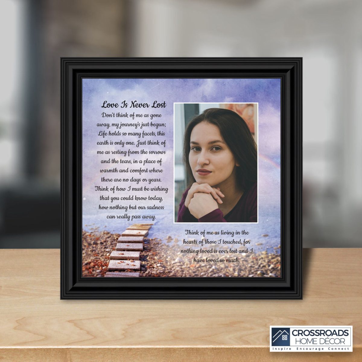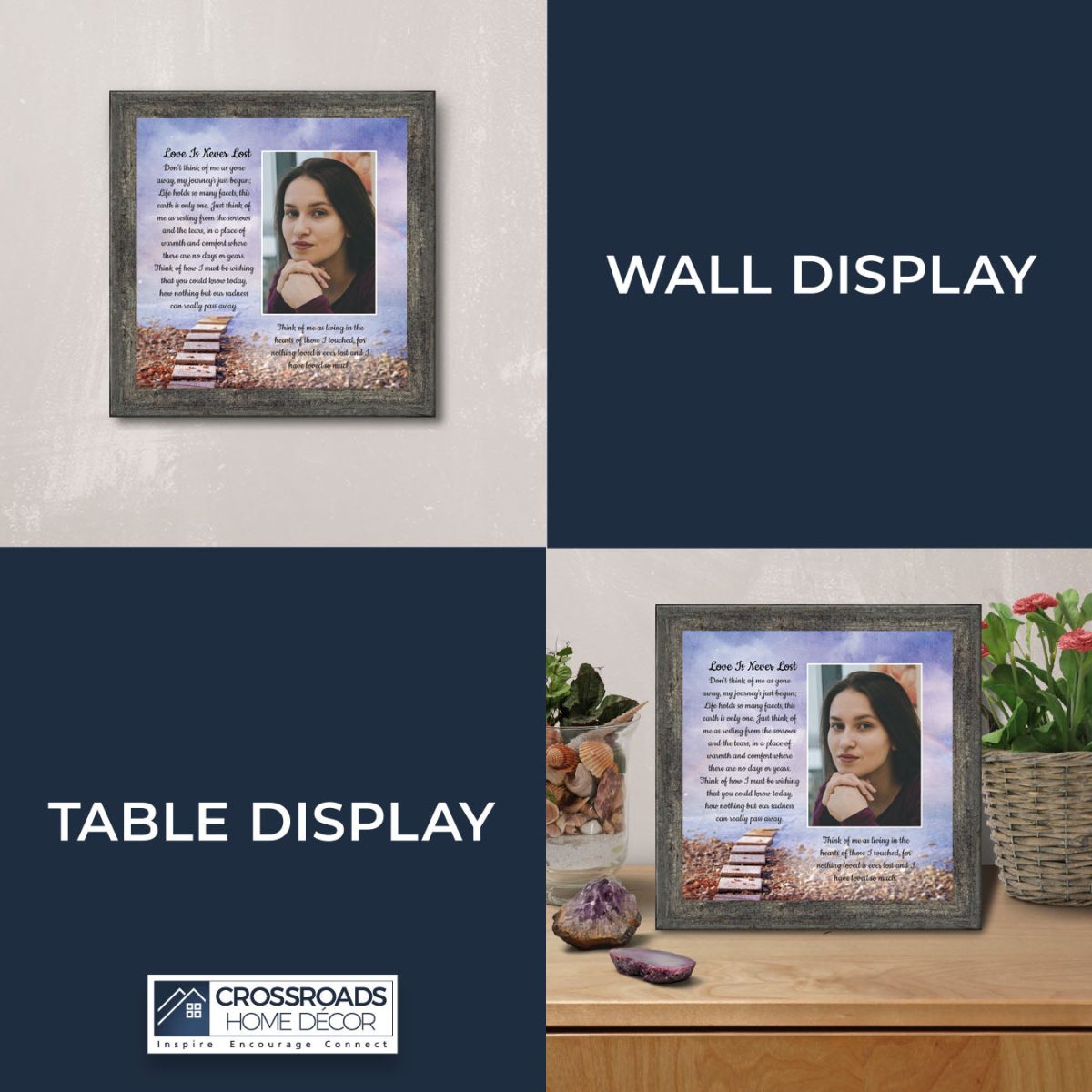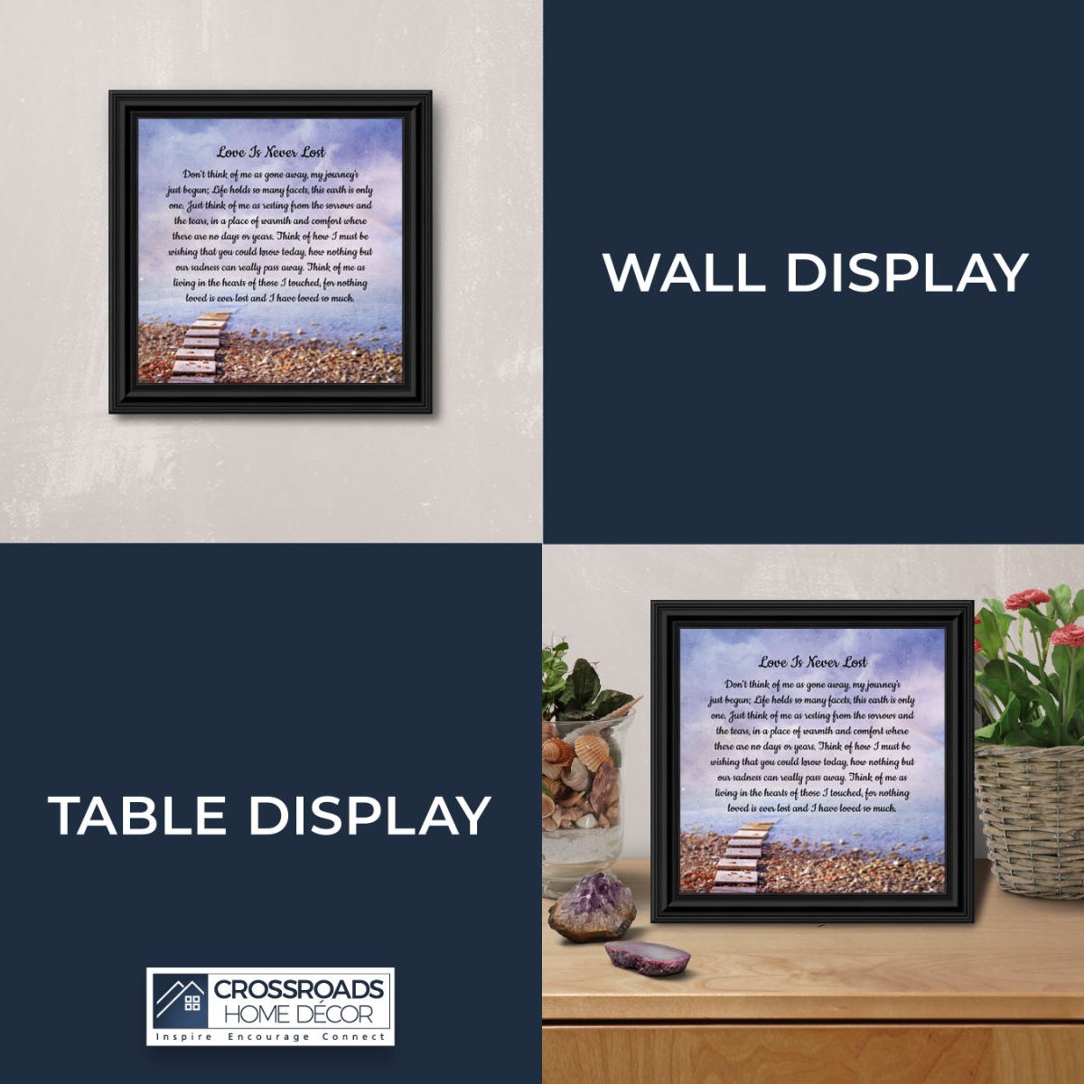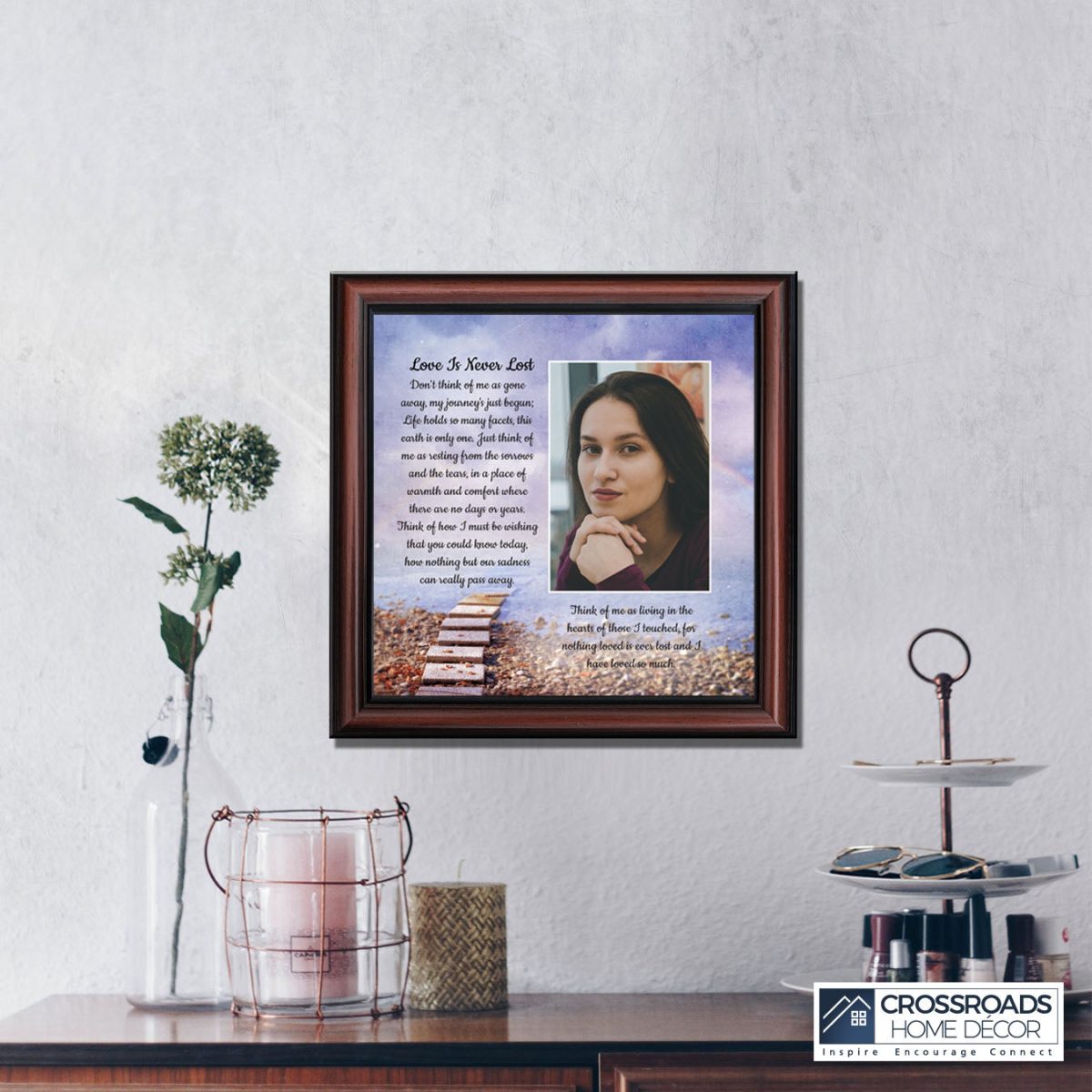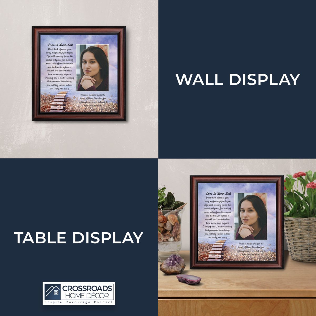 Crossroads Home Decor Memorial Picture Frames Sympathy Gift, Condolence Card, Photo Frames for Sympathy Gift Baskets, Bereavement Gifts In Memory of Loved One, Memories Wall Decor, Love is Never Lost Framed Poem