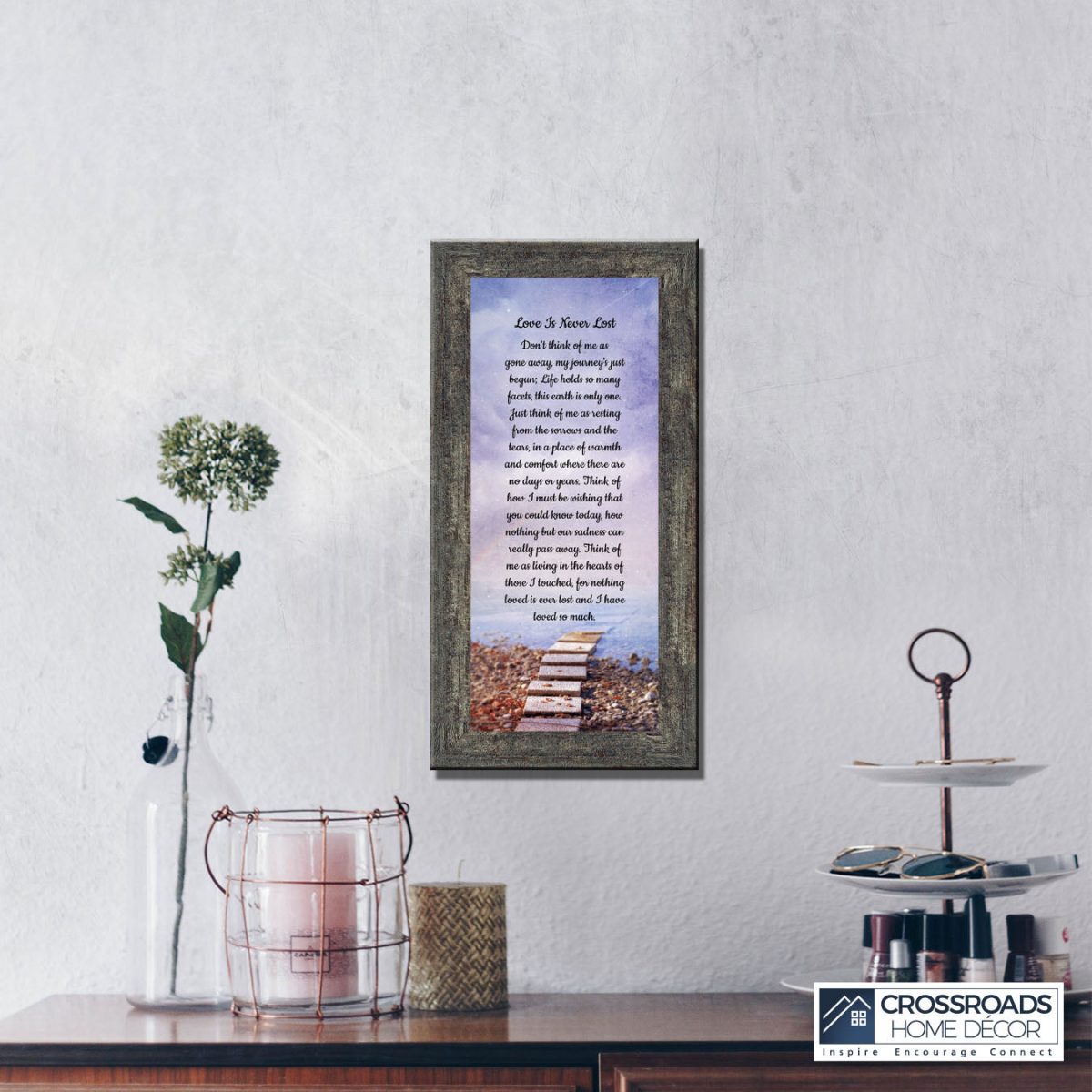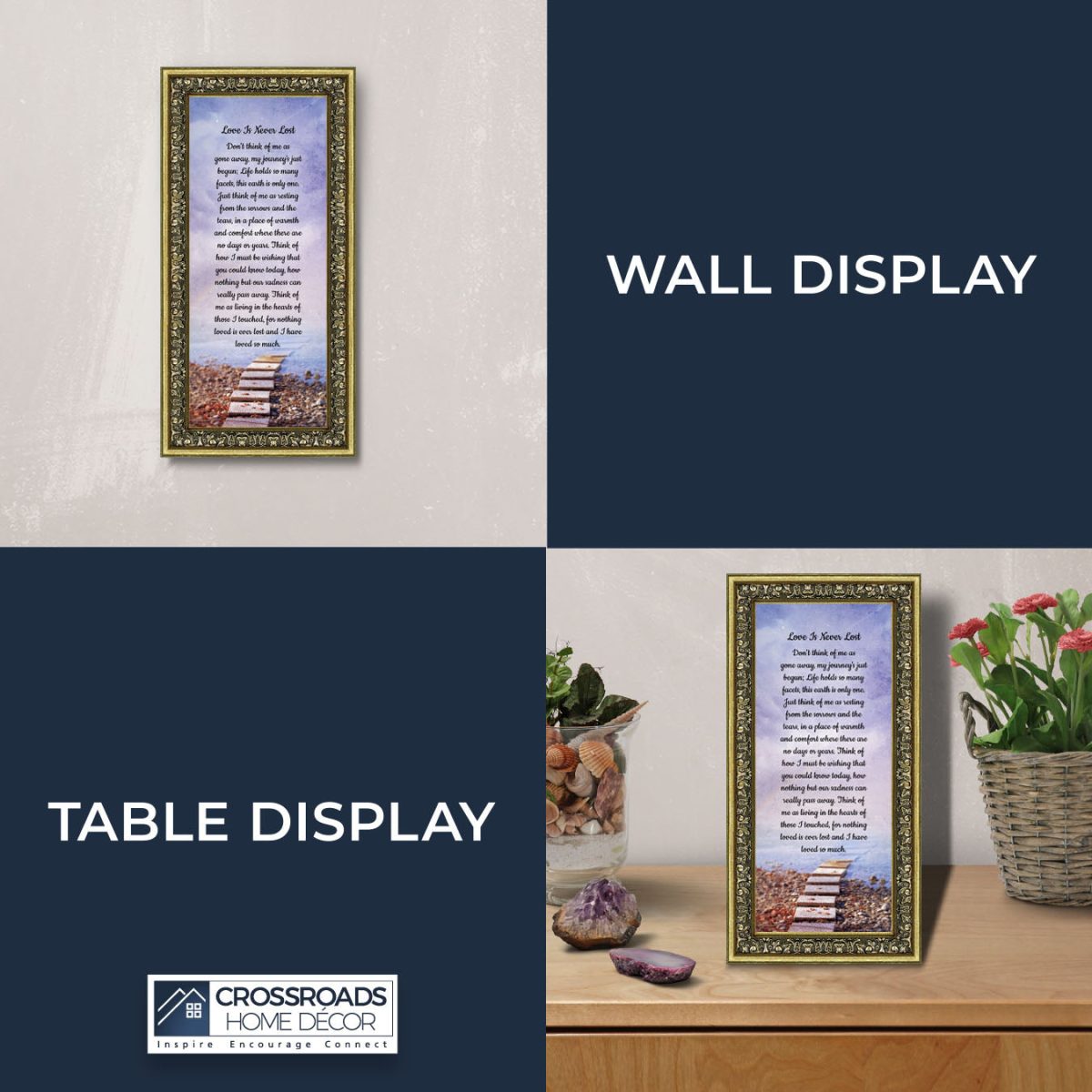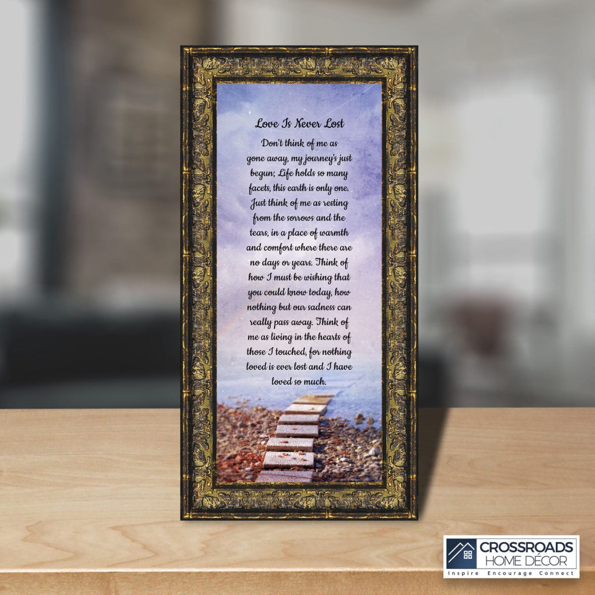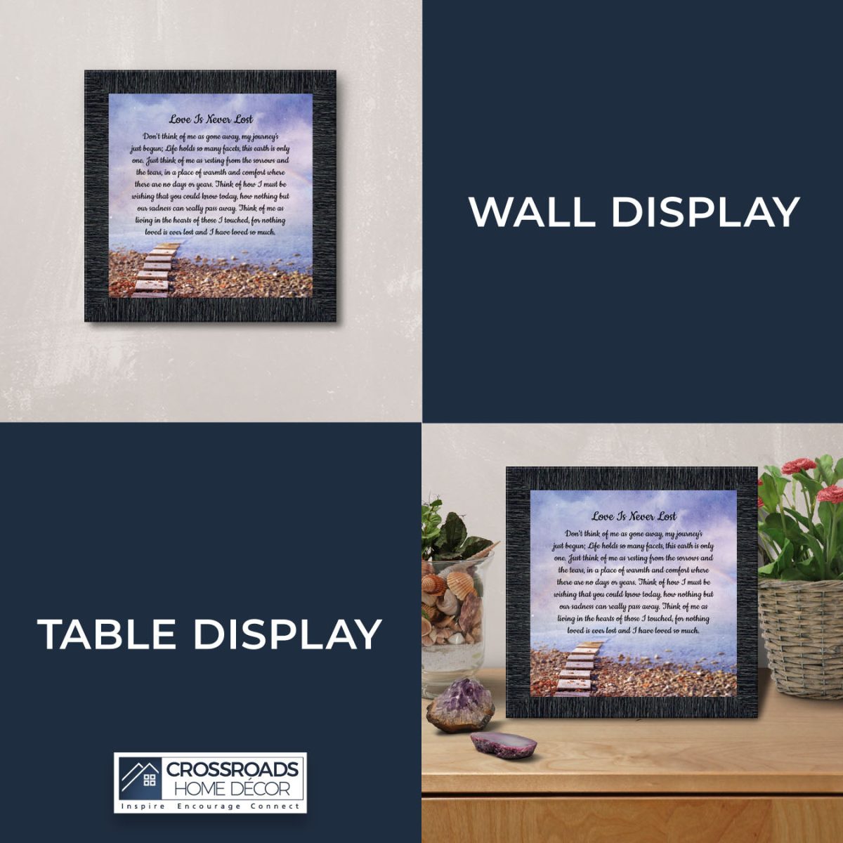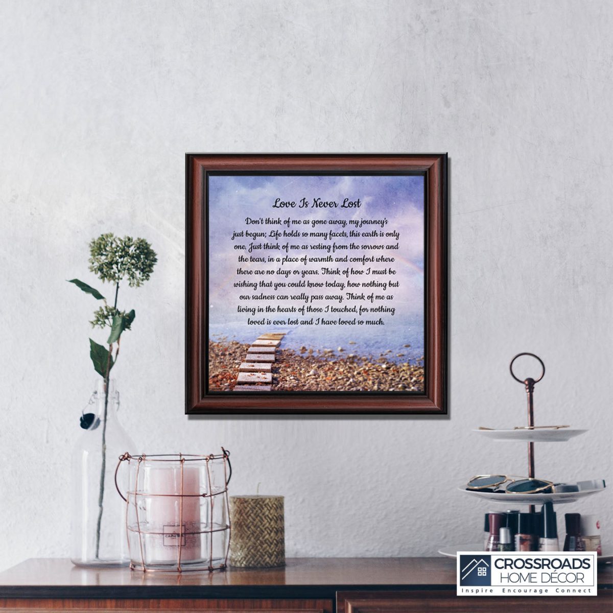 Crossroads Home Decor Memorial Picture Frames Sympathy Gift, Condolence Card, Photo Frames for Sympathy Gift Baskets, Bereavement Gifts In Memory of Loved One, Memories Wall Decor, Love is Never Lost Framed Poem
