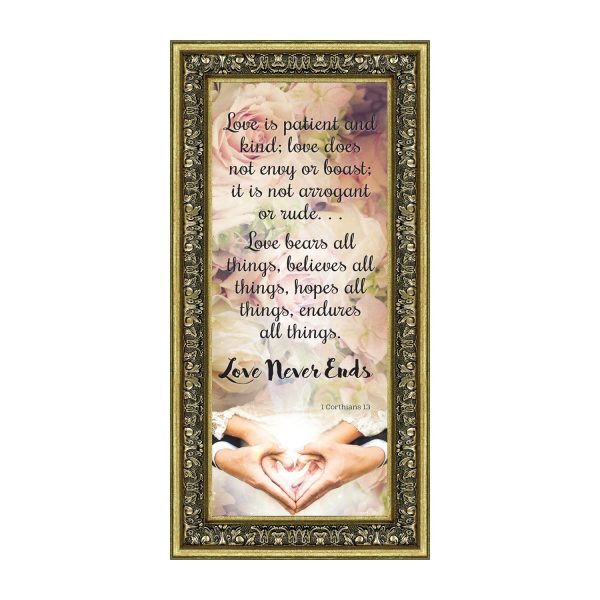“Love is Patient and Kind; love does not envy or boast; it is not arrogant or rude…Love bears all things, believes all things, hopes all things, endures all things. LOVE NEVER ENDS”. This is the perfect Christian wedding gift for the bride and groom.