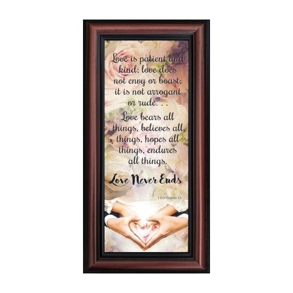 Love Wall Decor for Couples, Christian Wall Decor for Wedding Gifts, Love Never Fails Wall Decor, 1 Corinthians 13 Wall Art, Love is Patient Love is Kind Wall Art, Love Quotes Framed Wall Art, 6×12 7310