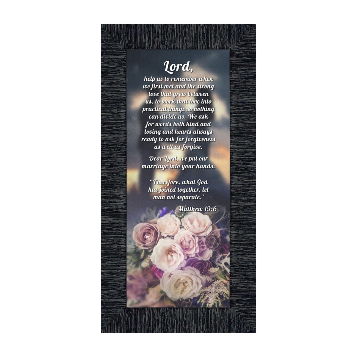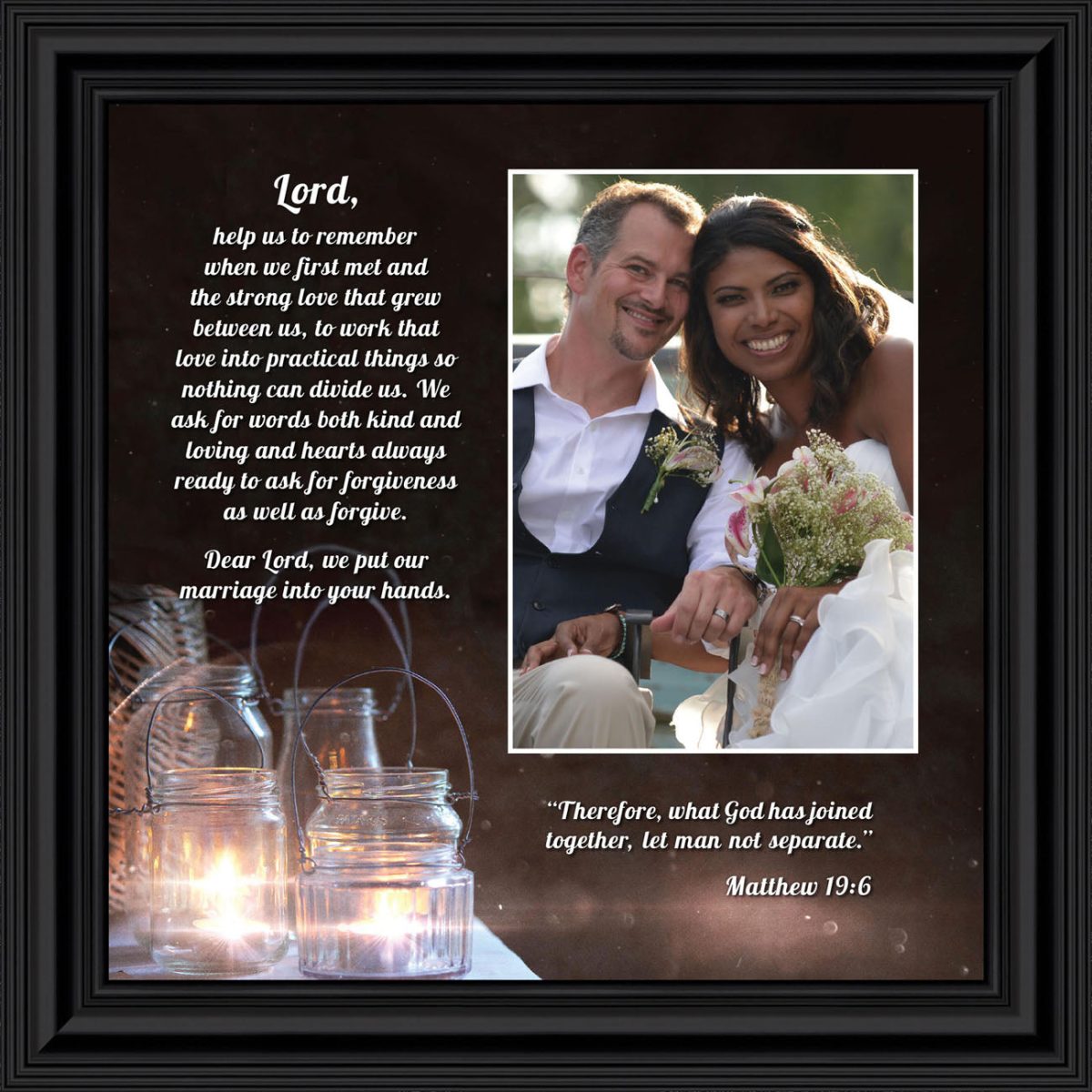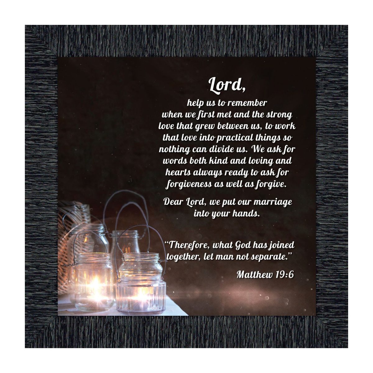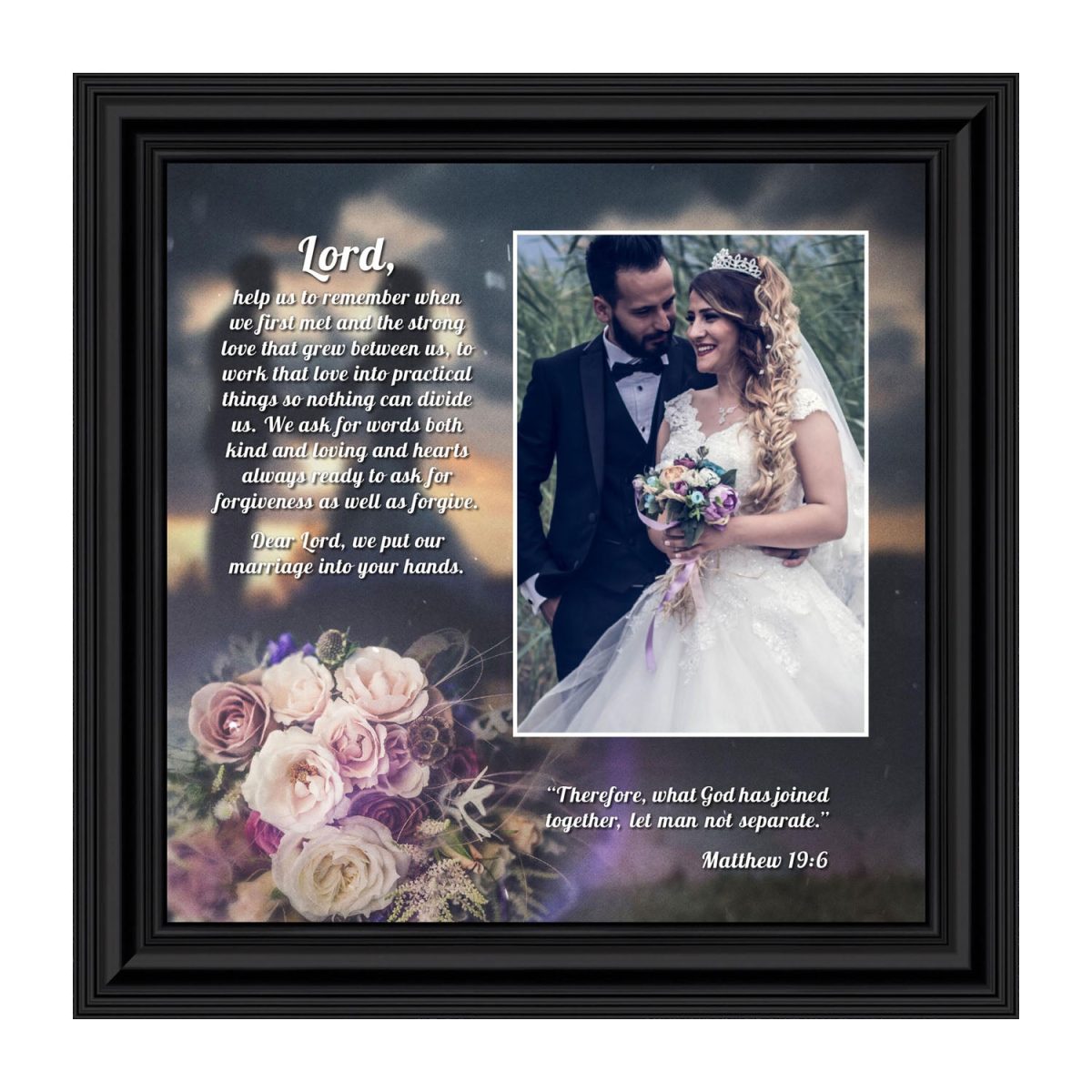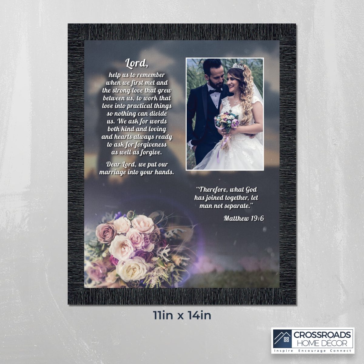 THIS IS A WEDDING GIFT FILLED WITH MEANING and important reminders for any couple. This prayer and Matthew 19:6 scripture will be a daily reminder of the Lord’s blessing upon this marriage. Whether you are looking for a bridal shower gift, an anniversary gift for a special couple or romantic gifts for her, this scripture wall art will show how much you care.