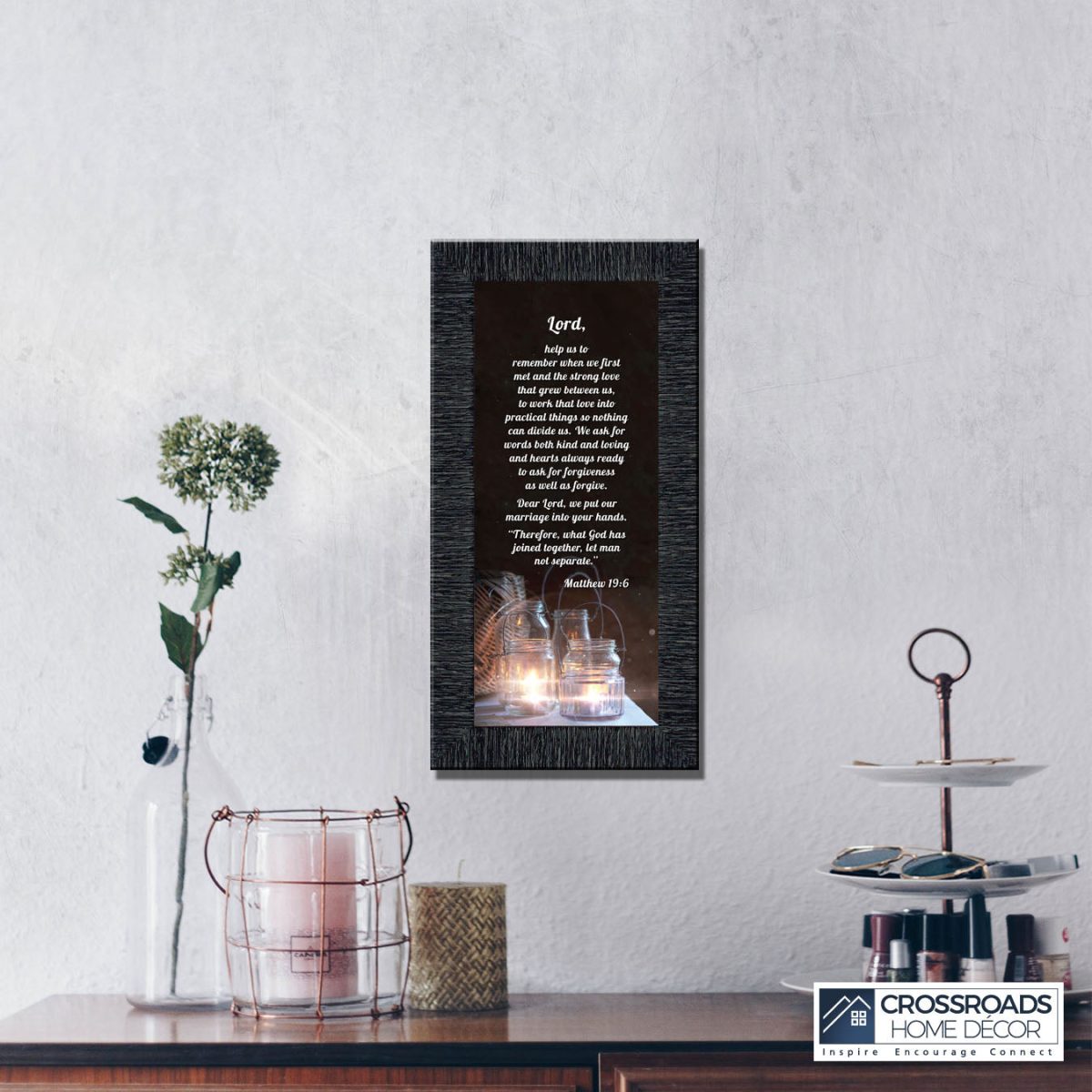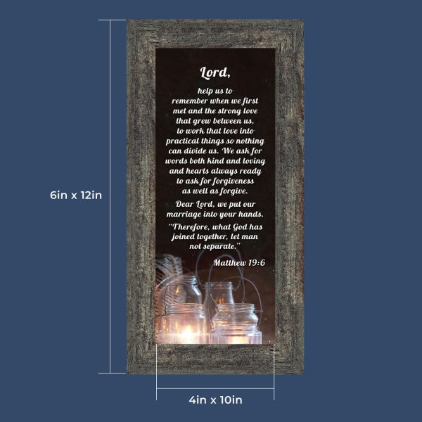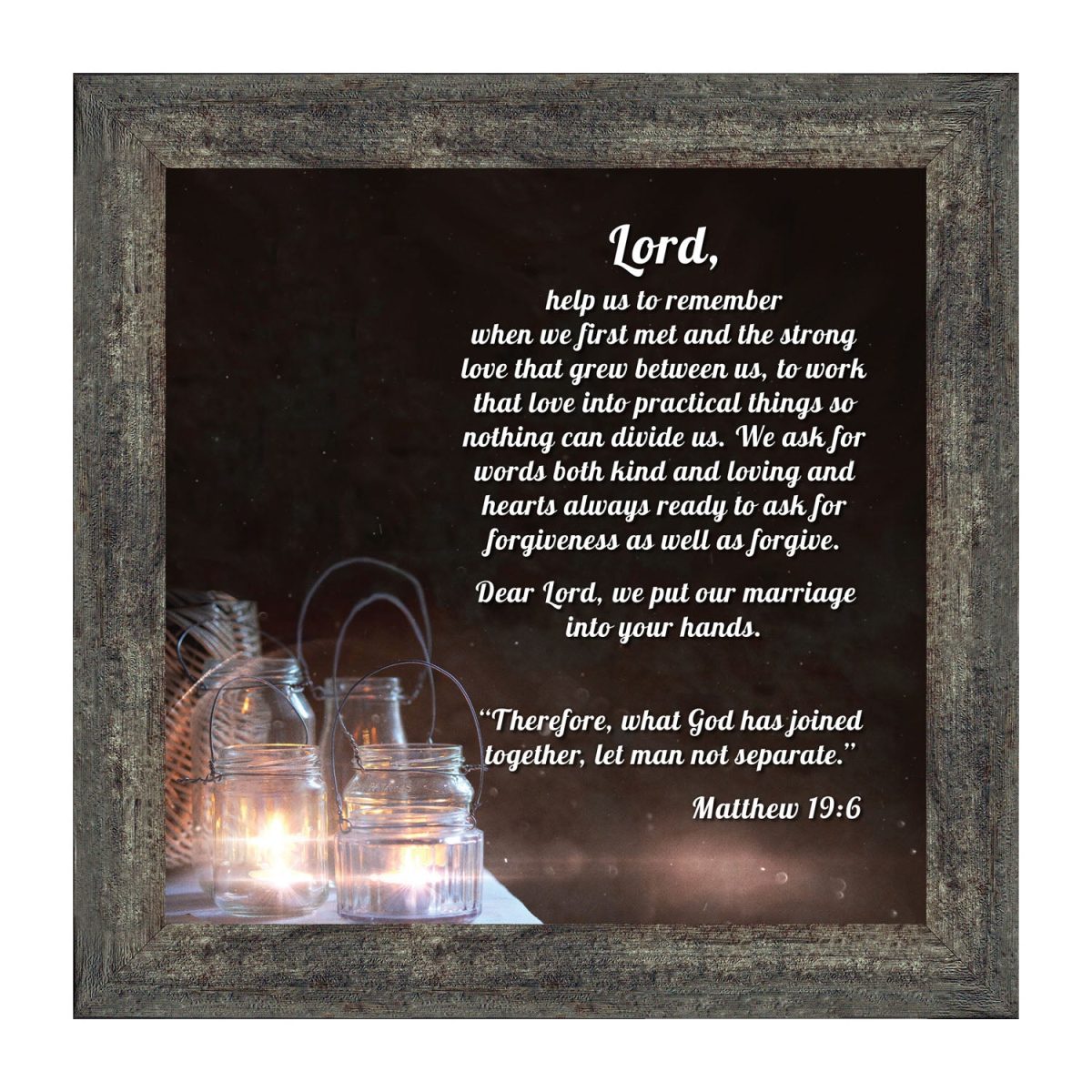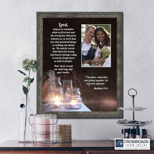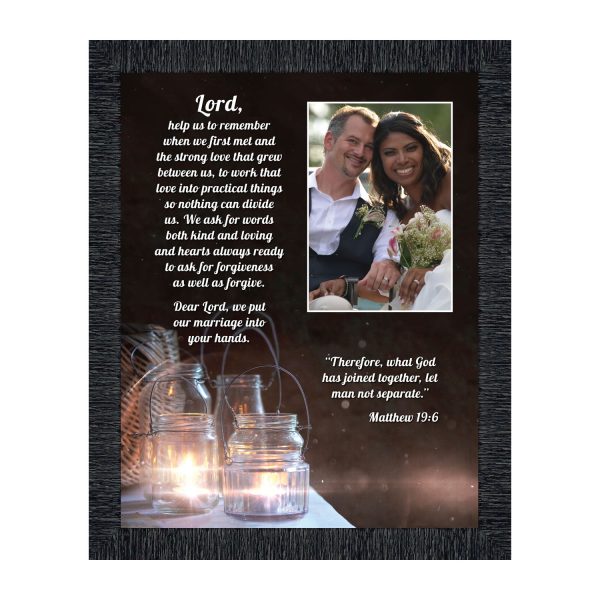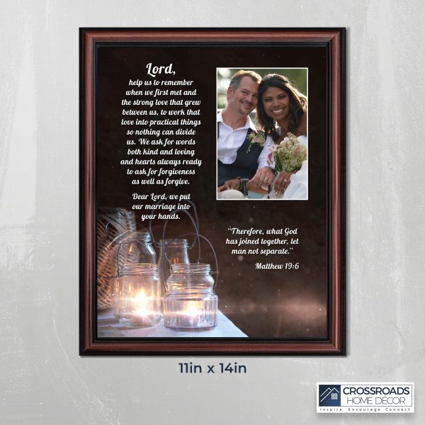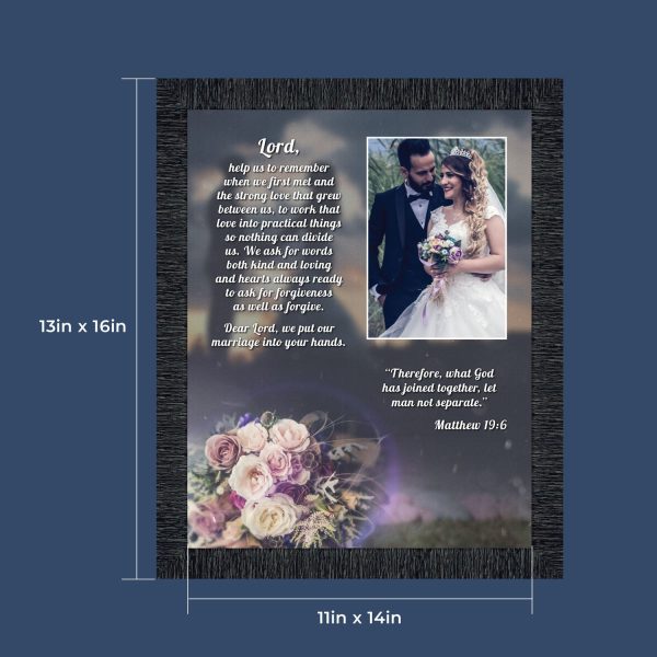 THIS IS A WEDDING GIFT FILLED WITH MEANING and important reminders for any couple. This prayer and Matthew 19:6 scripture will be a daily reminder of the Lord’s blessing upon this marriage. Whether you are looking for a bridal shower gift, an anniversary gift for a special couple or romantic gifts for her, this scripture wall art will show how much you care.