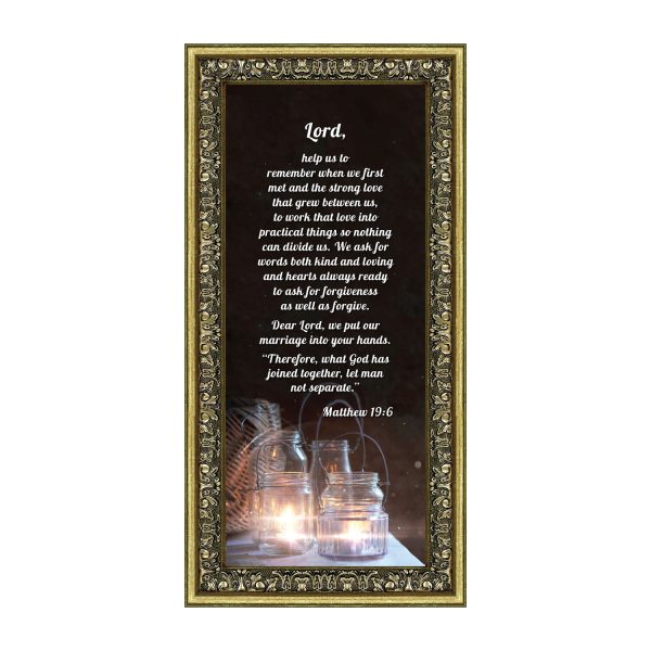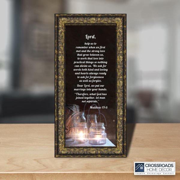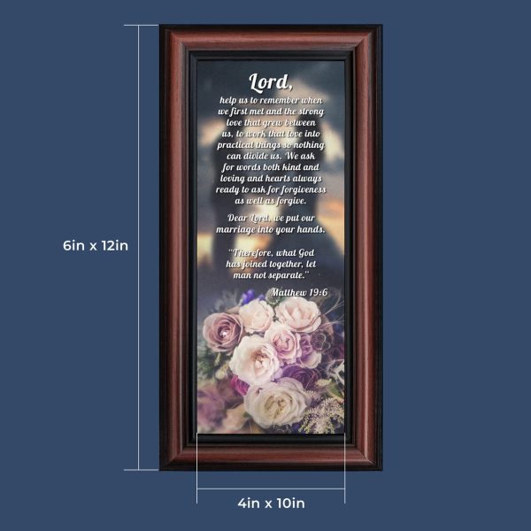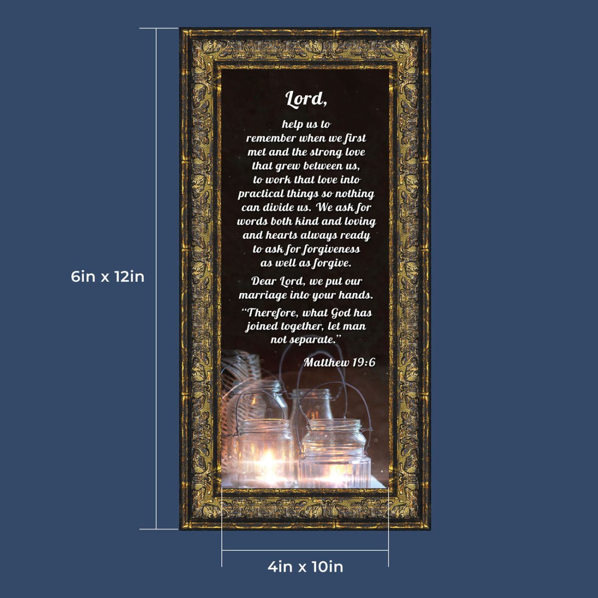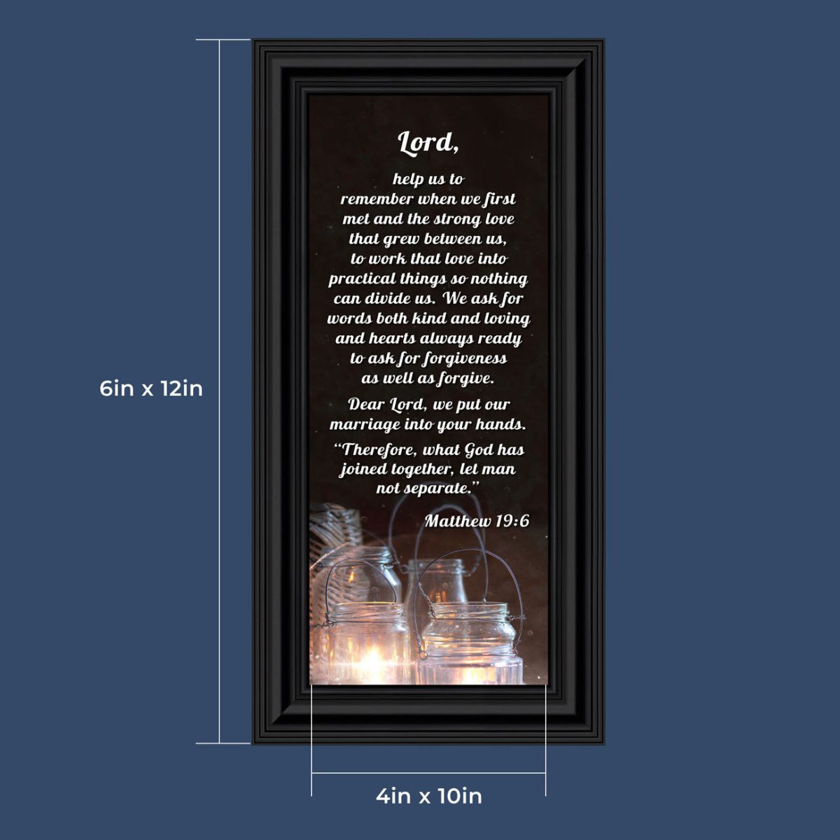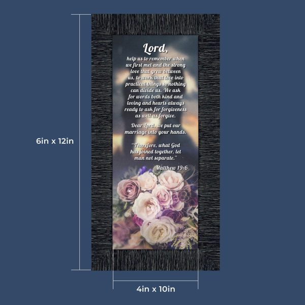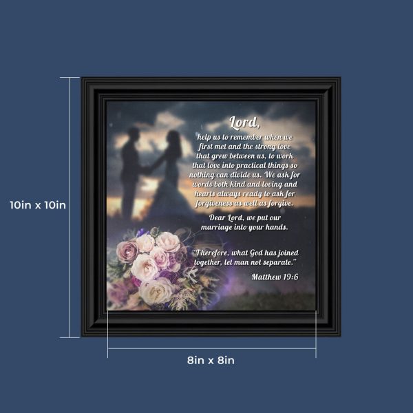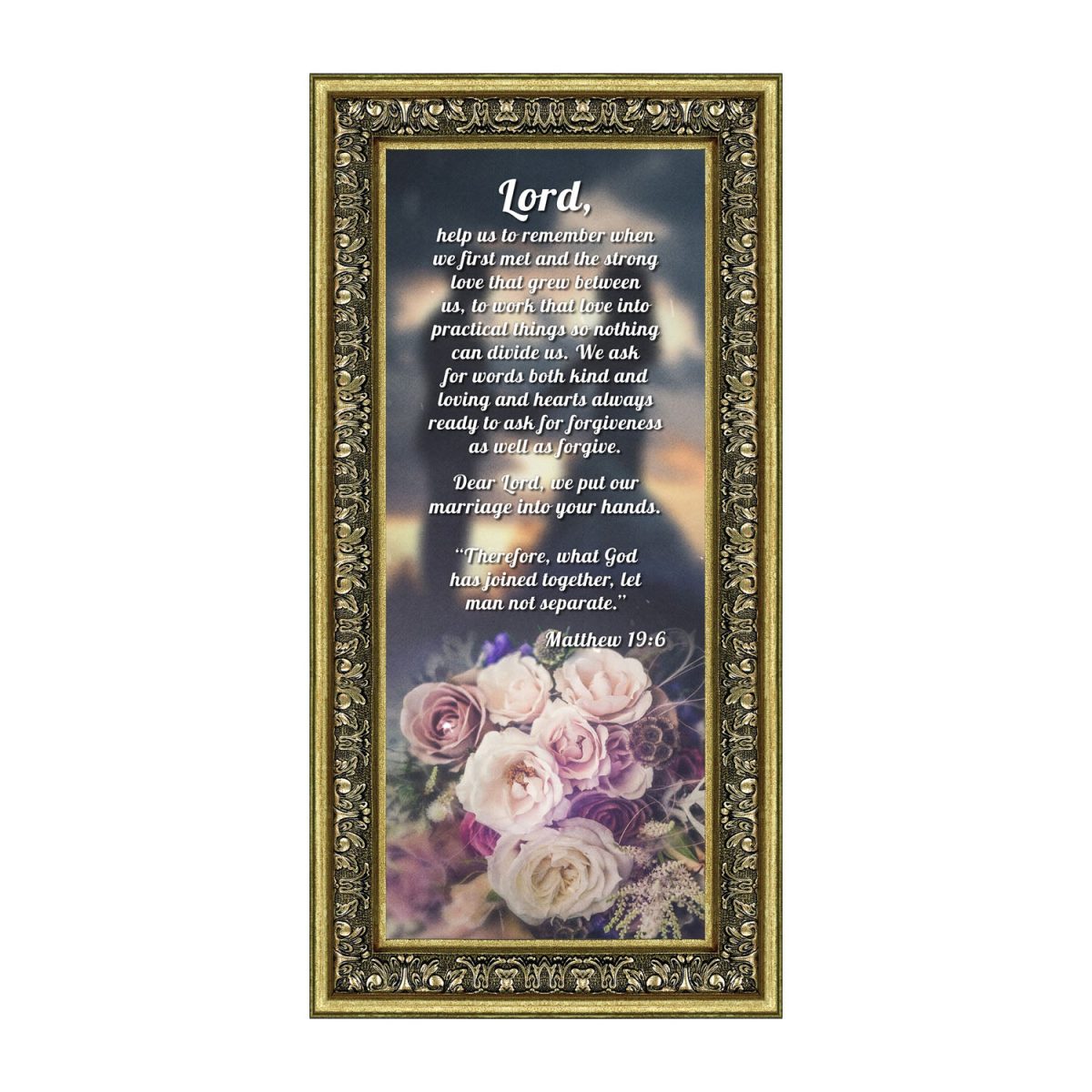 THIS IS A WEDDING GIFT FILLED WITH MEANING and important reminders for any couple. This prayer and Matthew 19:6 scripture will be a daily reminder of the Lord’s blessing upon this marriage. Whether you are looking for a bridal shower gift, an anniversary gift for a special couple or romantic gifts for her, this scripture wall art will show how much you care.