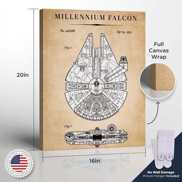 Millennium Falcon Patent Print, Vintage Star Vehicle Prints Wall Art, Vintage Art Wars Canvas Prints, Ready To Hang for Living Room Home Wall Decor, C2155