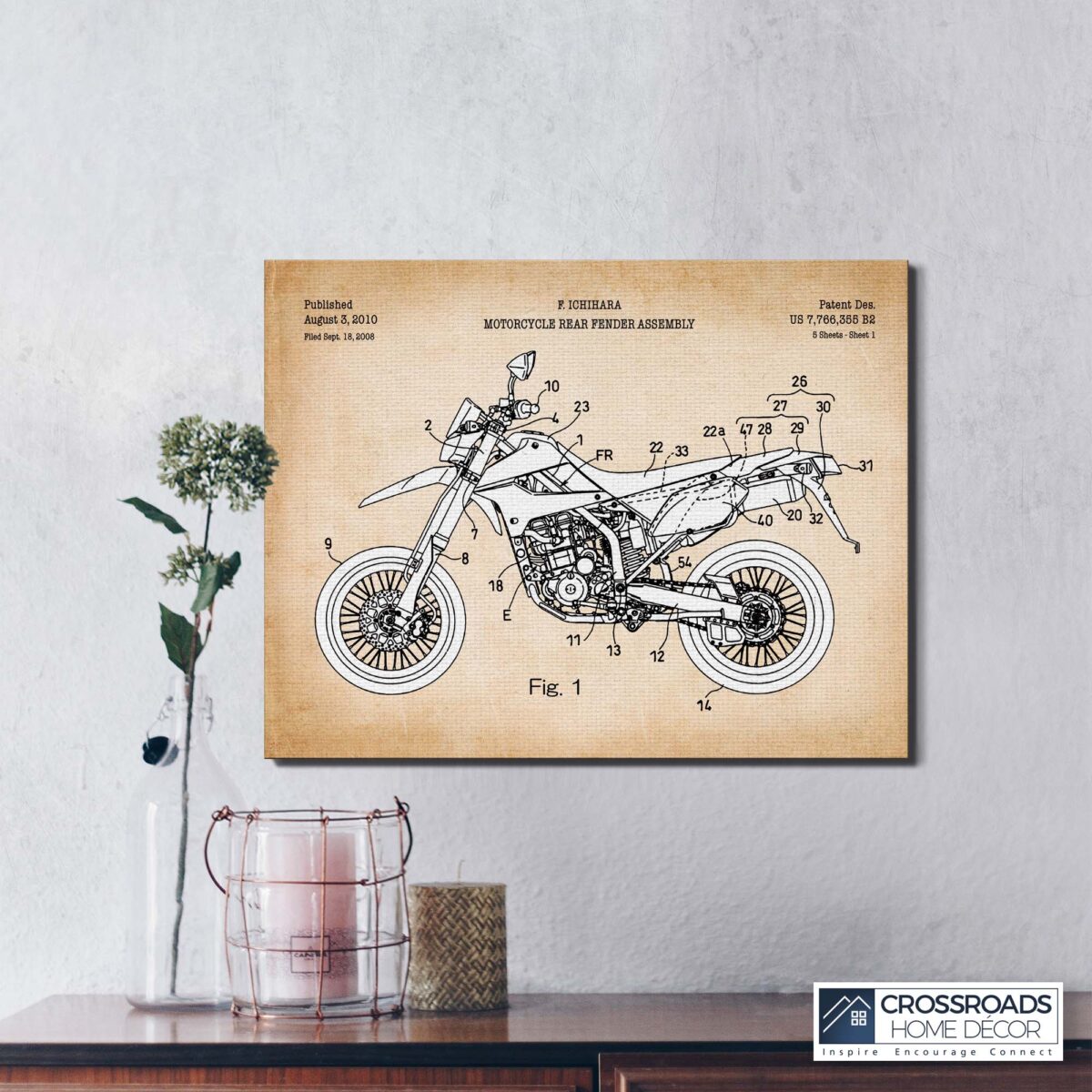 Crossroads Home Décor, Motocross Gifts for Men, Dirt Bike Gifts, Kawasaki Dirt Bike Canvas Patent Print, Ready To Hang for Living Room Home Wall Decor