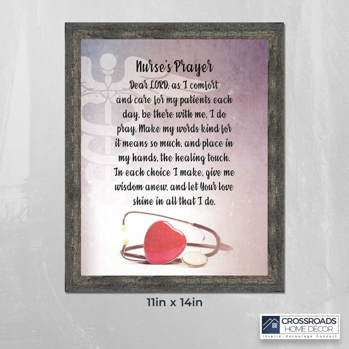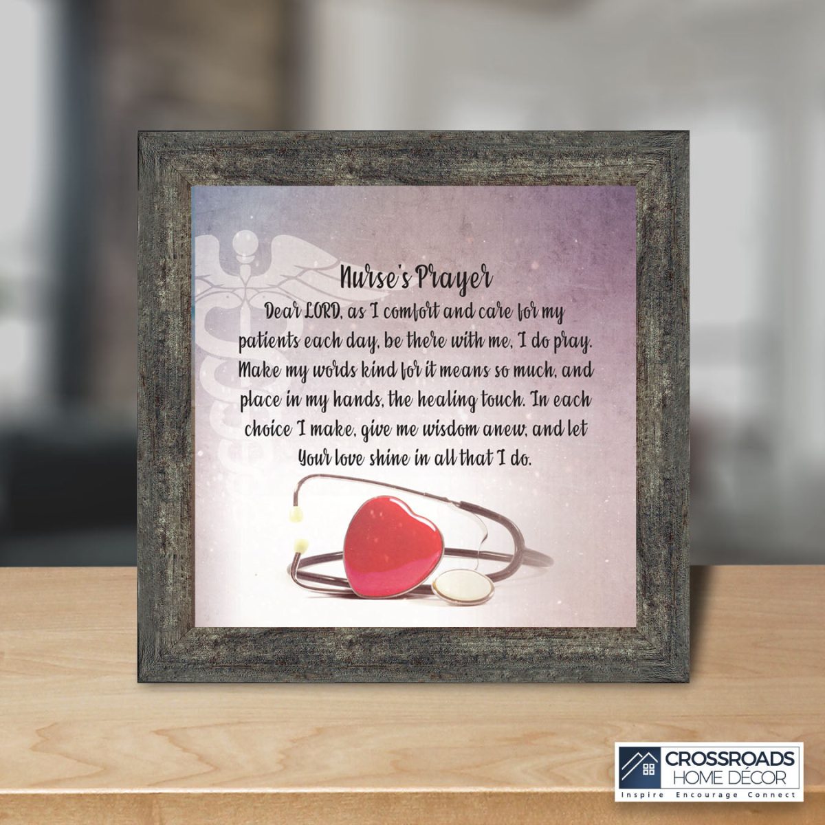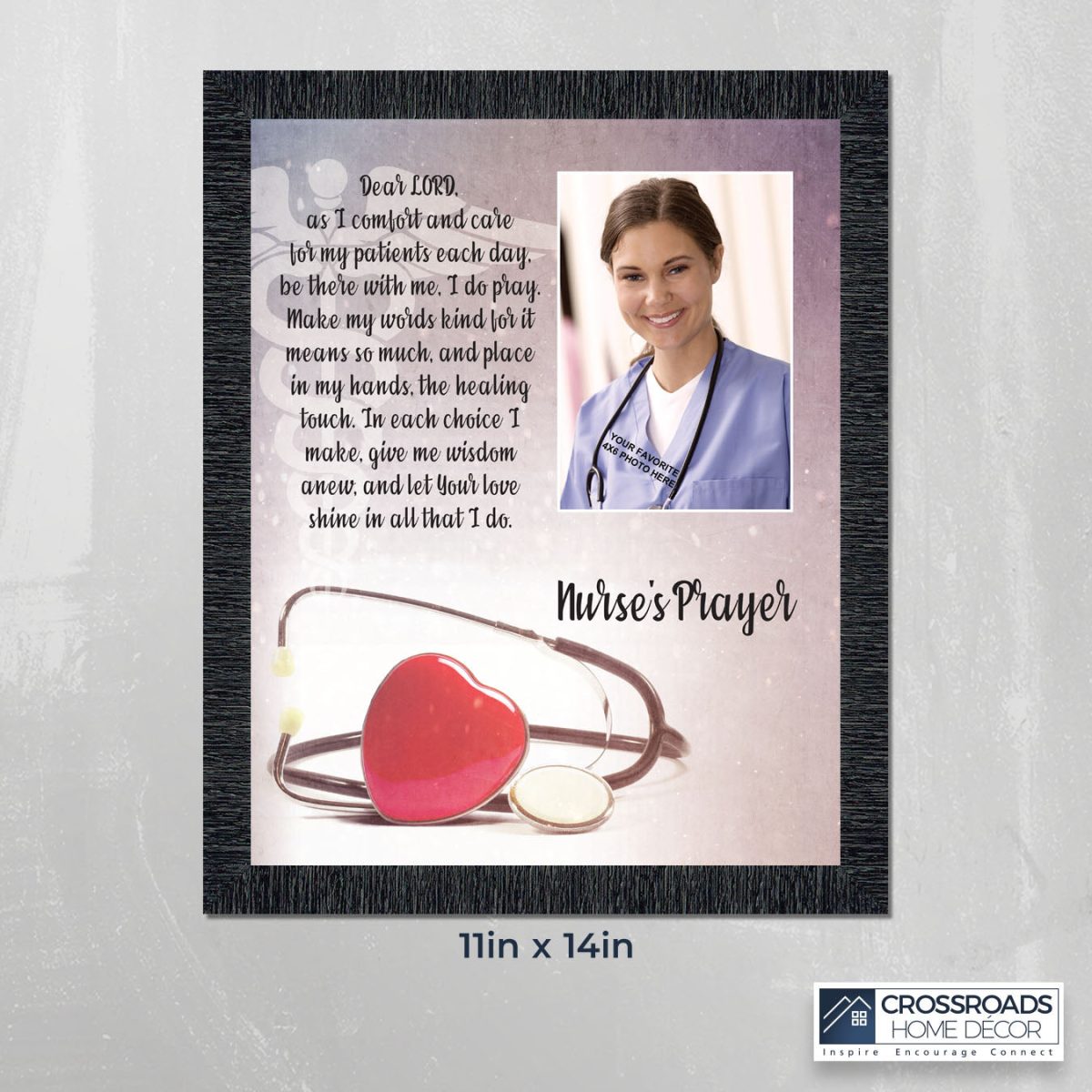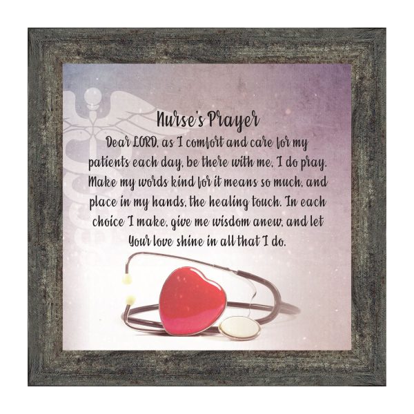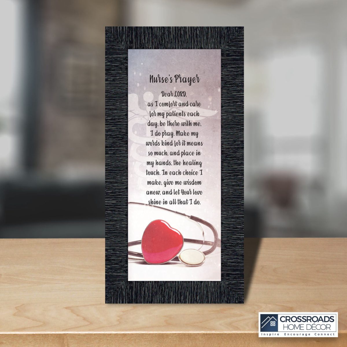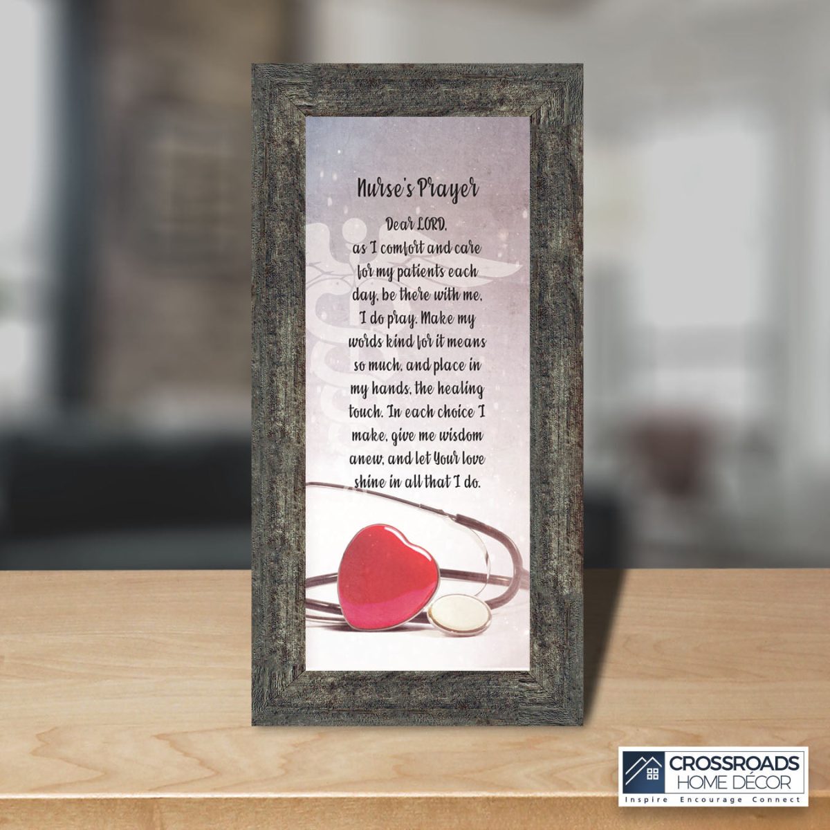 INSPIRATION AND HOPEcan be found in these simple words that ask for the Lord’s guidance on the care and love a nurse gives to their patients. These uplifting words will give purpose and renewed energy to a nurse in any field. Whether the prayer is for an ER nurse, NICU nurse, hospice nurse, school nurse, surgical nurse, or pediatric nurse, this frame will be well received.