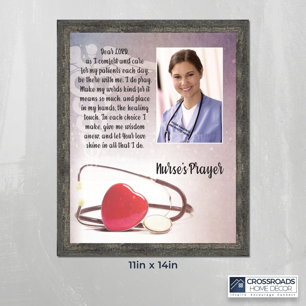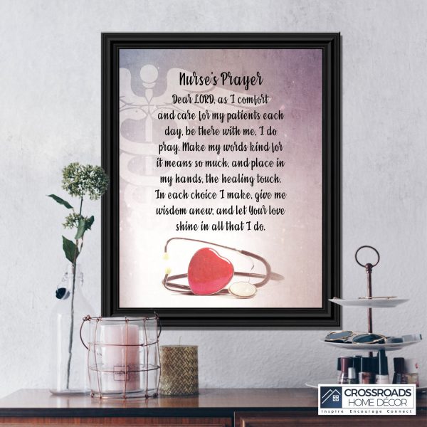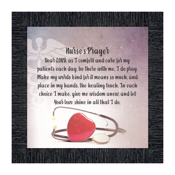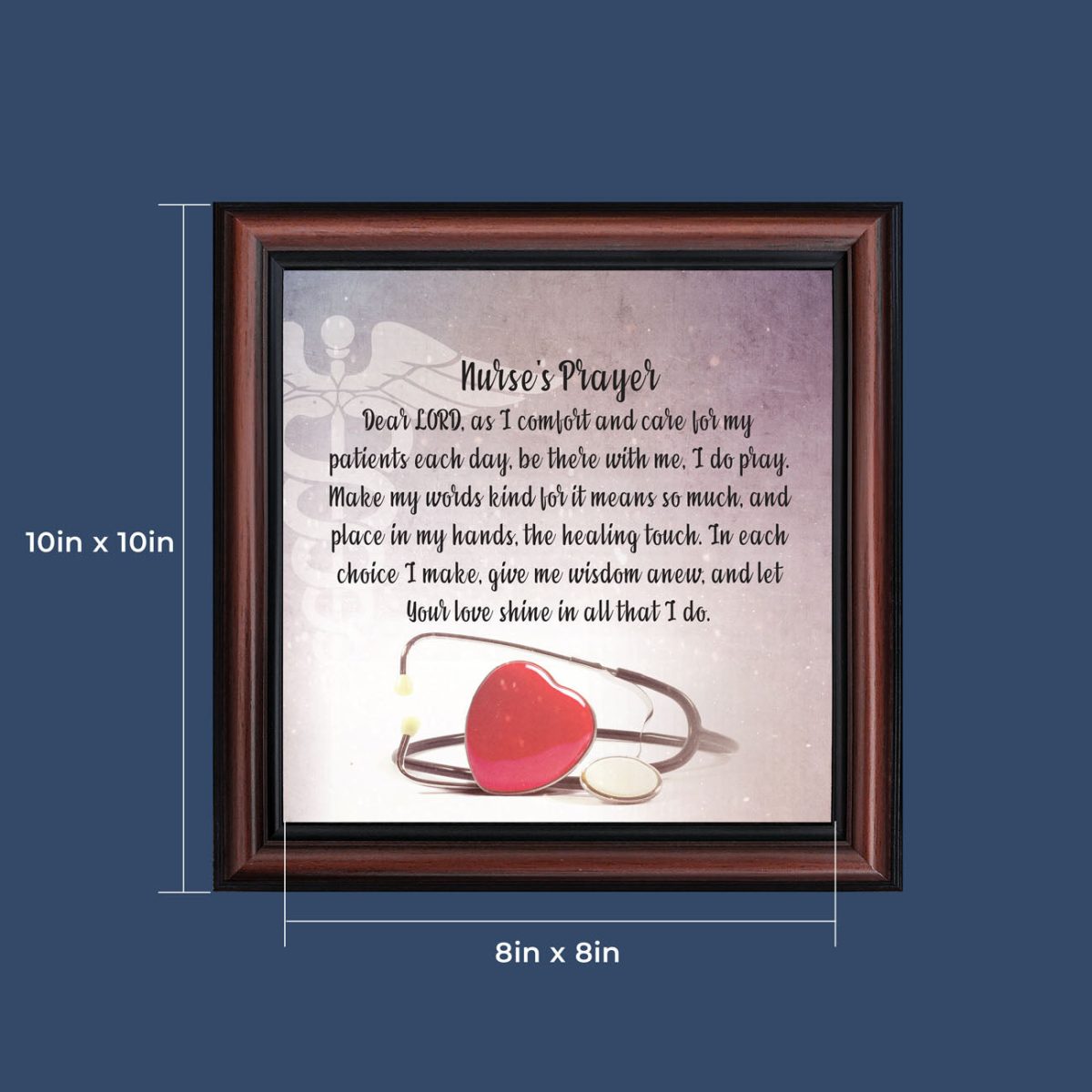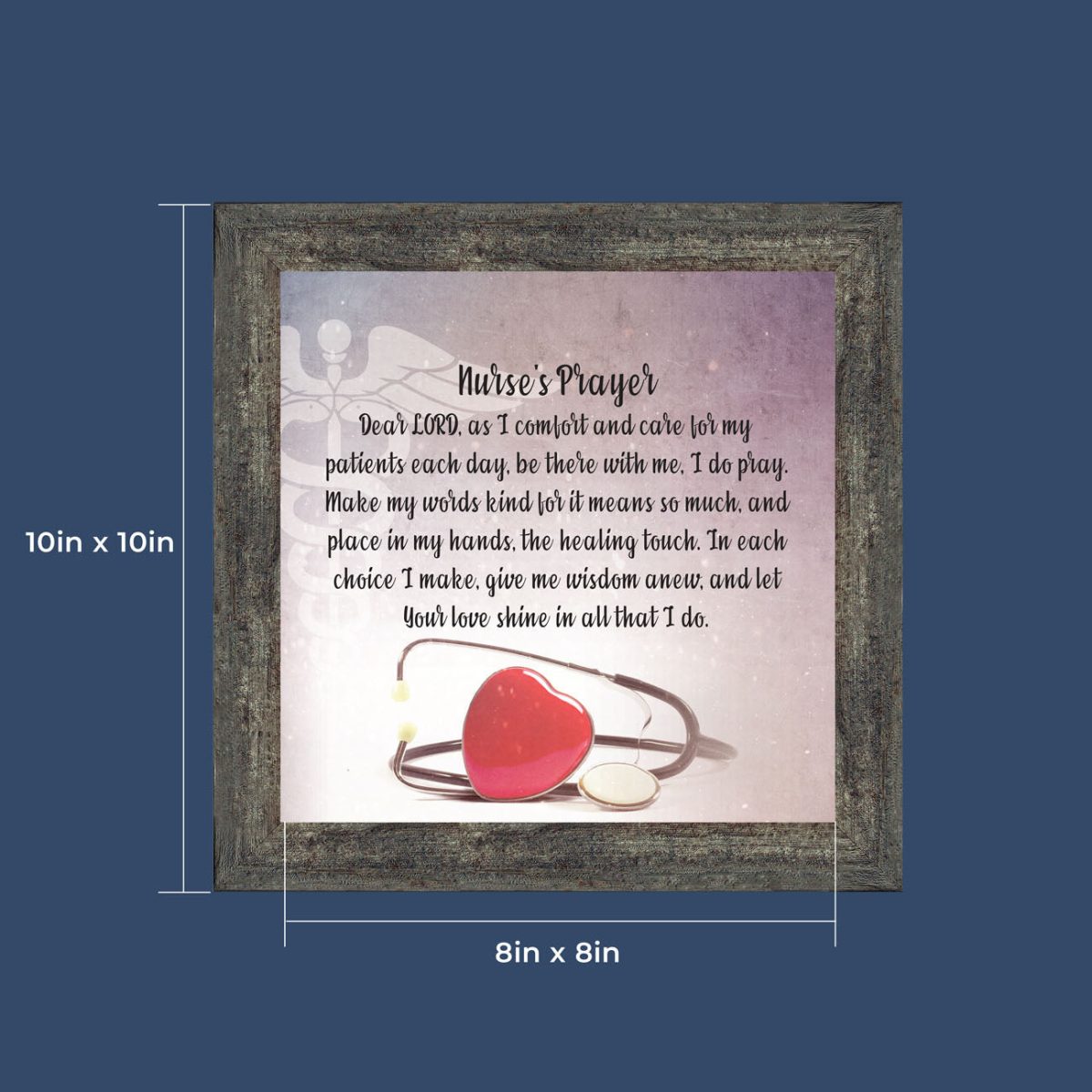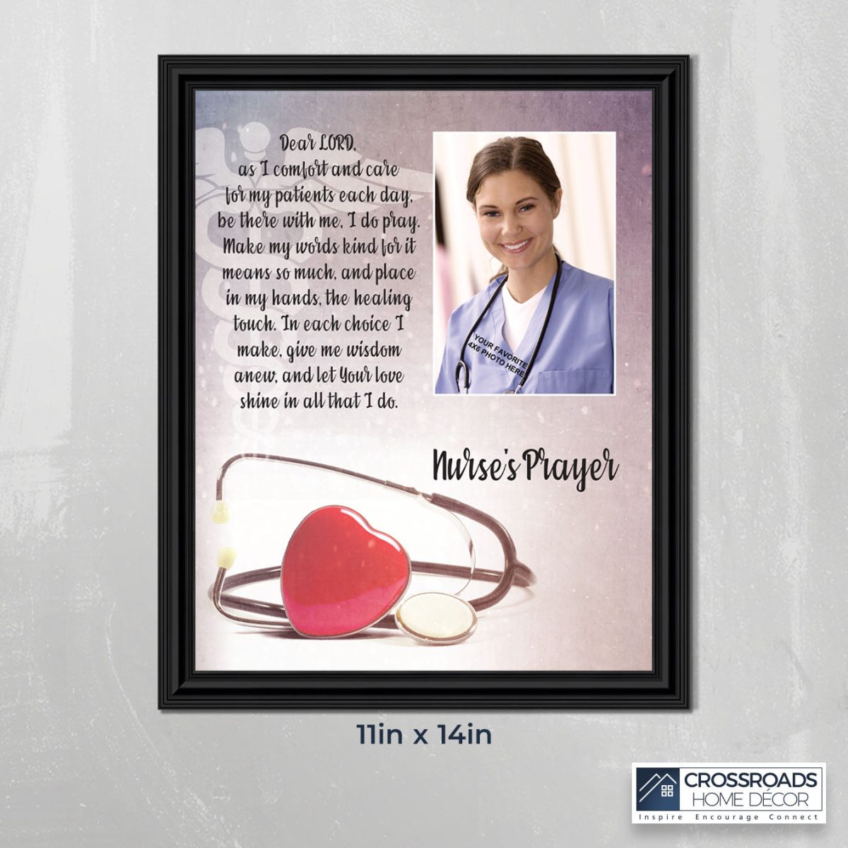 INSPIRATION AND HOPEcan be found in these simple words that ask for the Lord’s guidance on the care and love a nurse gives to their patients. These uplifting words will give purpose and renewed energy to a nurse in any field. Whether the prayer is for an ER nurse, NICU nurse, hospice nurse, school nurse, surgical nurse, or pediatric nurse, this frame will be well received.