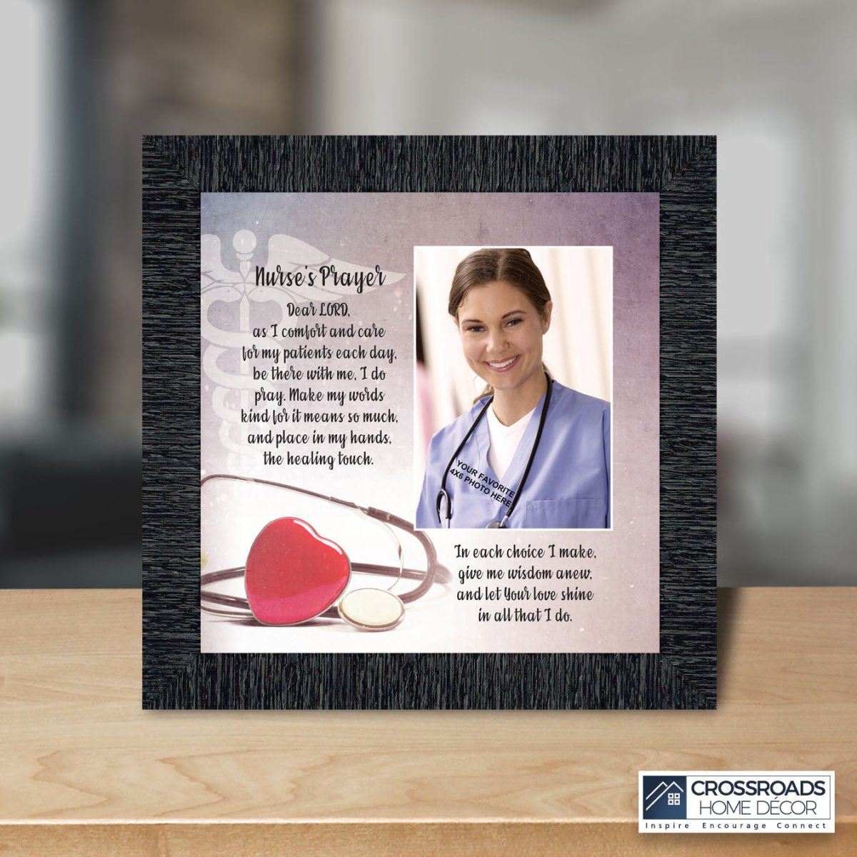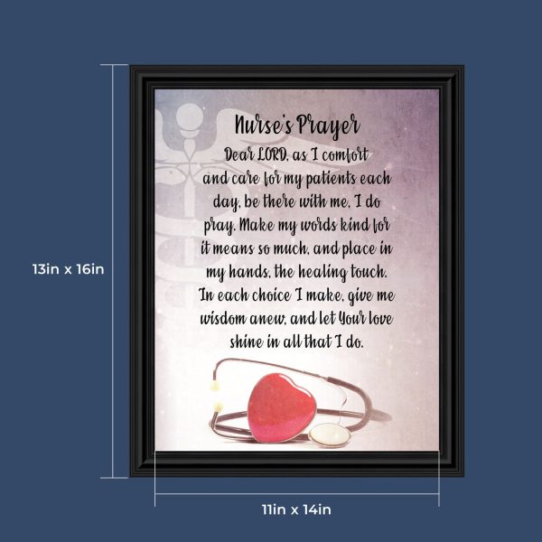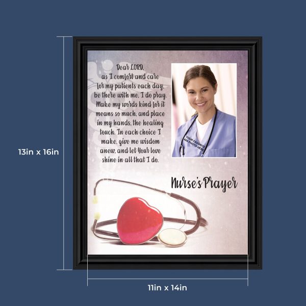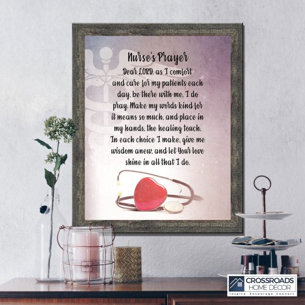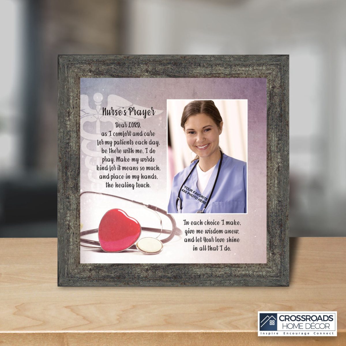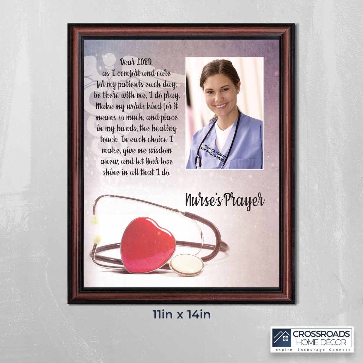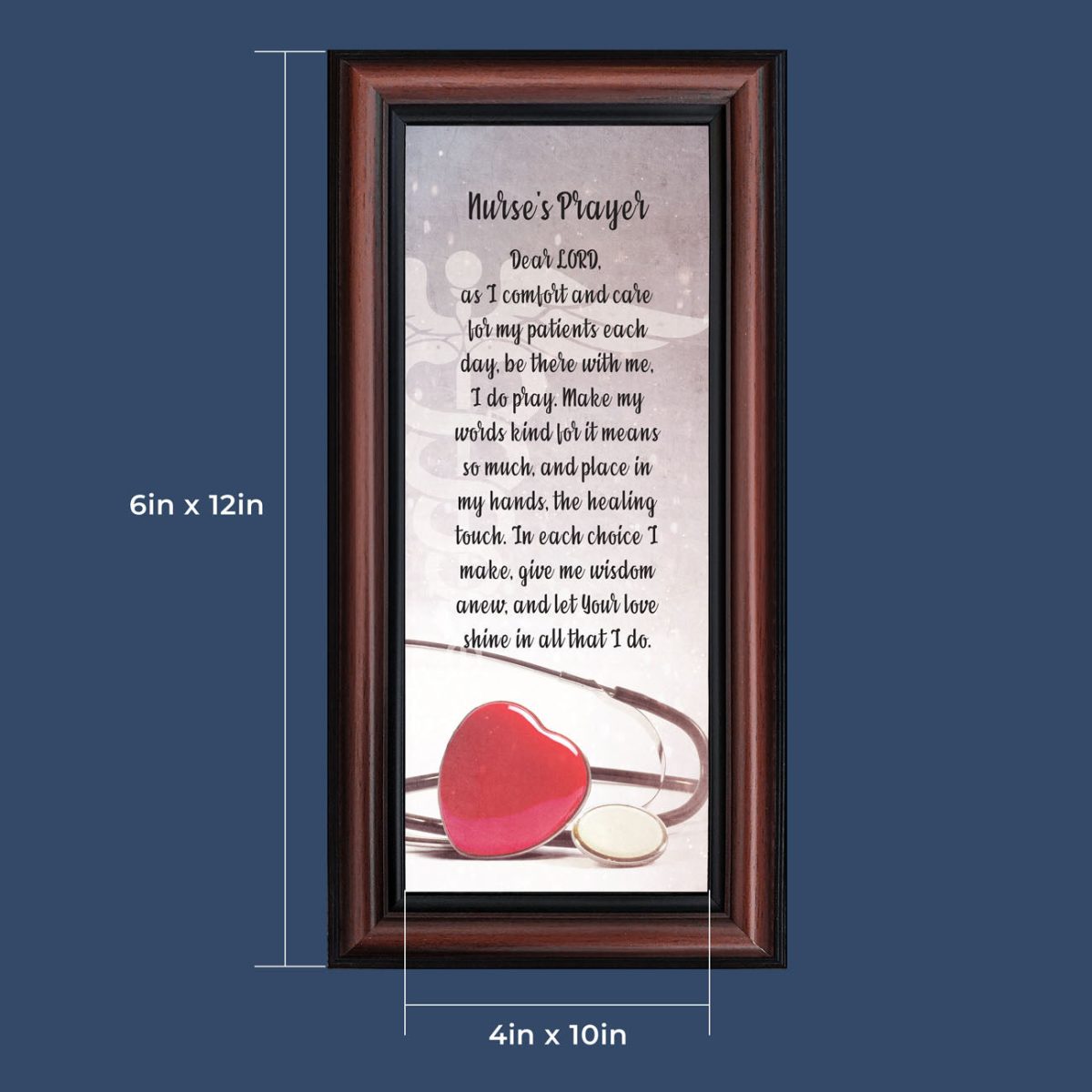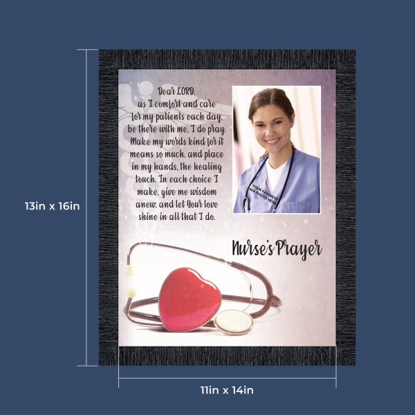 INSPIRATION AND HOPEcan be found in these simple words that ask for the Lord’s guidance on the care and love a nurse gives to their patients. These uplifting words will give purpose and renewed energy to a nurse in any field. Whether the prayer is for an ER nurse, NICU nurse, hospice nurse, school nurse, surgical nurse, or pediatric nurse, this frame will be well received.
