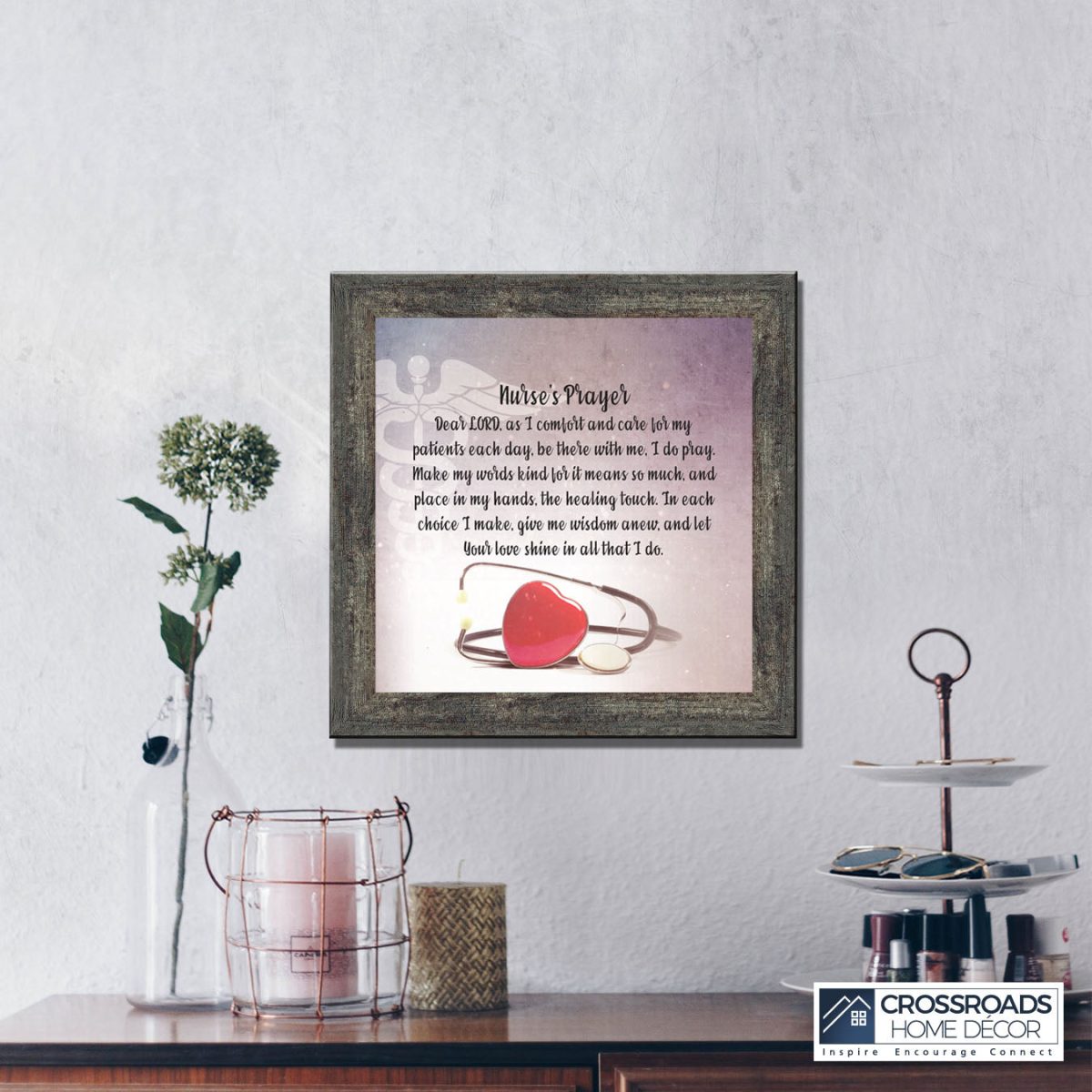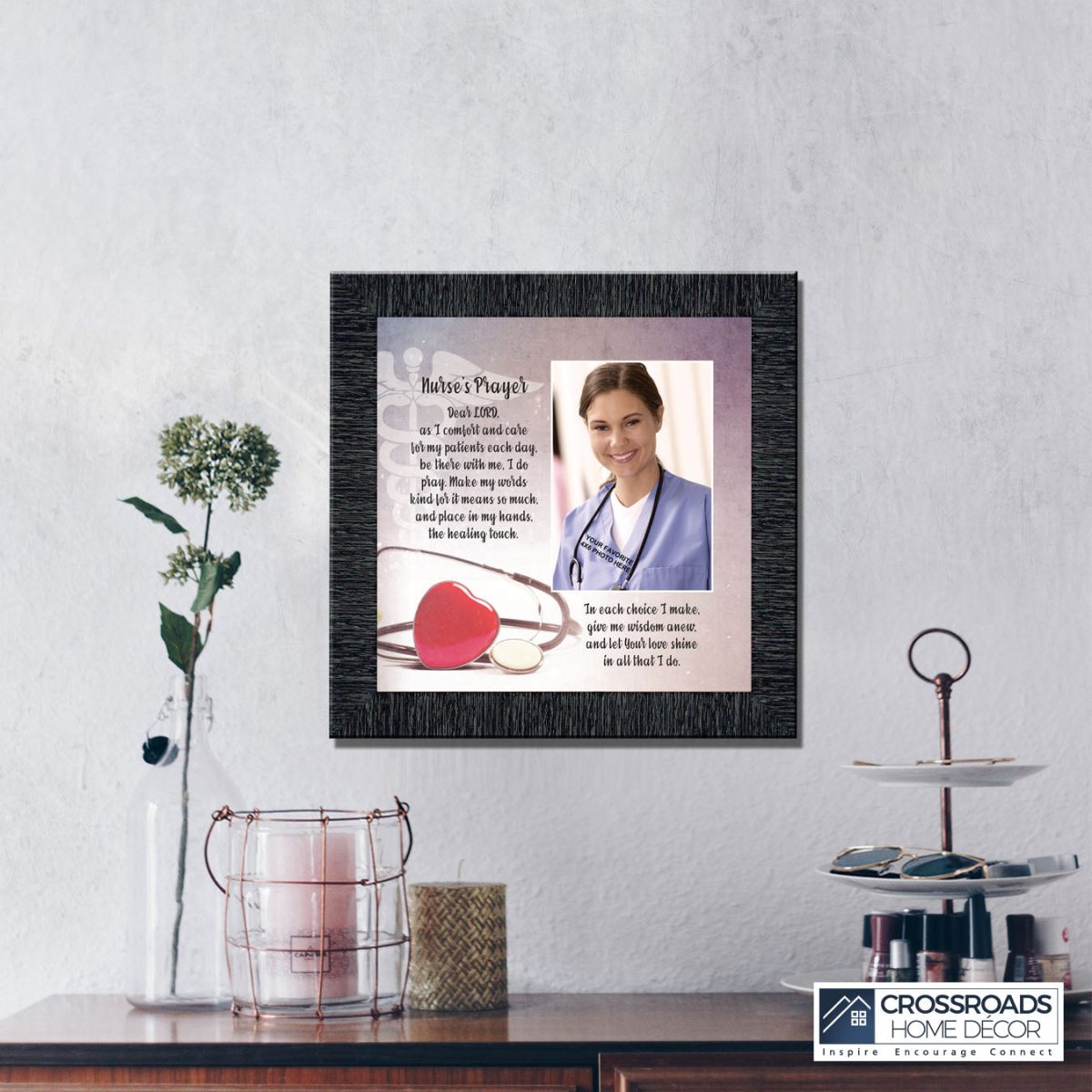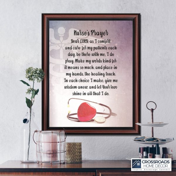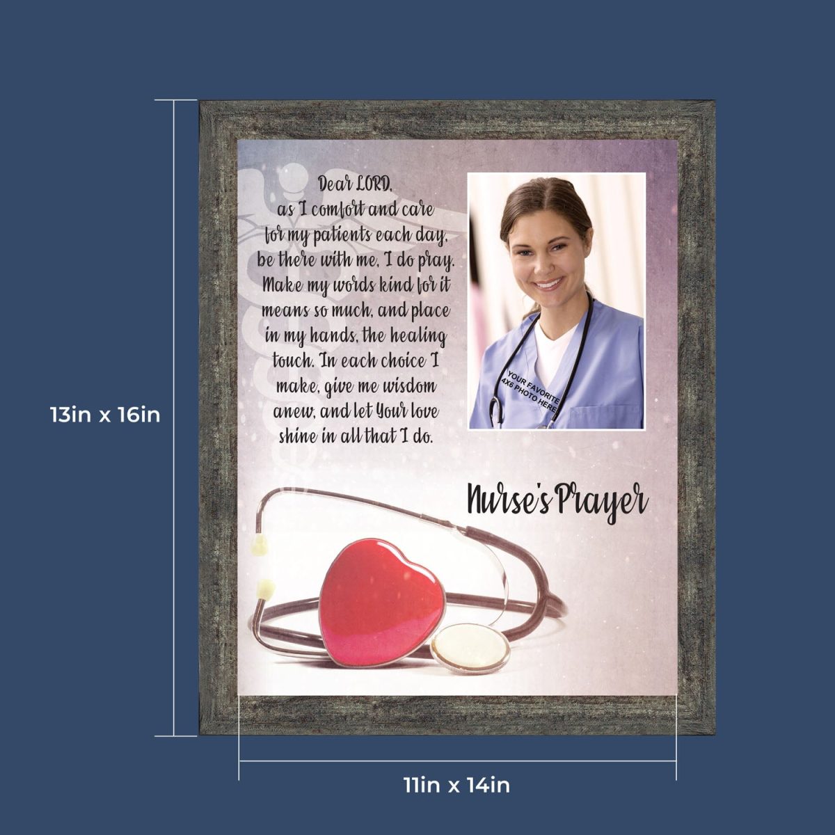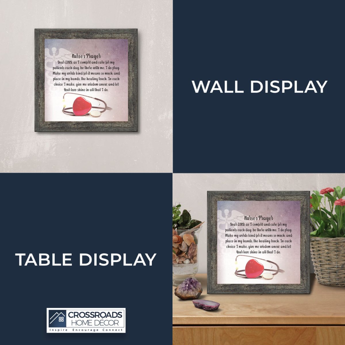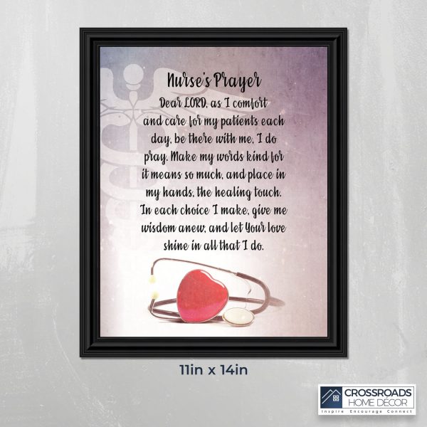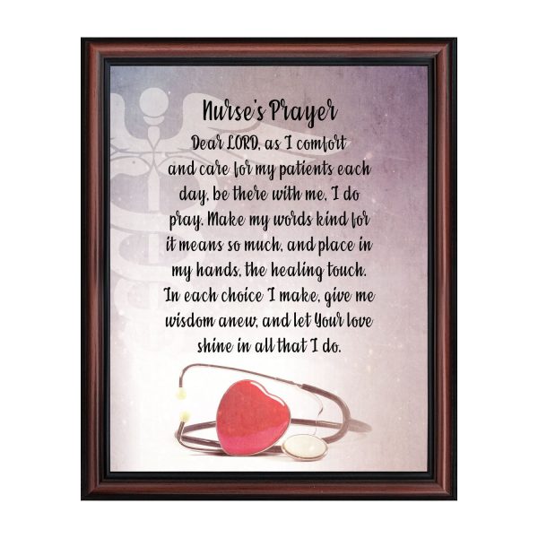 INSPIRATION AND HOPEcan be found in these simple words that ask for the Lord’s guidance on the care and love a nurse gives to their patients. These uplifting words will give purpose and renewed energy to a nurse in any field. Whether the prayer is for an ER nurse, NICU nurse, hospice nurse, school nurse, surgical nurse, or pediatric nurse, this frame will be well received.