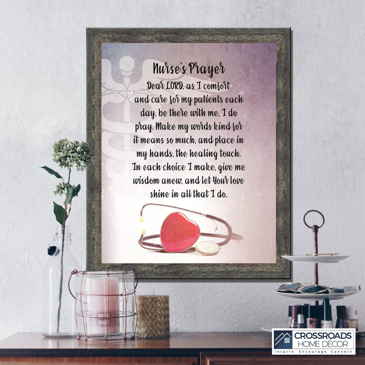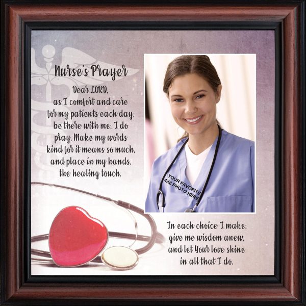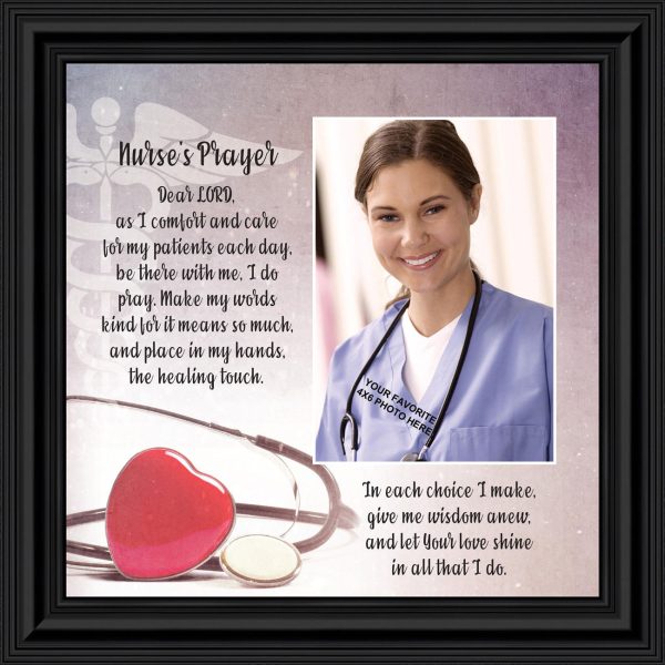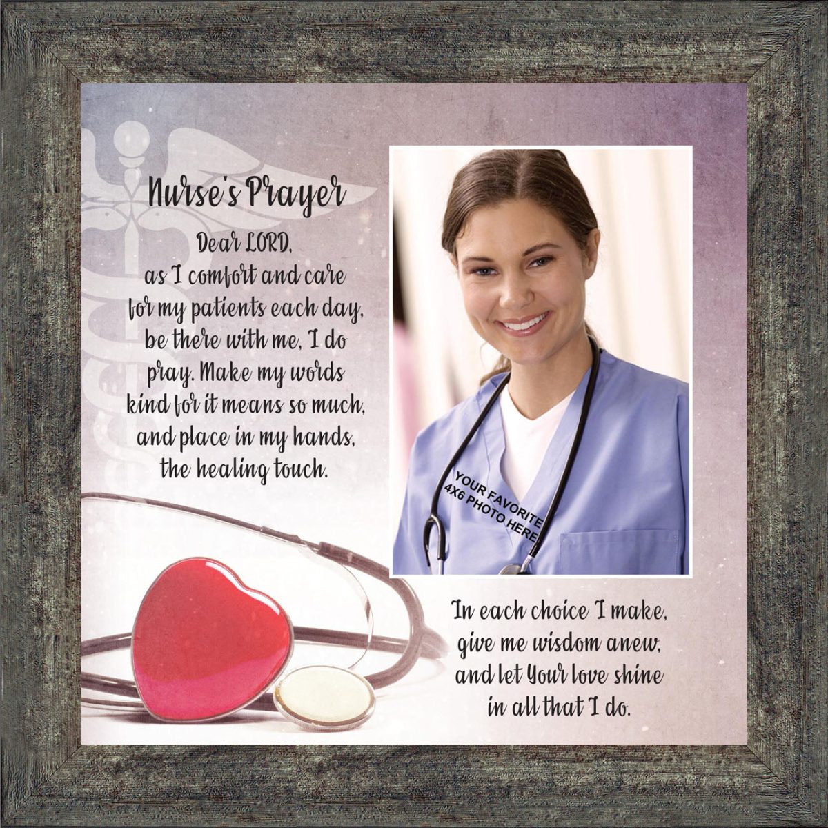 A NURSES PRAYERframed poem is a unique and meaningful gift for the nursing student or to celebrate nursing school graduation. Use as part of your nursing graduation party decorations and then enjoy for years to come to remember the occasion. Also, use the frame to celebrate the time-honored Nursing Pinning Ceremony that welcomes nursing students into the profession.
