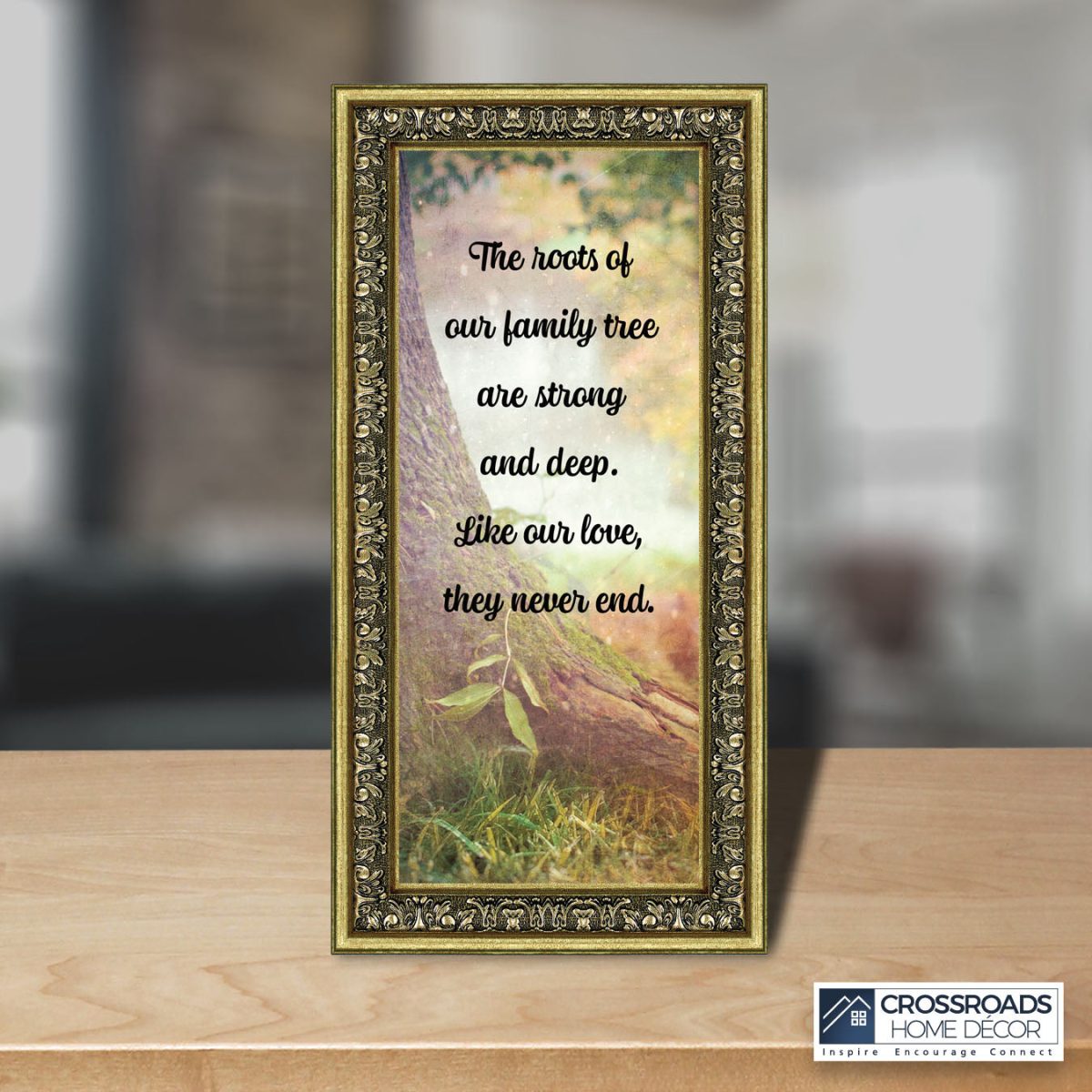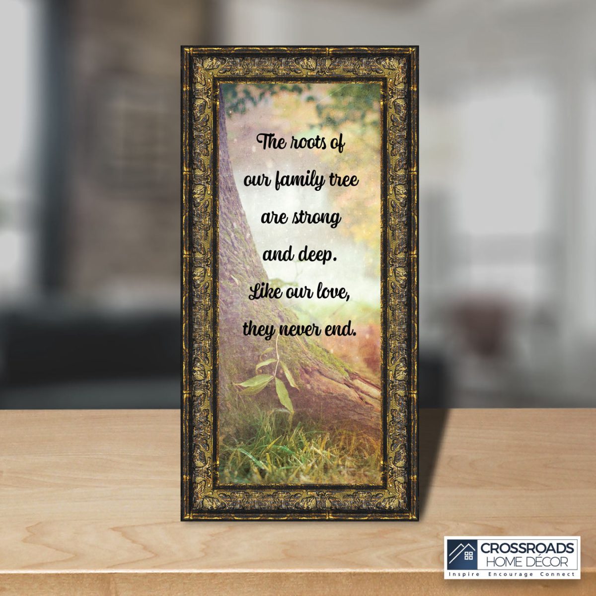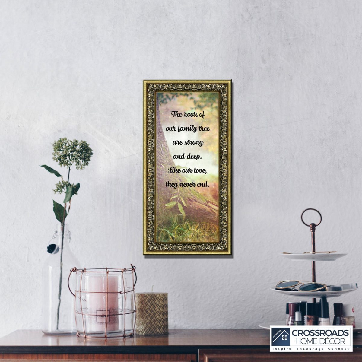 - Picture framed quote on the love and strength of a family. The frame will add richness to your home decor that focuses on family.
