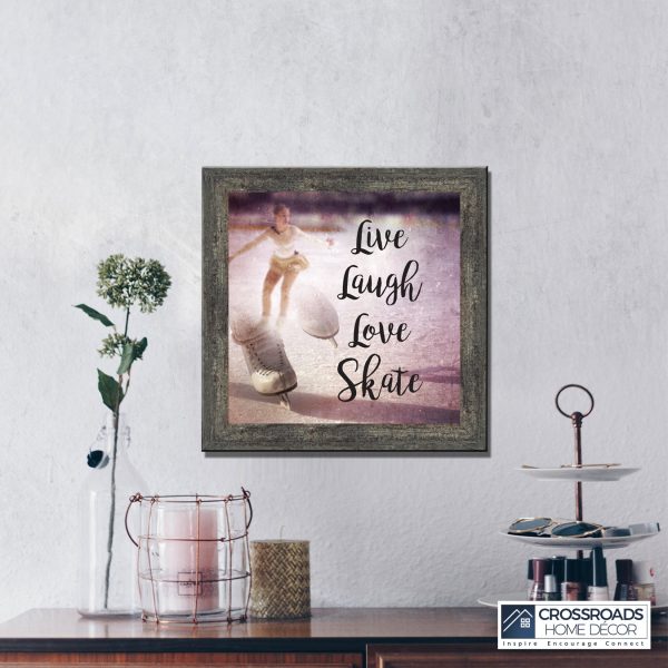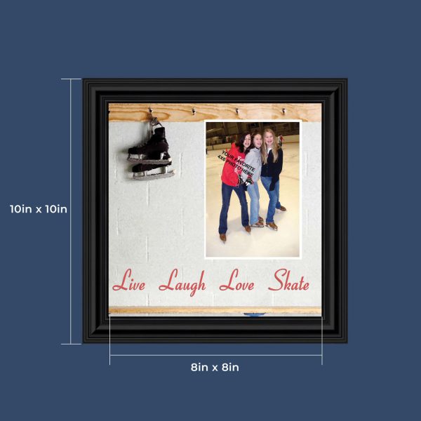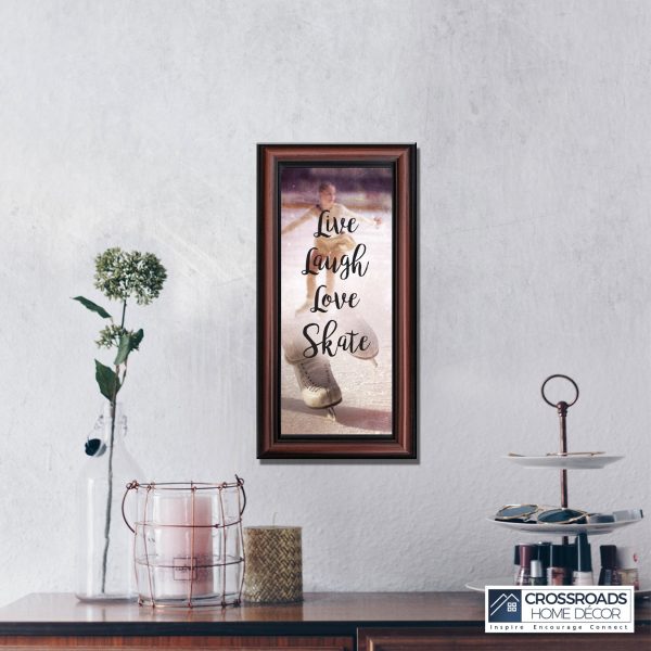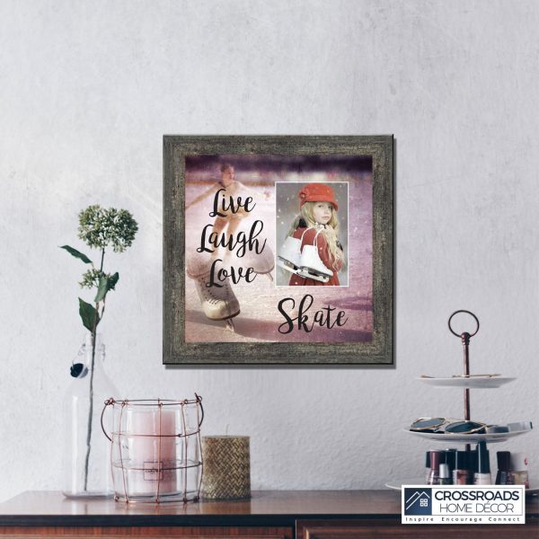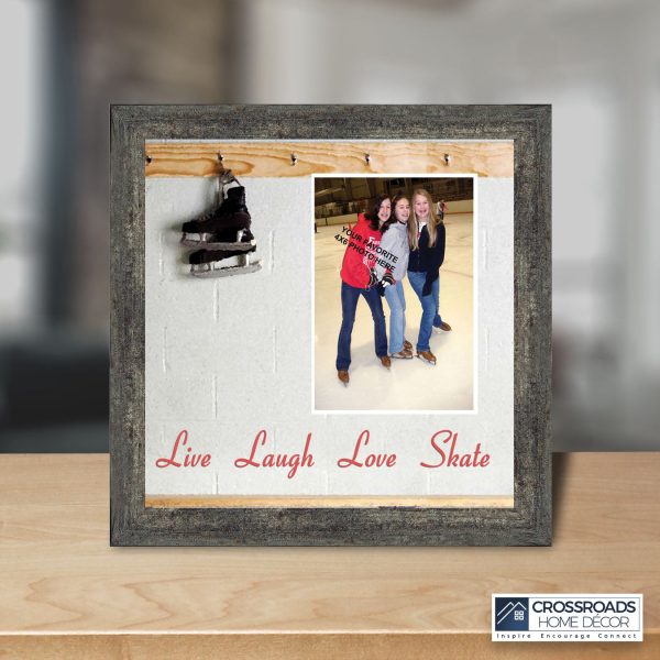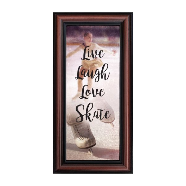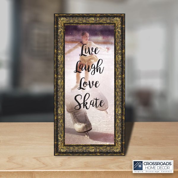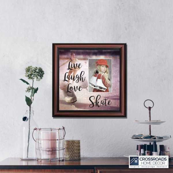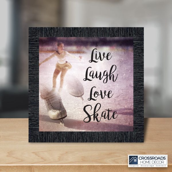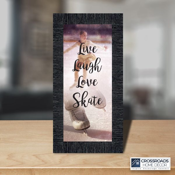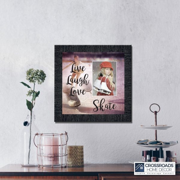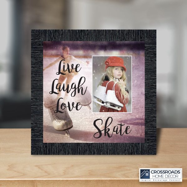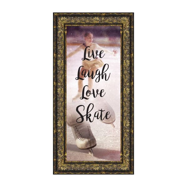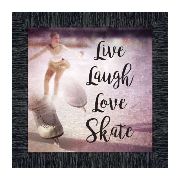 - Picture framed ice skating themed photo with the quote “Live, Laugh, Love. Skate”.