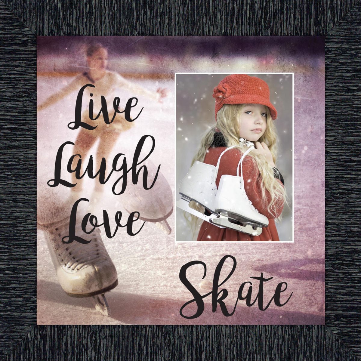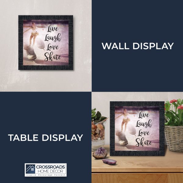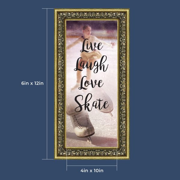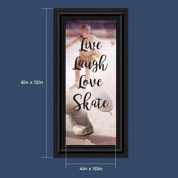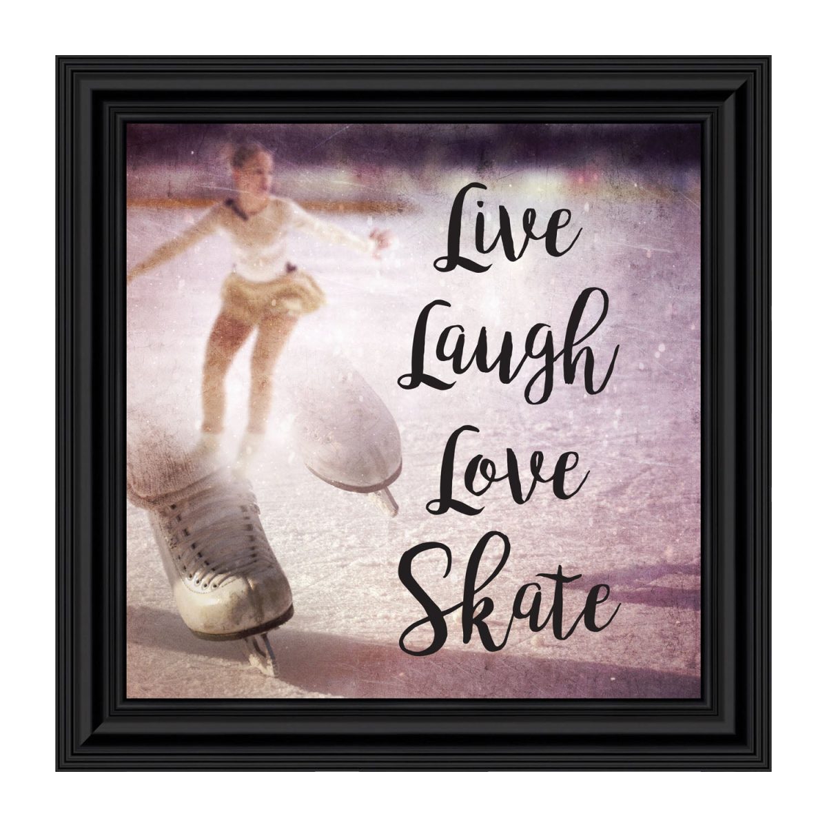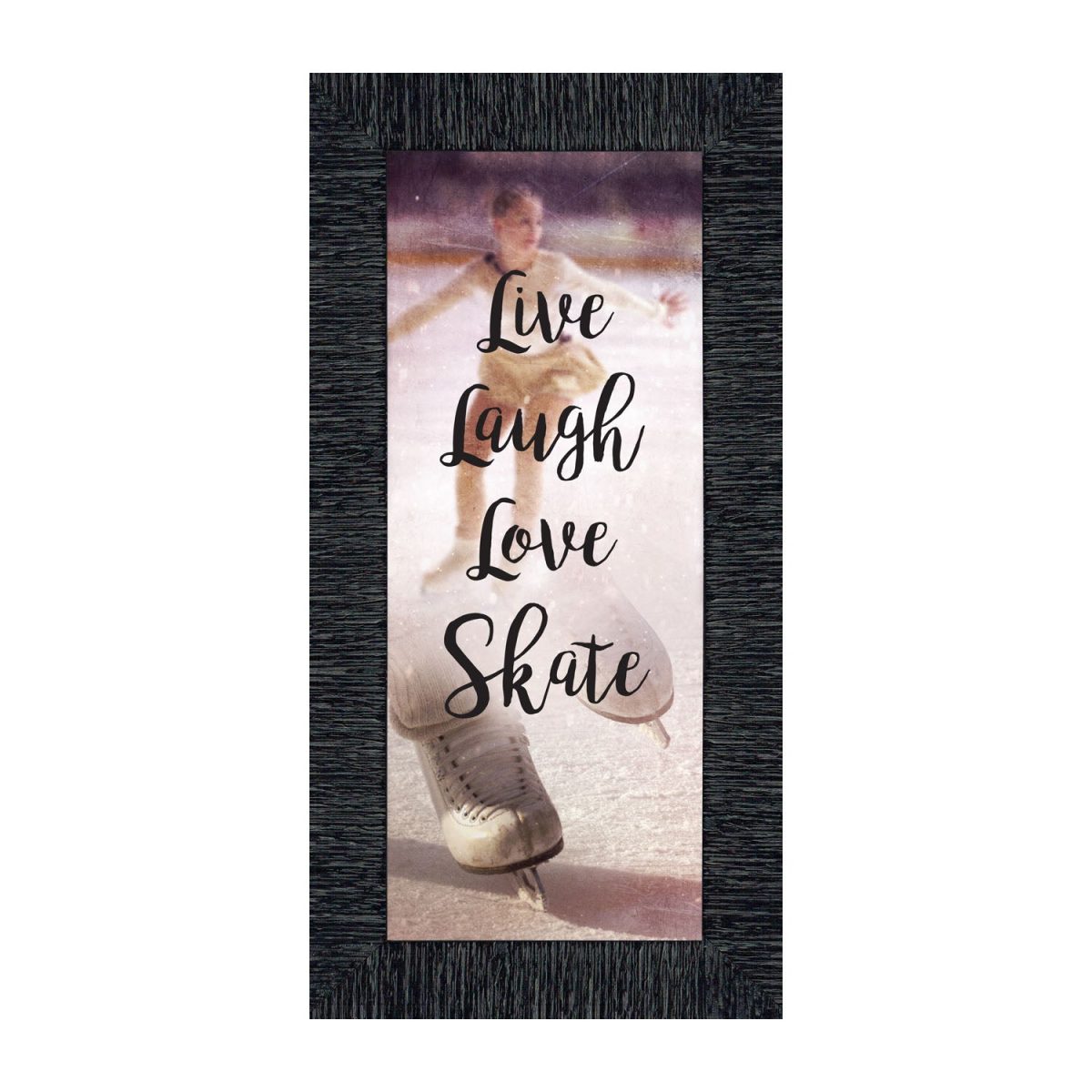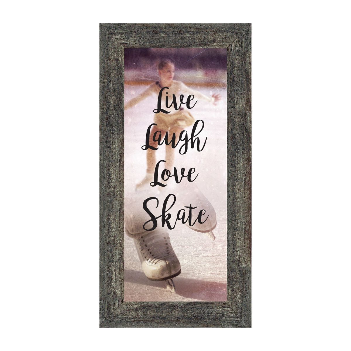 - Picture framed ice skating themed photo with the quote “Live, Laugh, Love. Skate”.