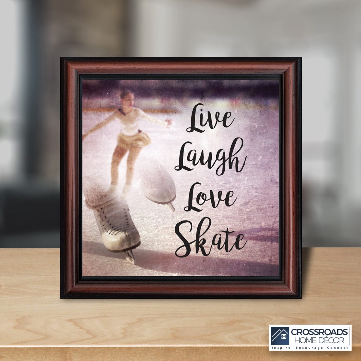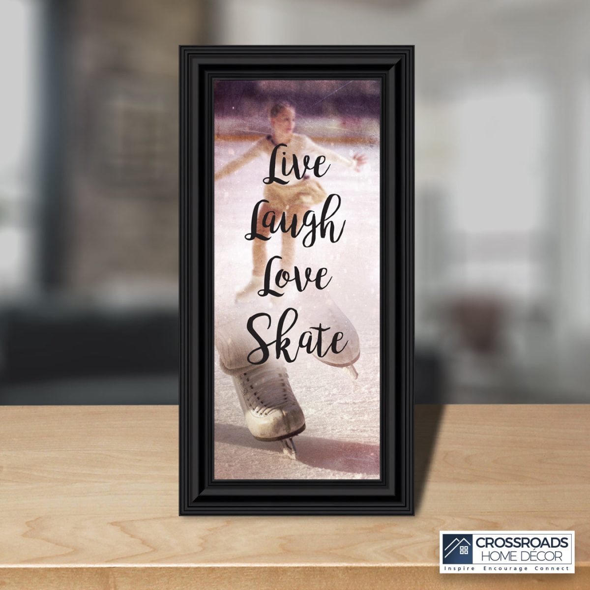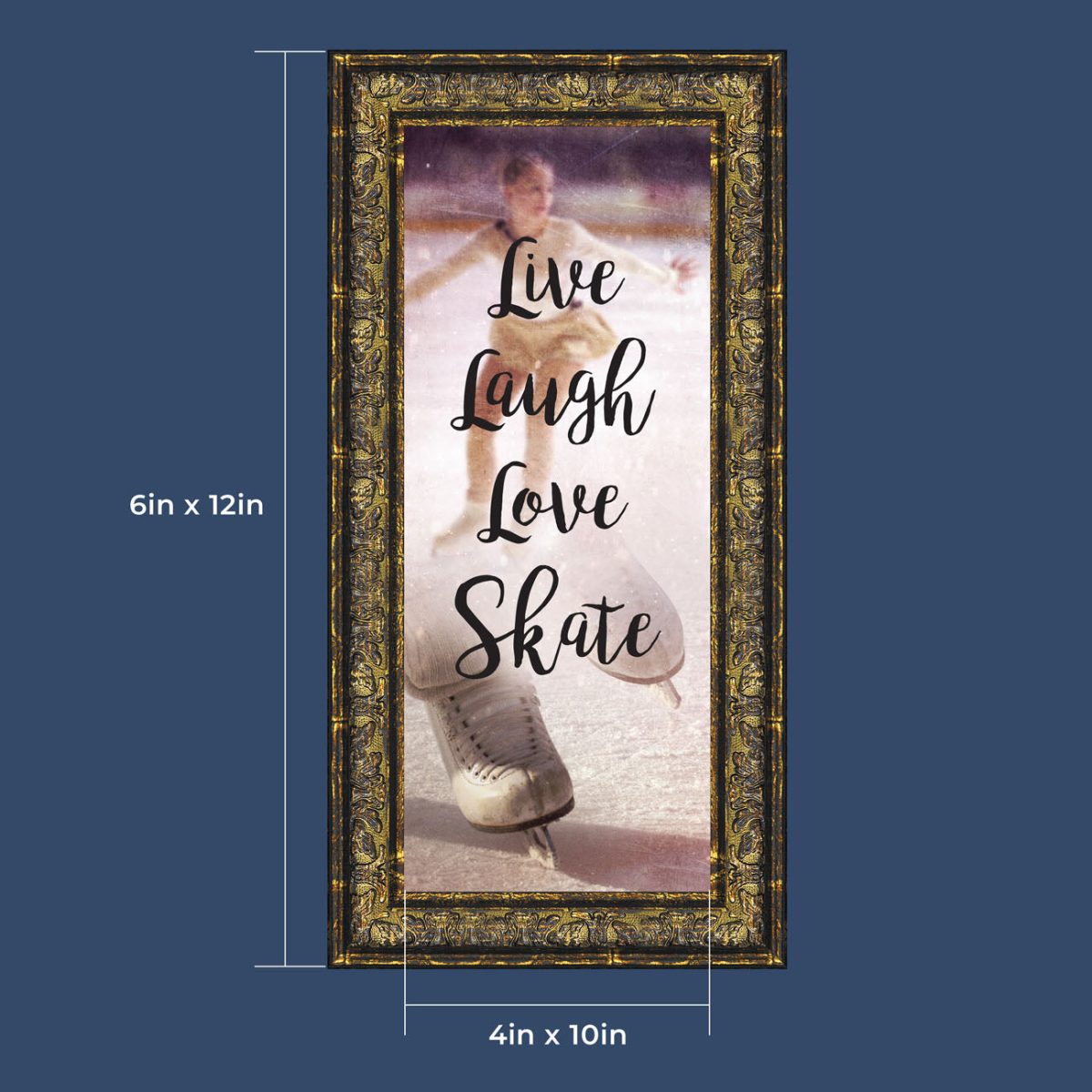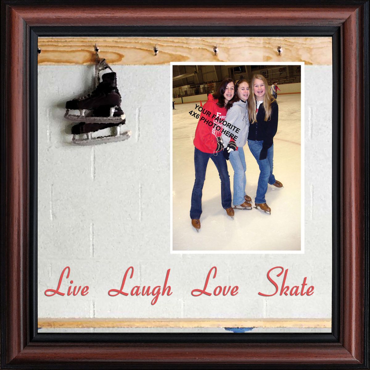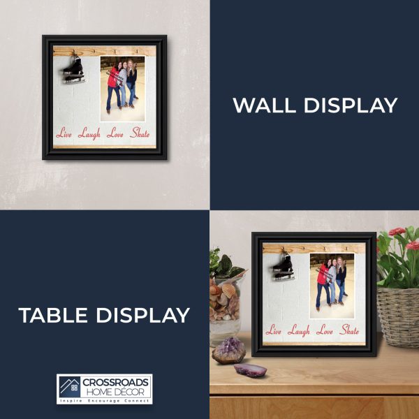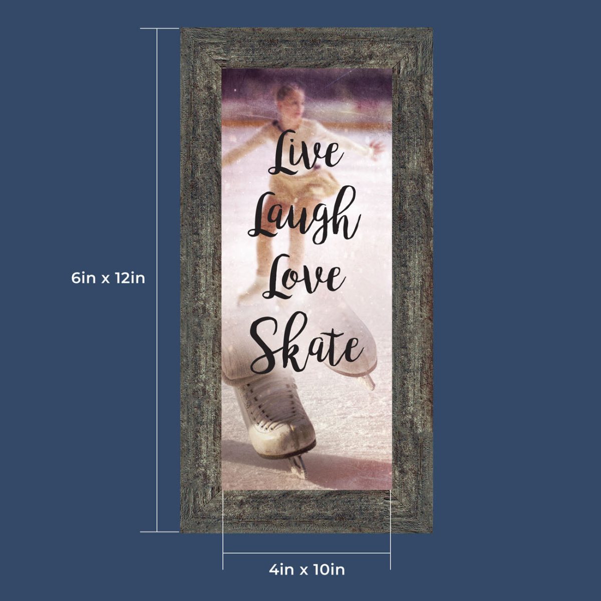 - Picture framed ice skating themed photo with the quote “Live, Laugh, Love. Skate”.