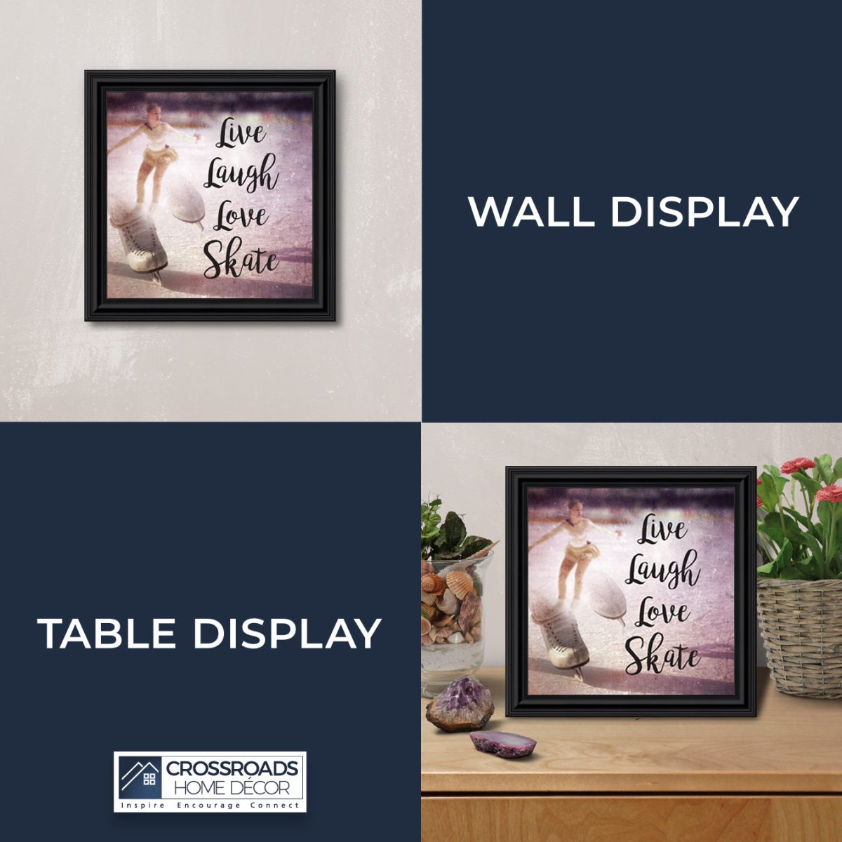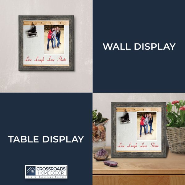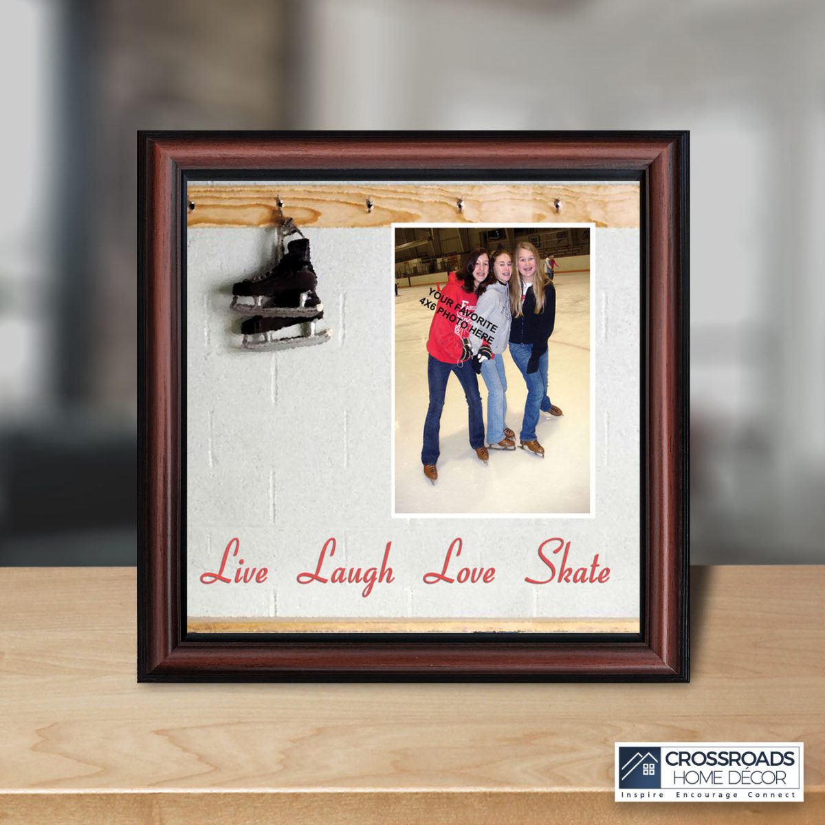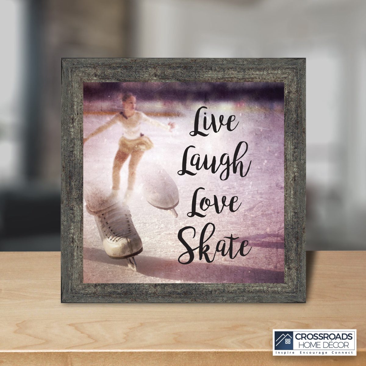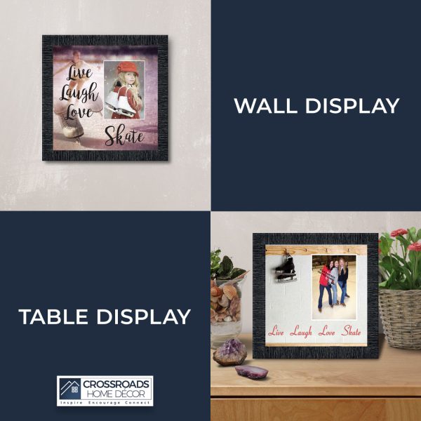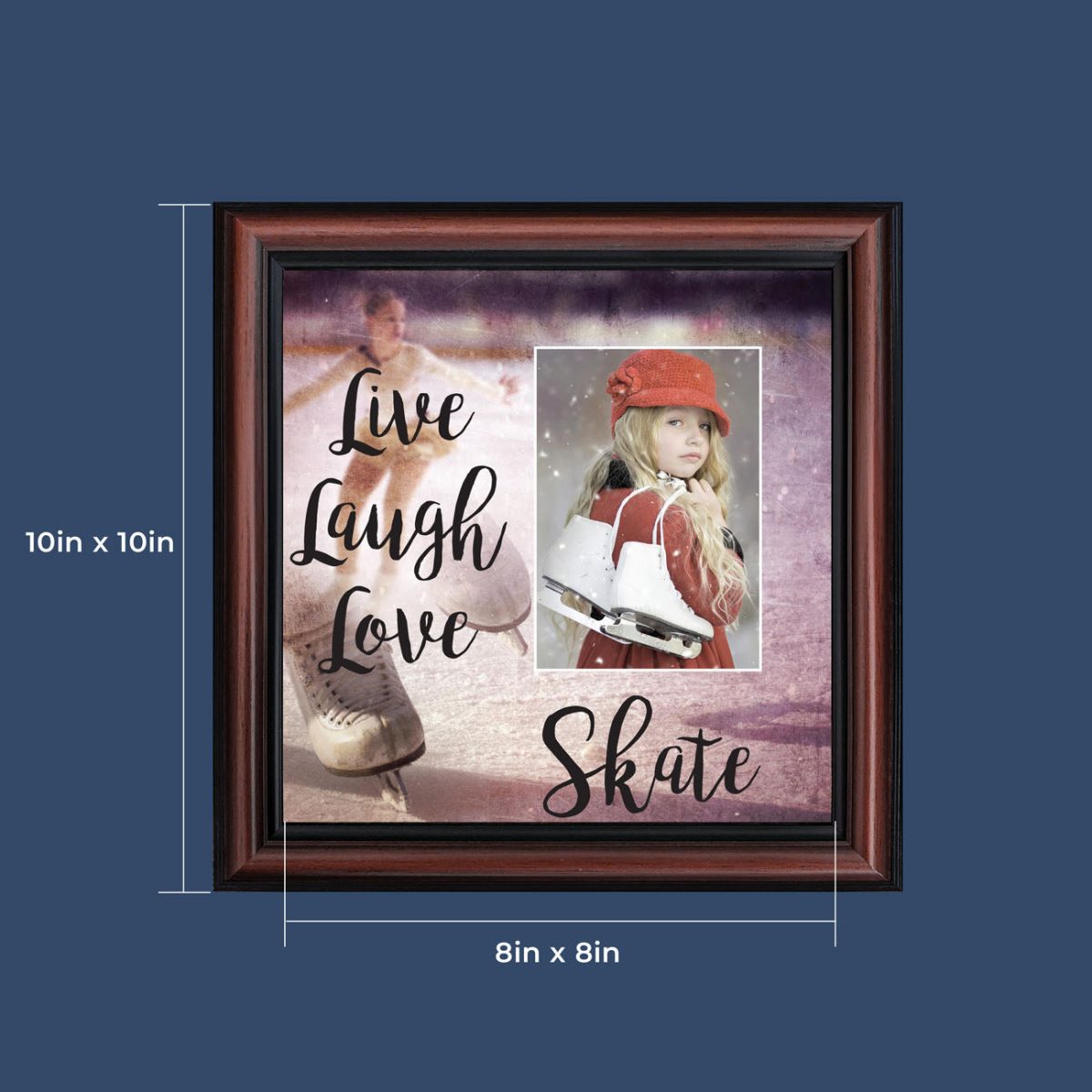 - Picture framed ice skating themed photo with the quote “Live, Laugh, Love. Skate”.