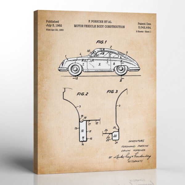 Porsche Wall Art, Porshe Patent Canvas Print, Ready To Hang for Living Room Home Wall Decor, C2507