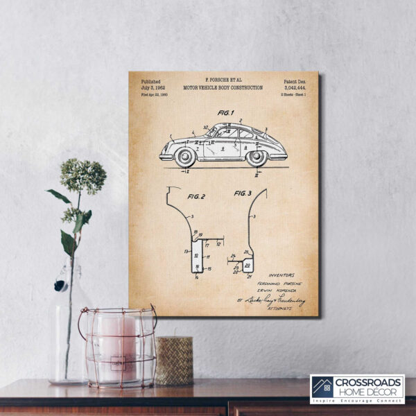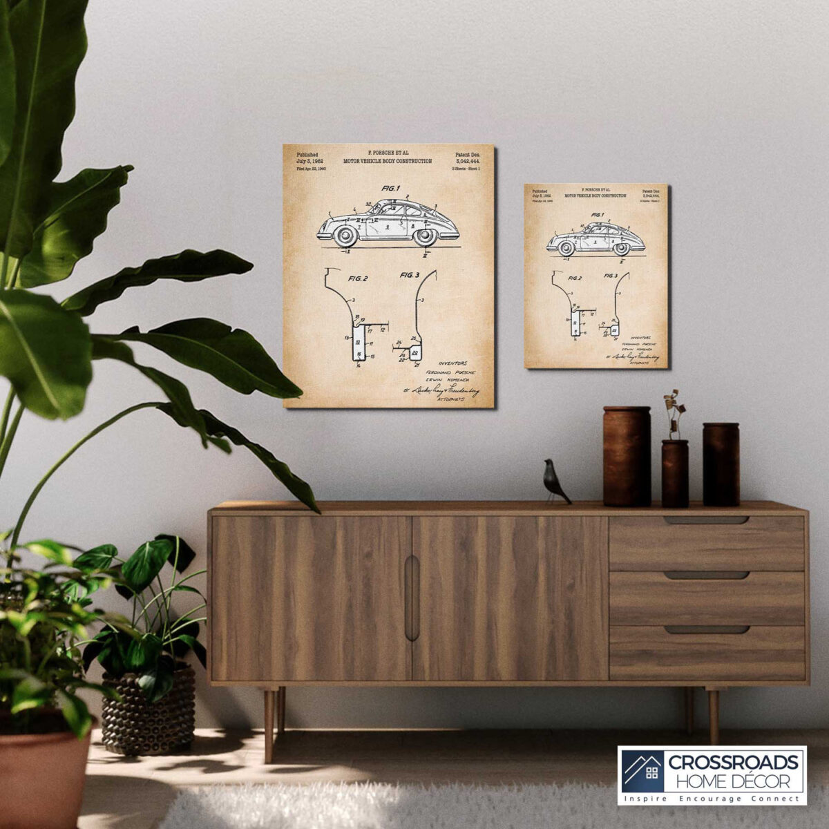 Crossroads Home Décor, Porsche Wall Art, Porshe Patent Canvas Print, Ready To Hang for Living Room Home Wall Decor