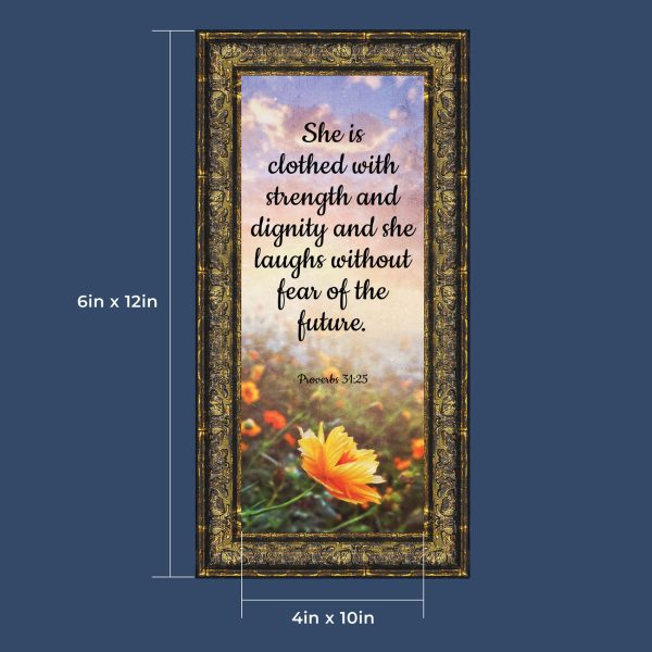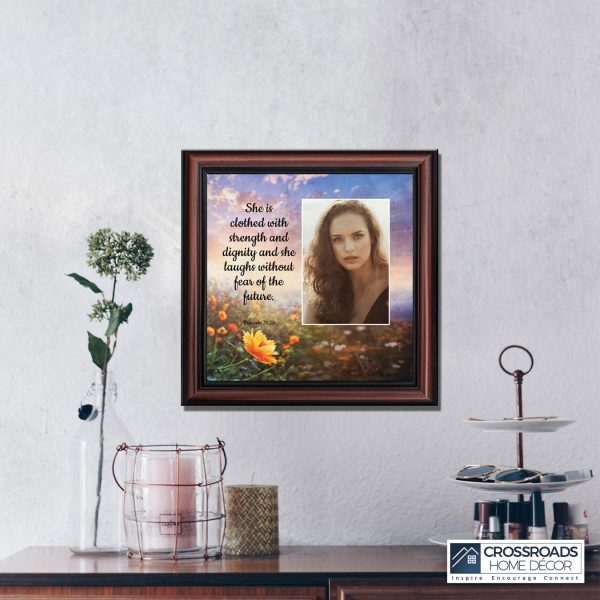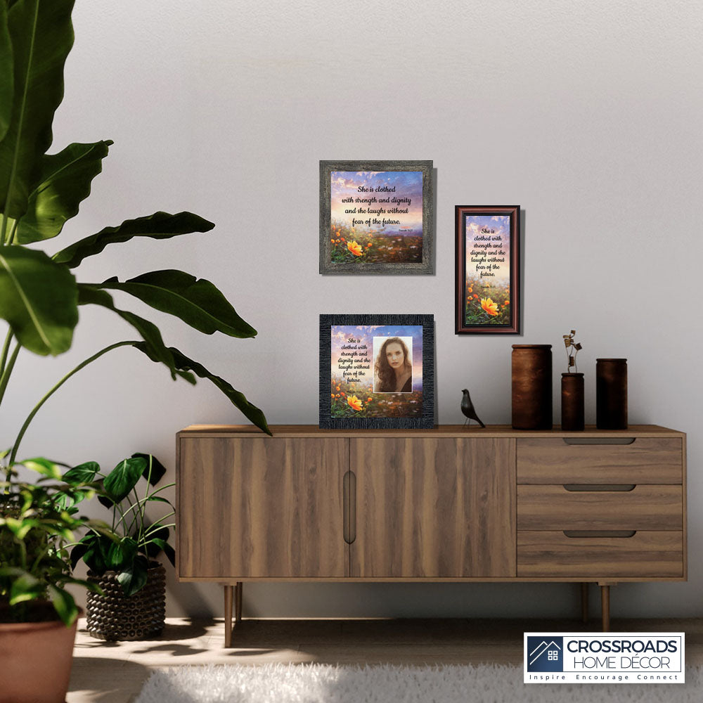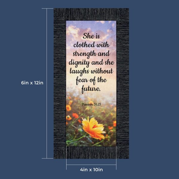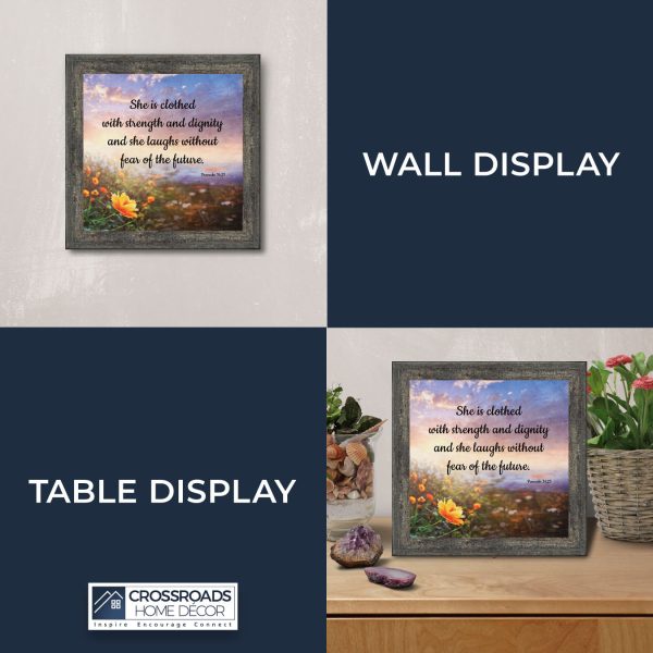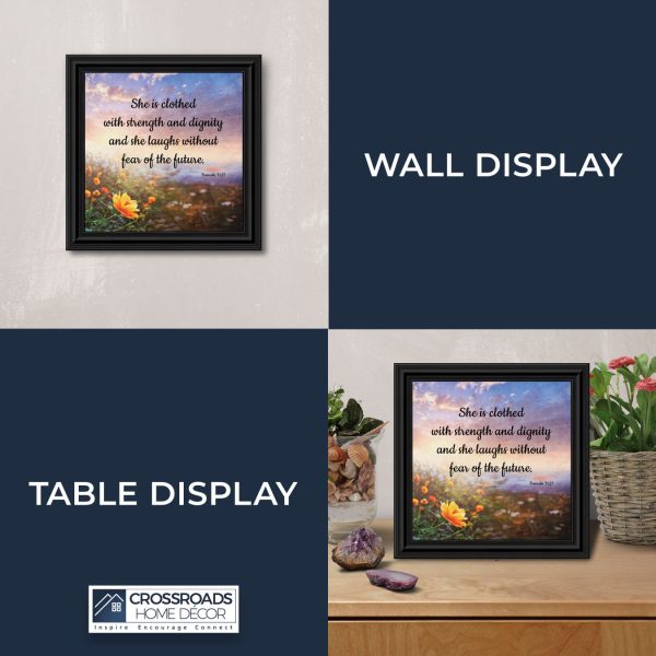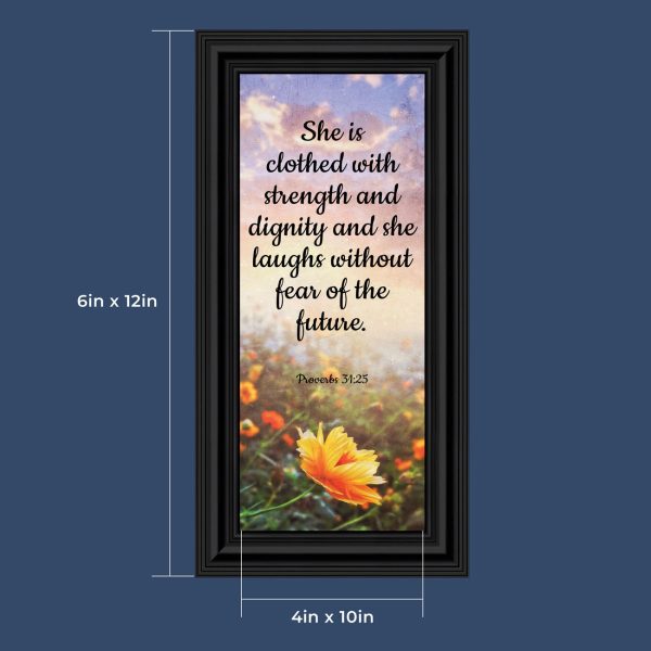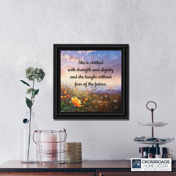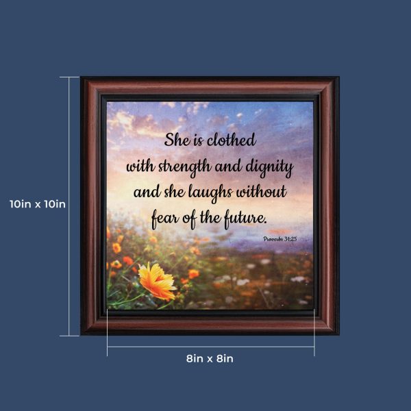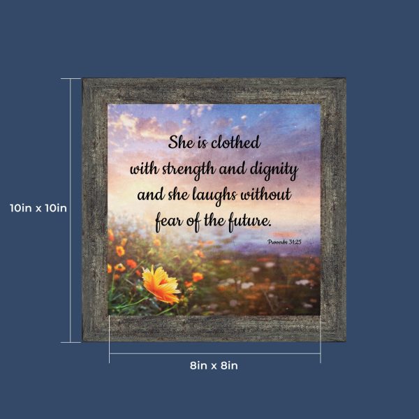 Proverbs 31 Woman, She is Clothed with Strength and Dignity Gift, Christian Home Decor Framed Wall Art, 10×10, 6428