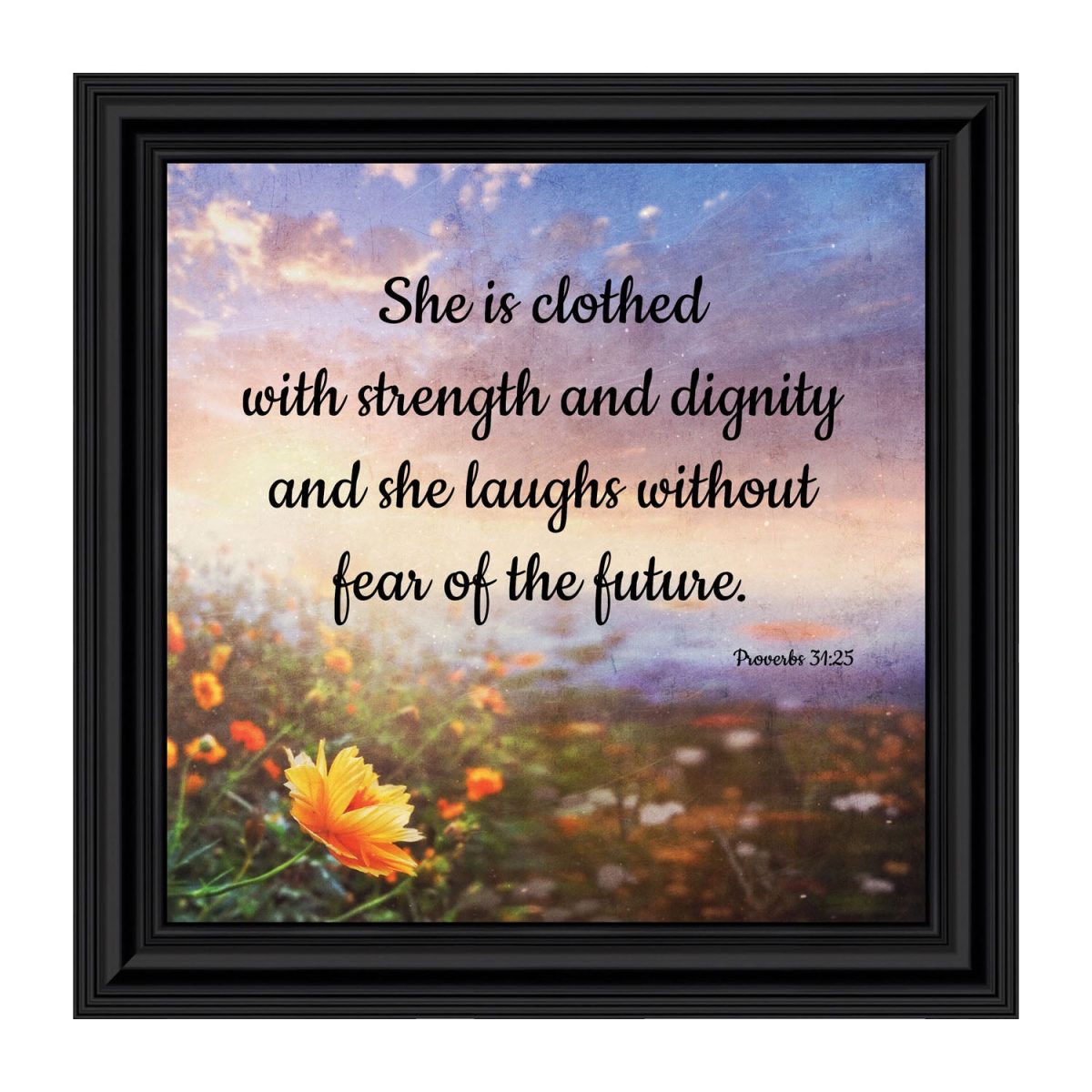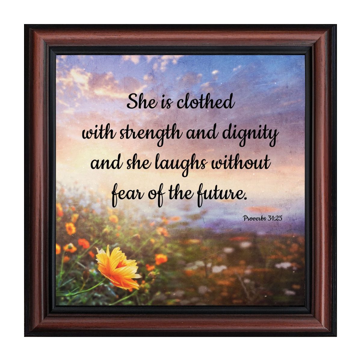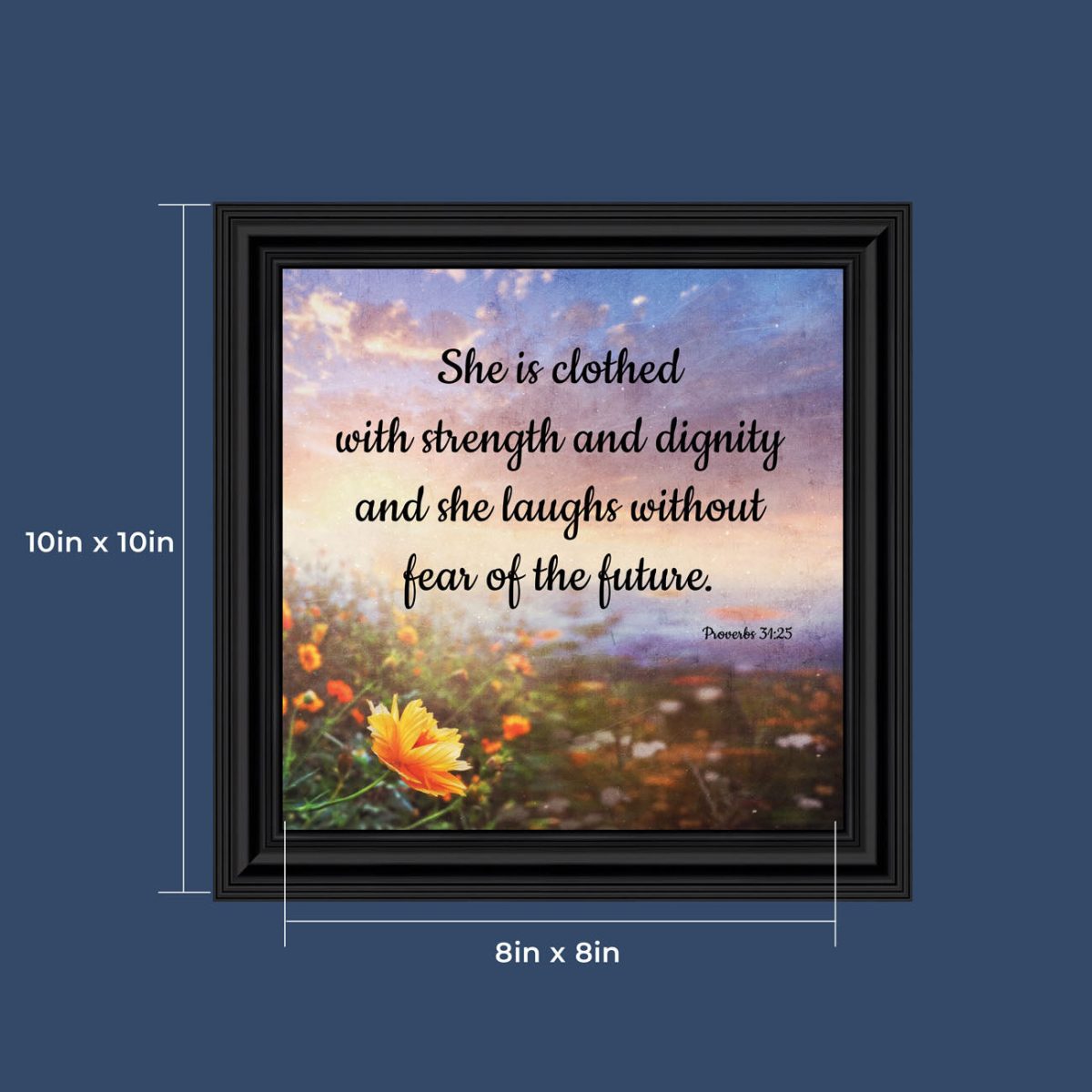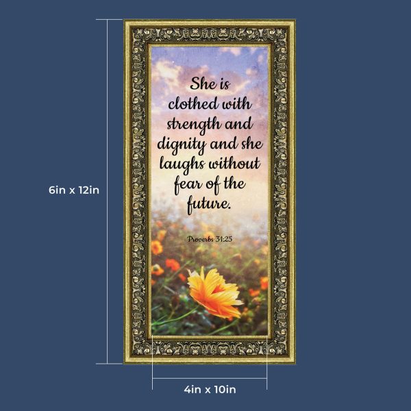 Proverbs 31 Woman, She is Clothed with Strength and Dignity Gift, Christian Home Decor Framed Wall Art, 10×10, 6428