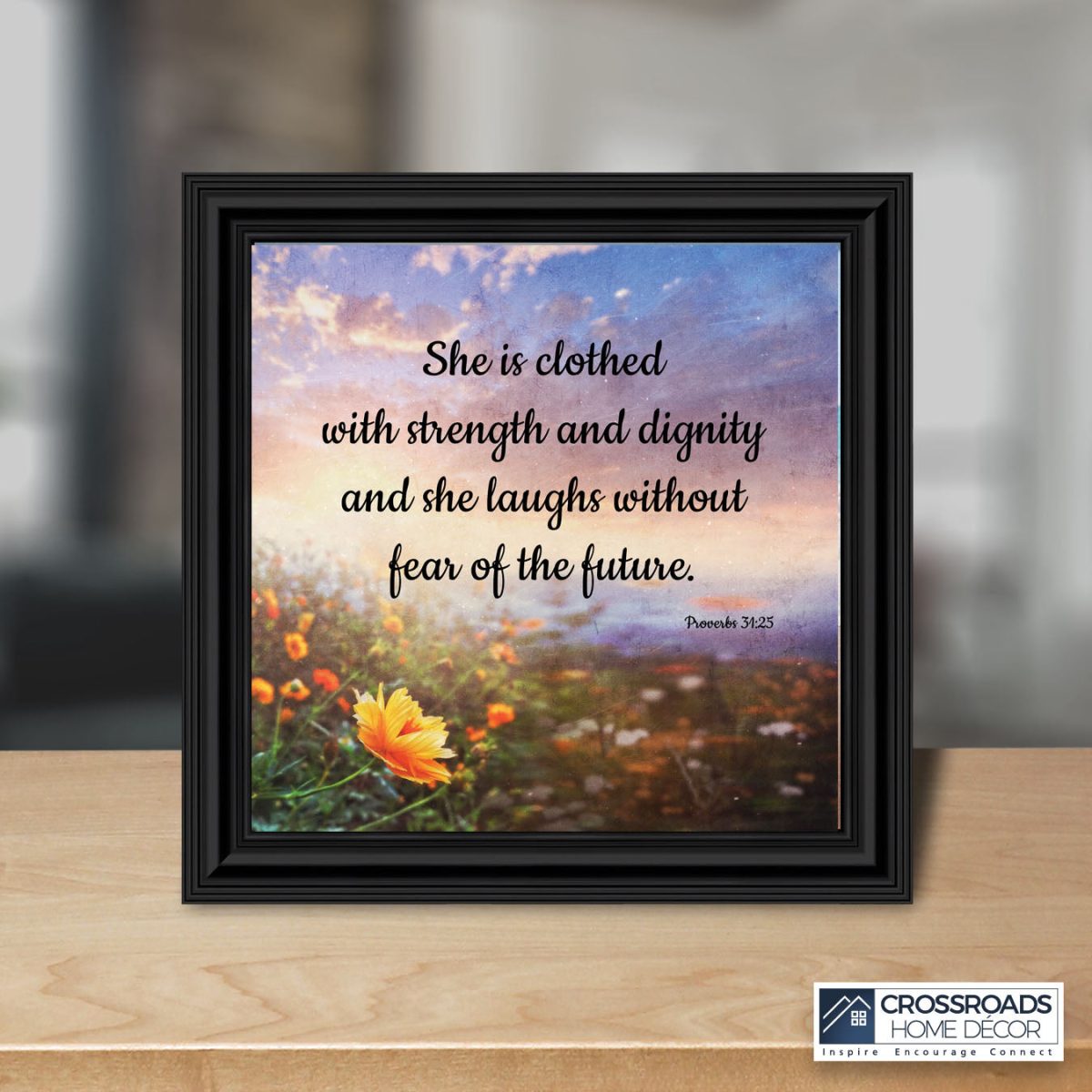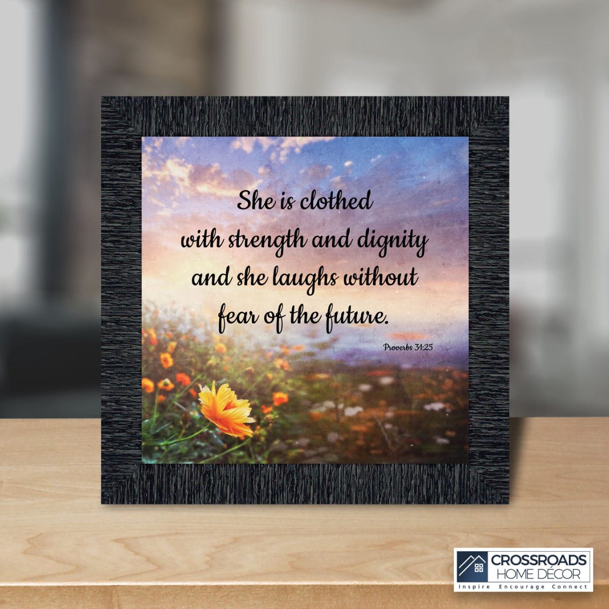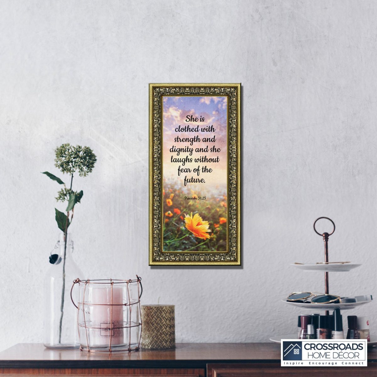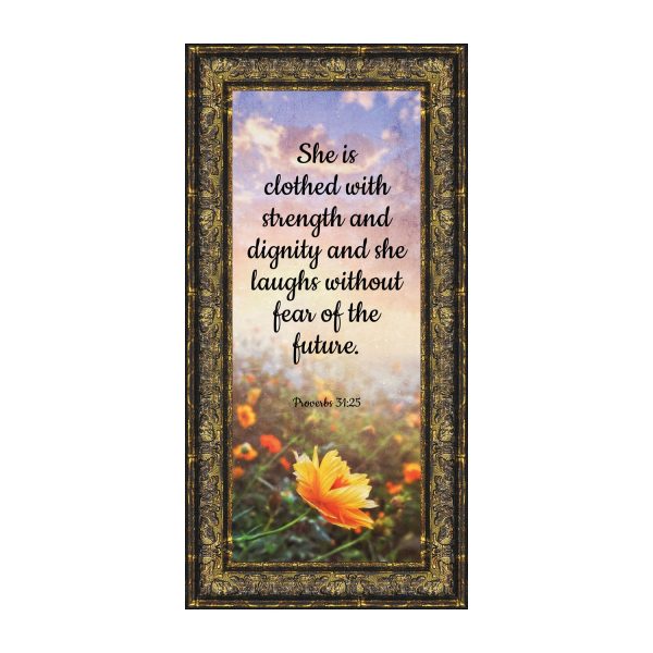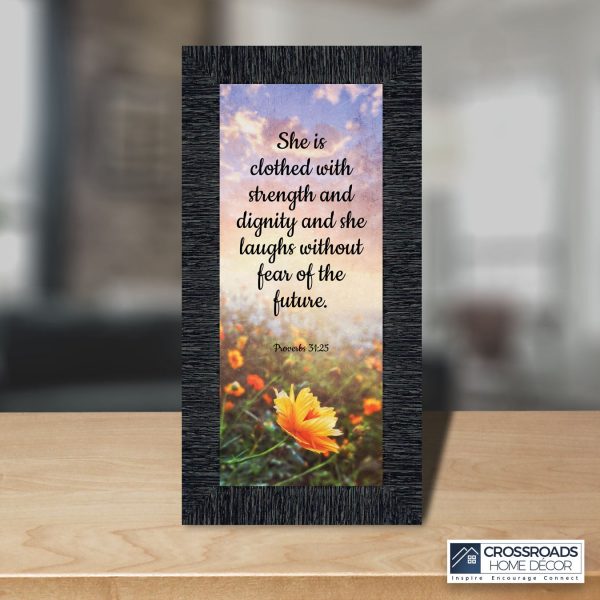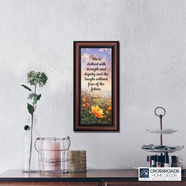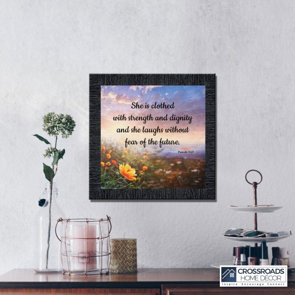 CHRISTIAN DECOR stating “She is Clothed with Strength and Dignity and she laughs without fear of the future.” Proverbs 31:25