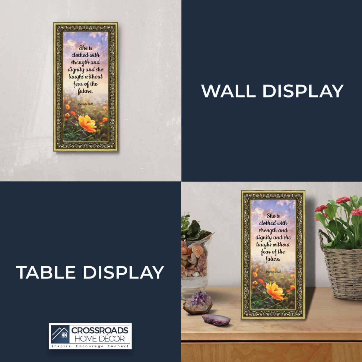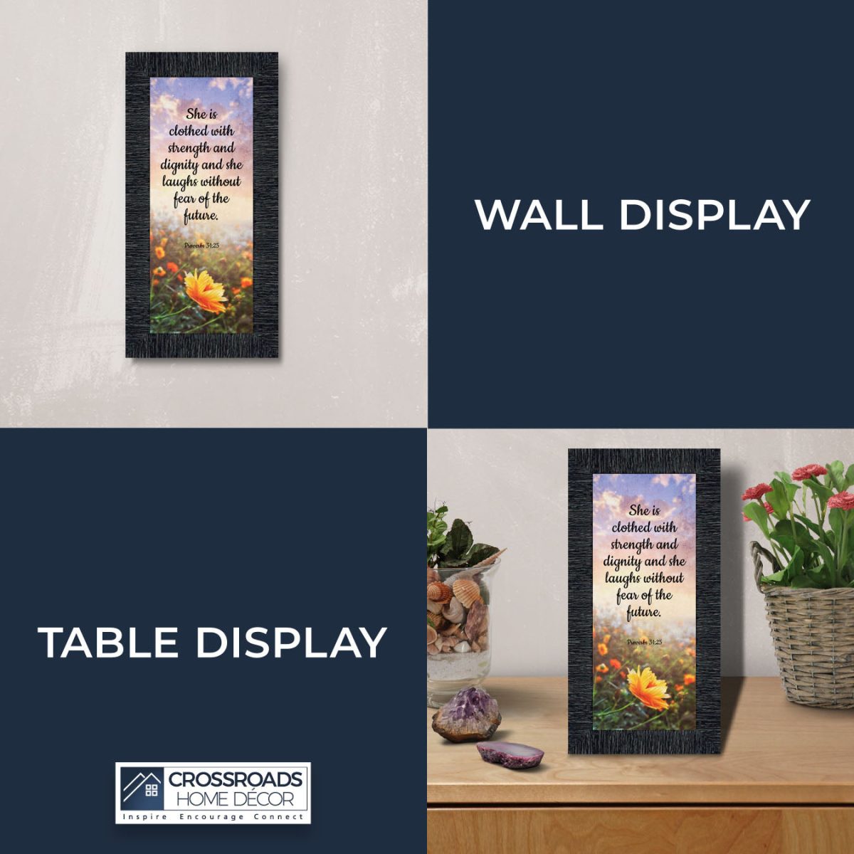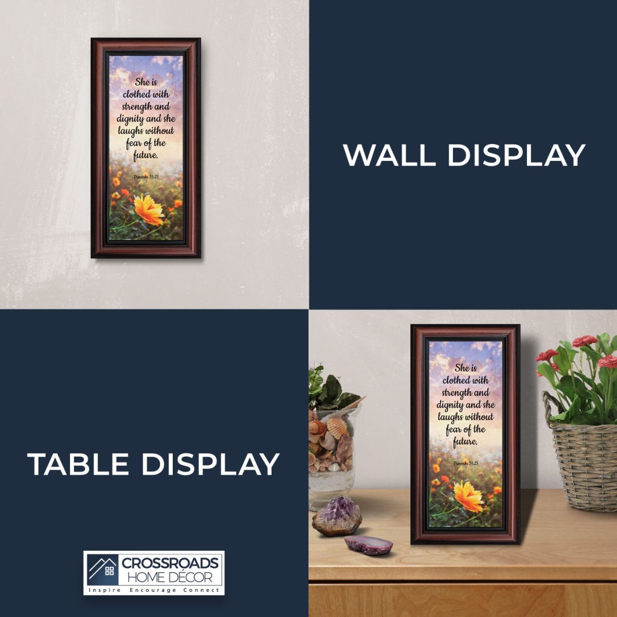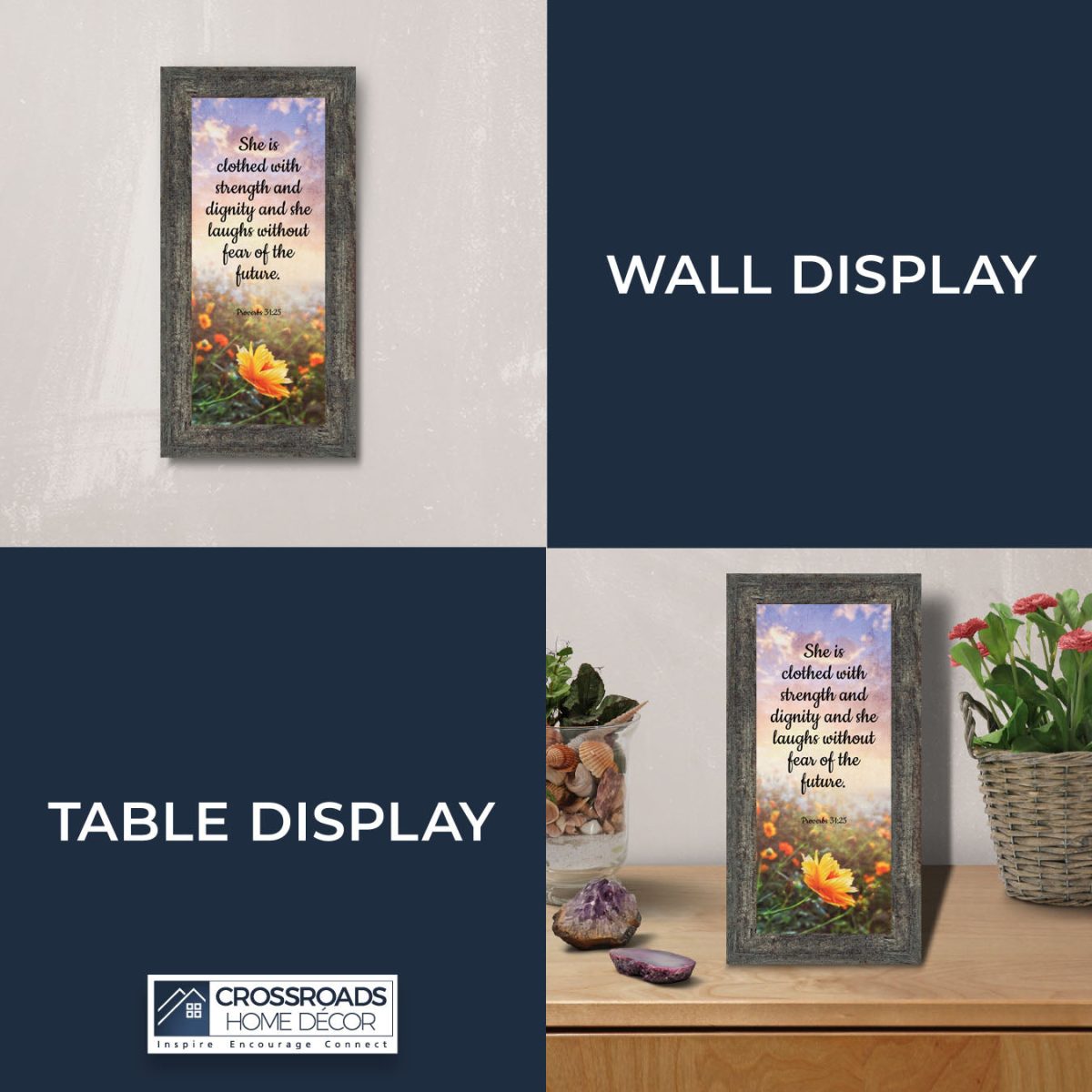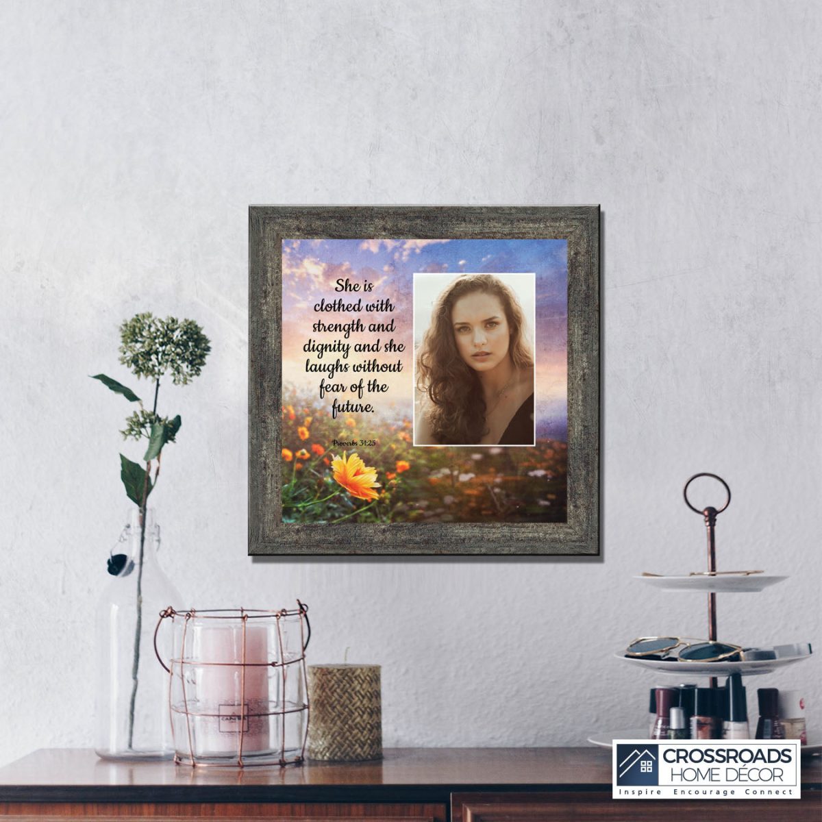 CHRISTIAN DECOR stating “She is Clothed with Strength and Dignity and she laughs without fear of the future.” Proverbs 31:25