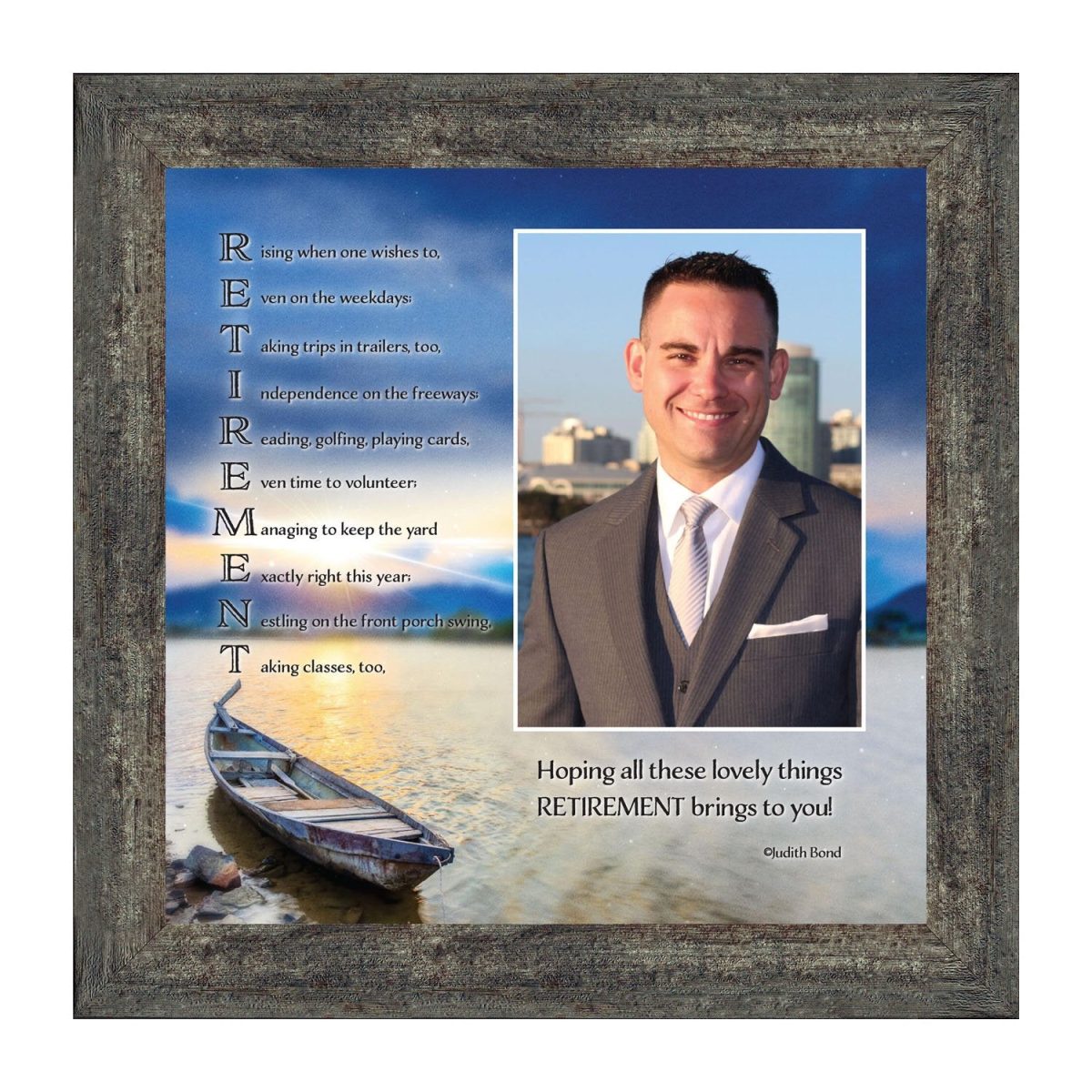 - Picture framed poem about a person retiring from his or her job.